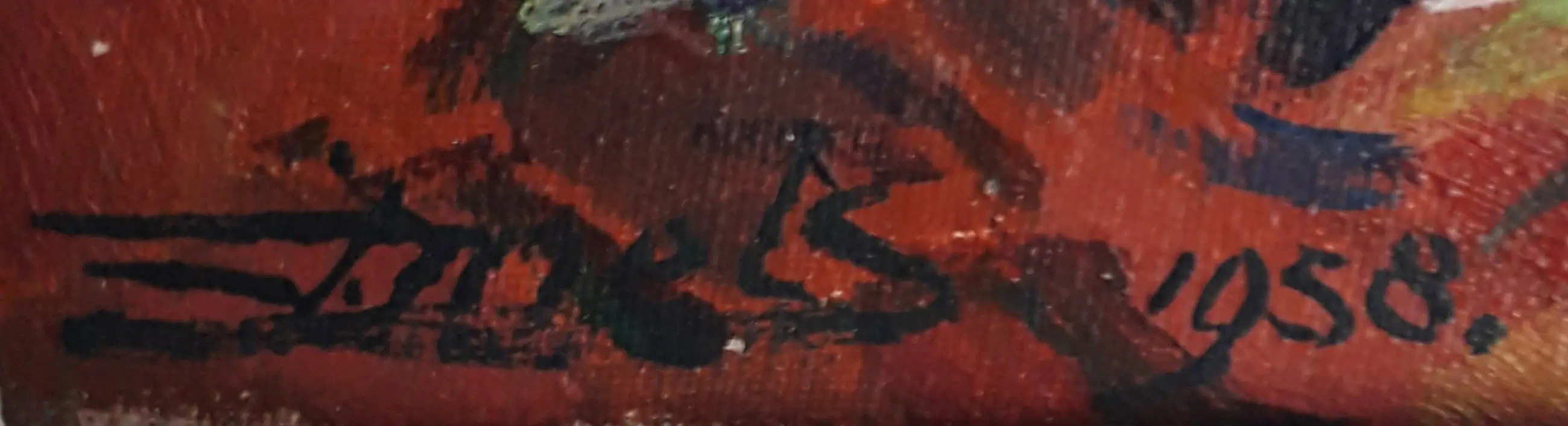 Geschilderd door de bekende nederlandse kunstschilder Jacques Mels. Het olieverfschilderij valt op door het warme kleurgebruik.