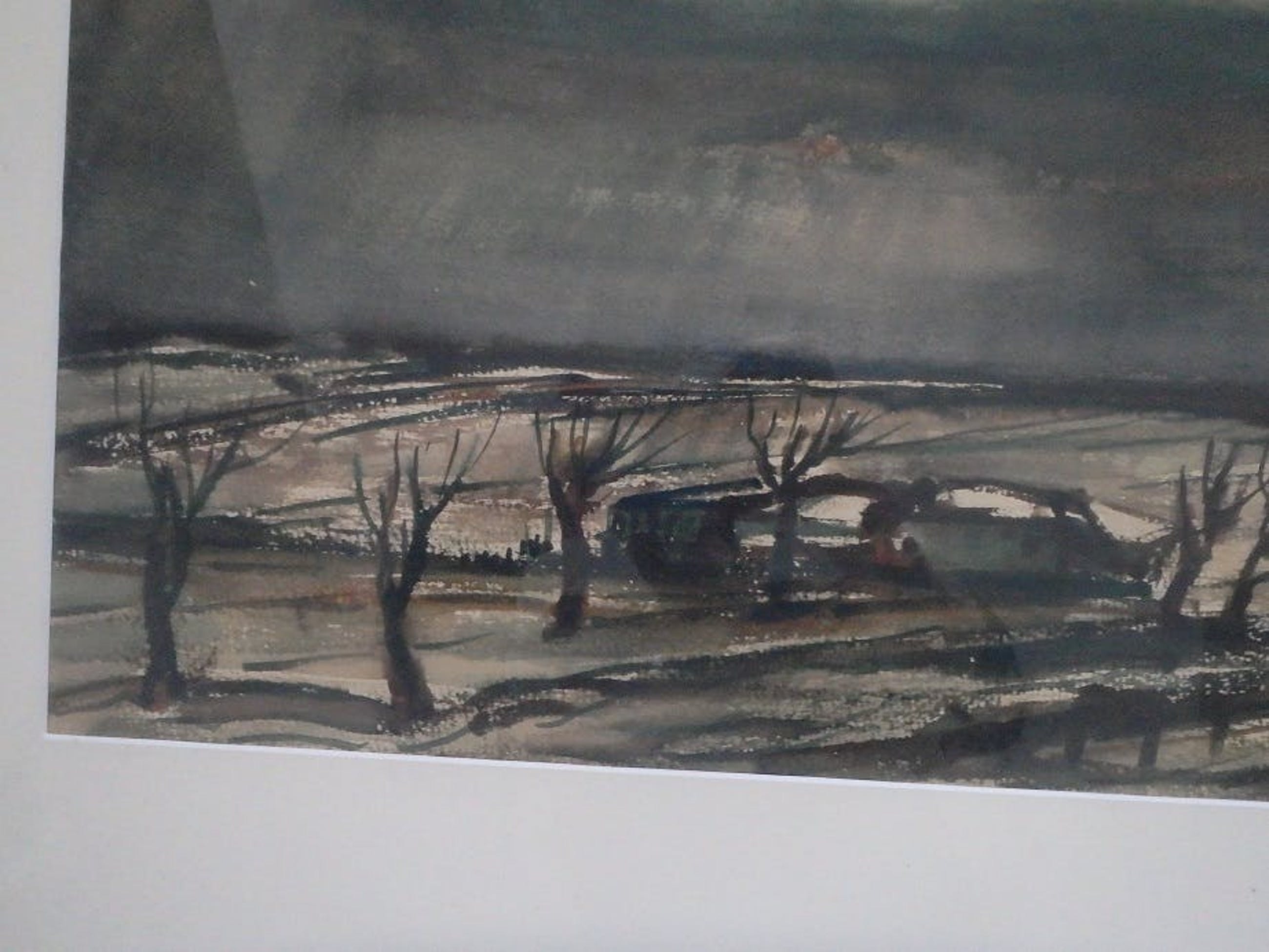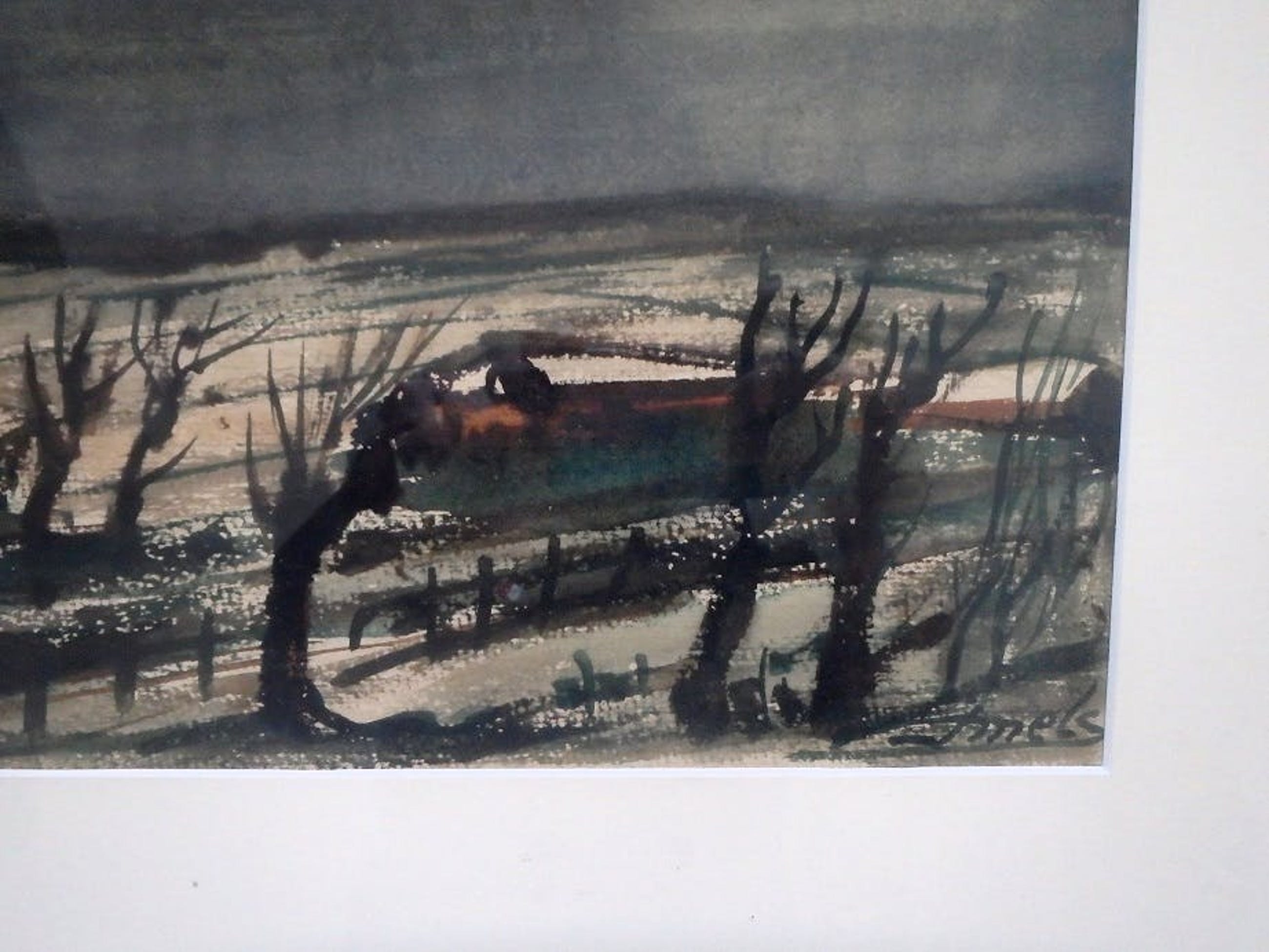 Gemengde techniek 36x62, rechtsonder gesigneerd J. Mels, werk zal zijn uit de jaren 50, mooi ingelijst, maat lijst 51x71