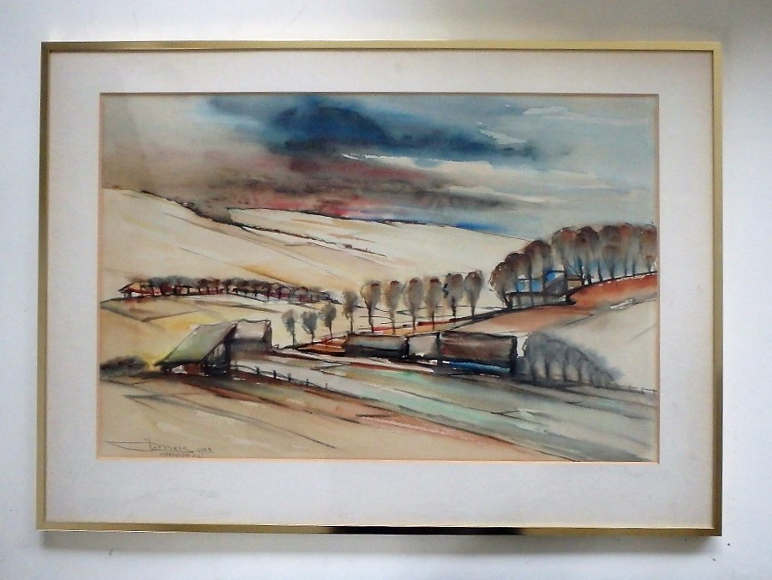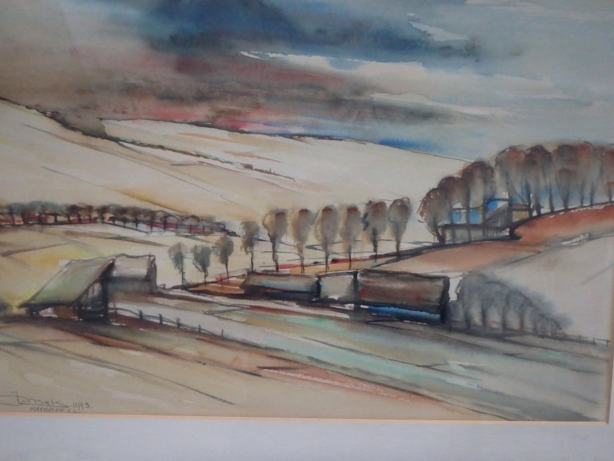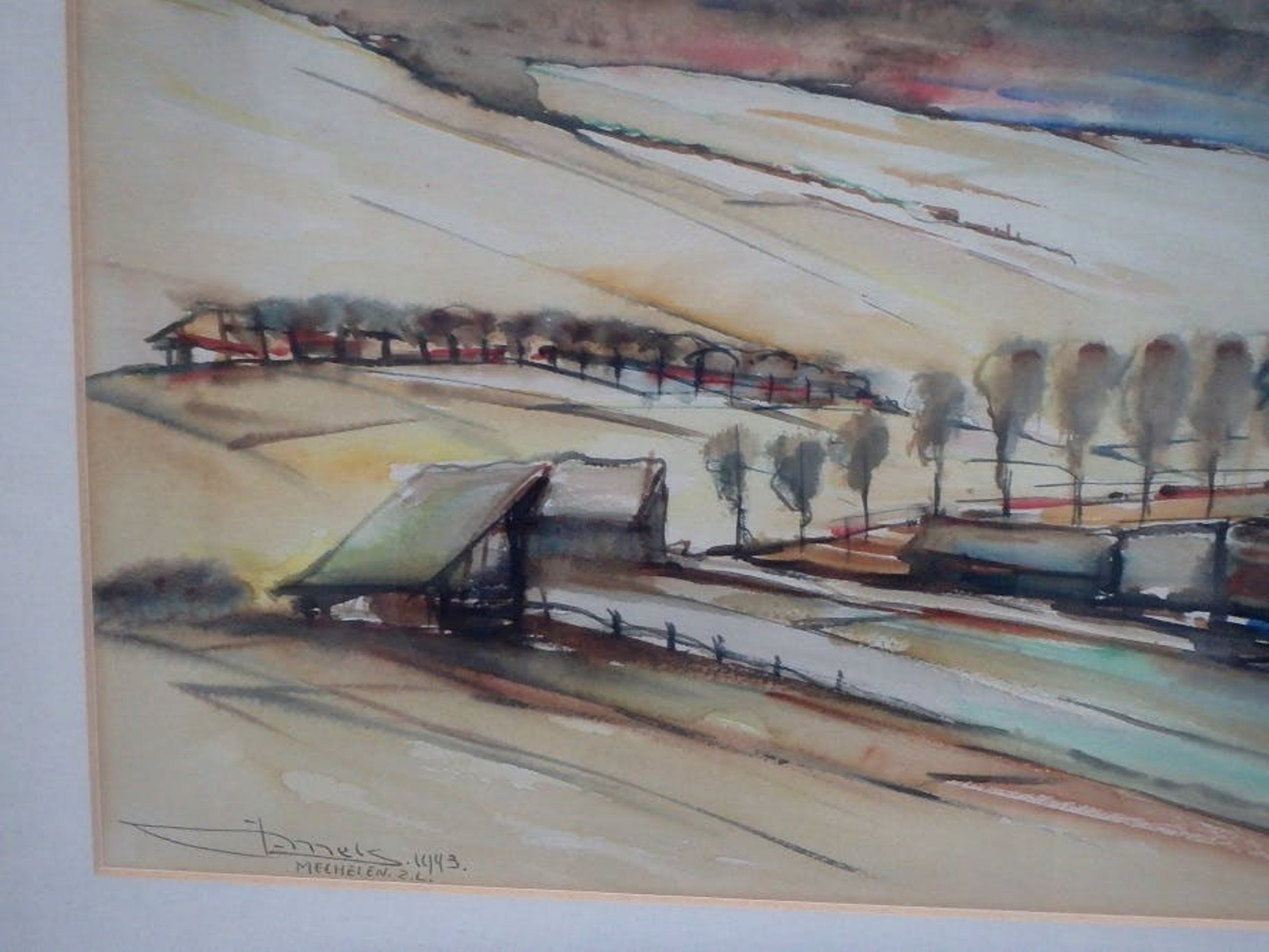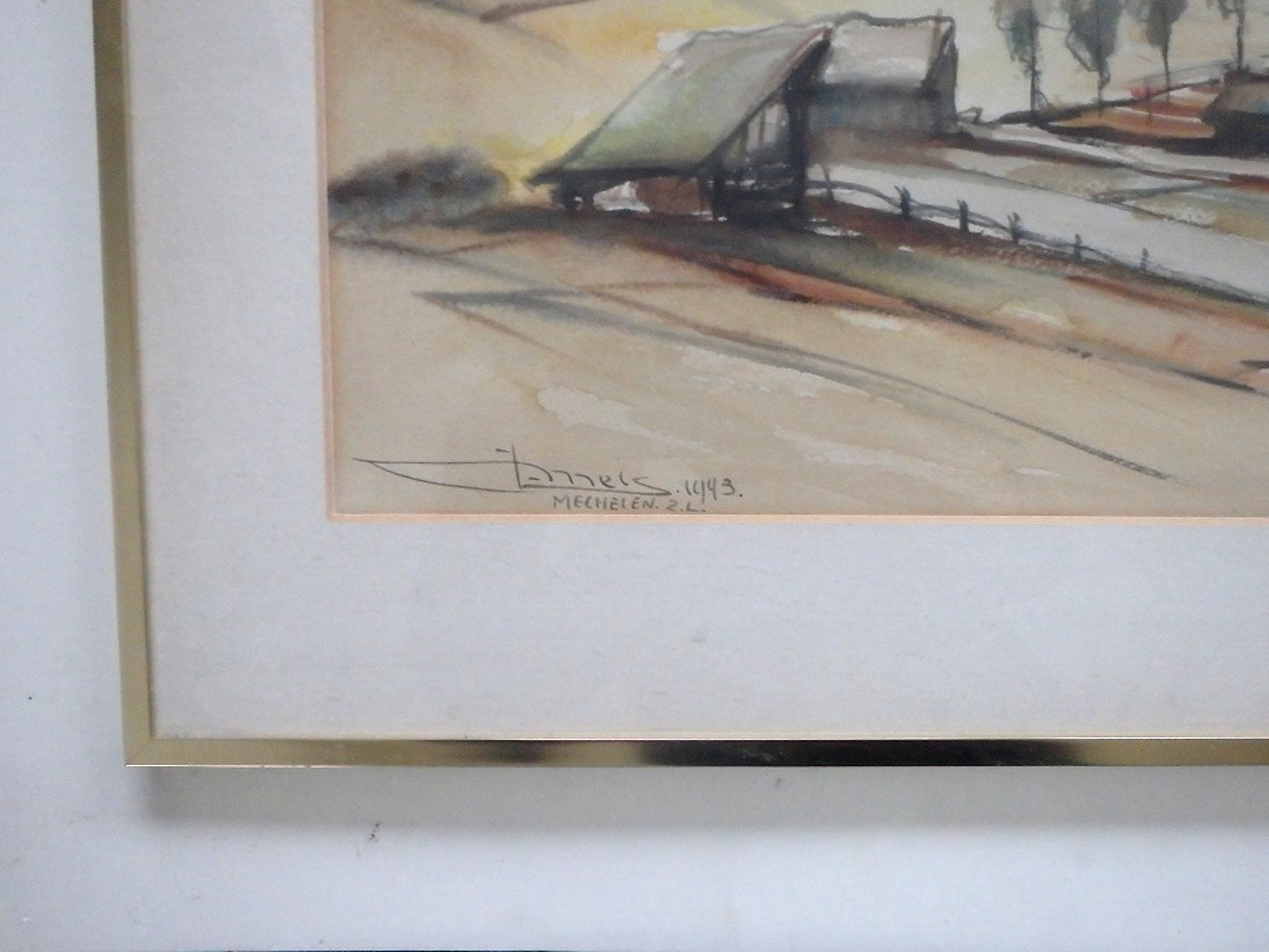 Gemengde techniek 38x58, linksonder gesigneerd J. Mels en gedateerd 1943, goed ingelijst, maat lijst 51x71