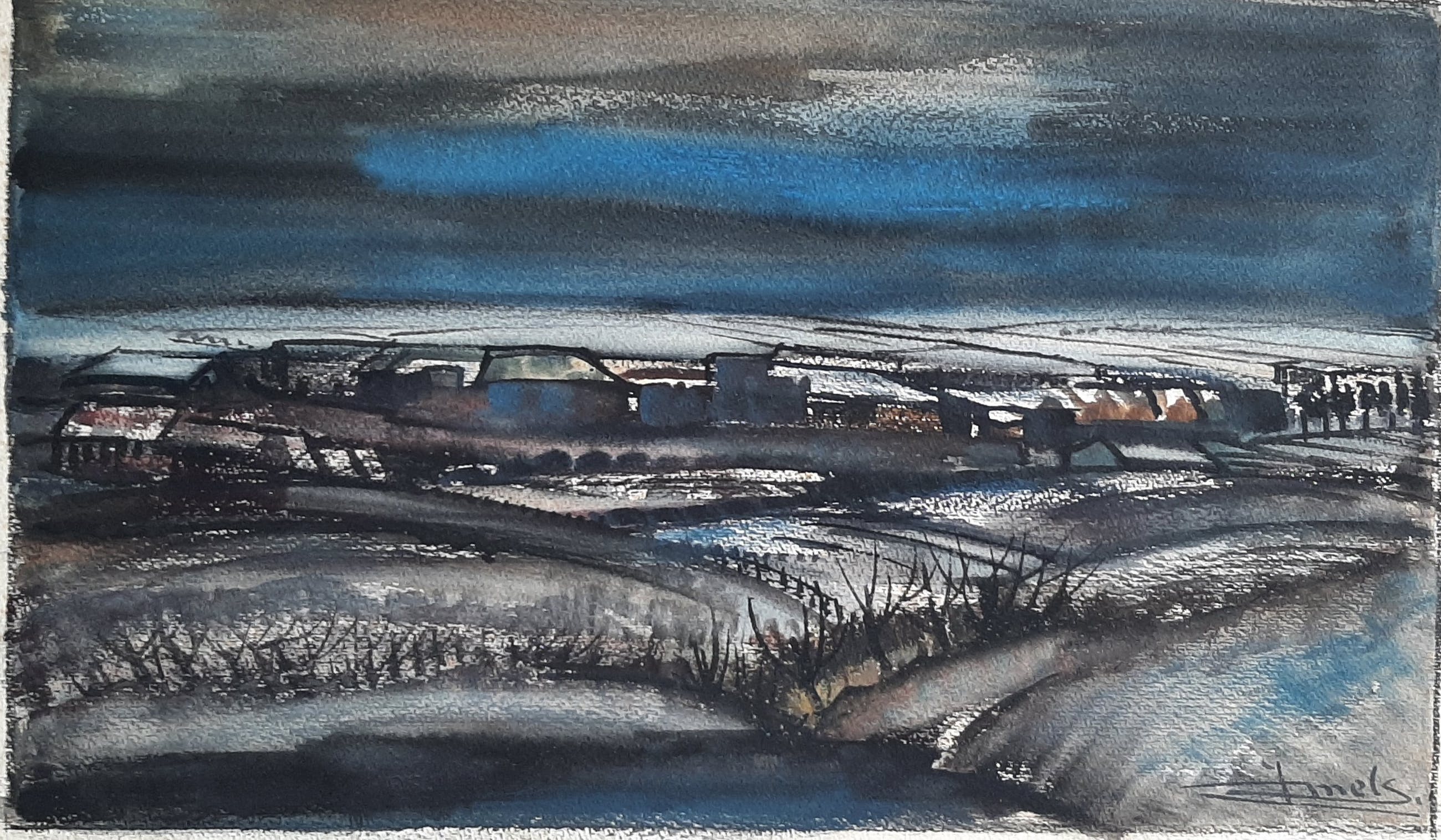 Afmetingen: Aquarel: 34,5 x 57,5 cm Papierformaat: 56 x 77,5 cm