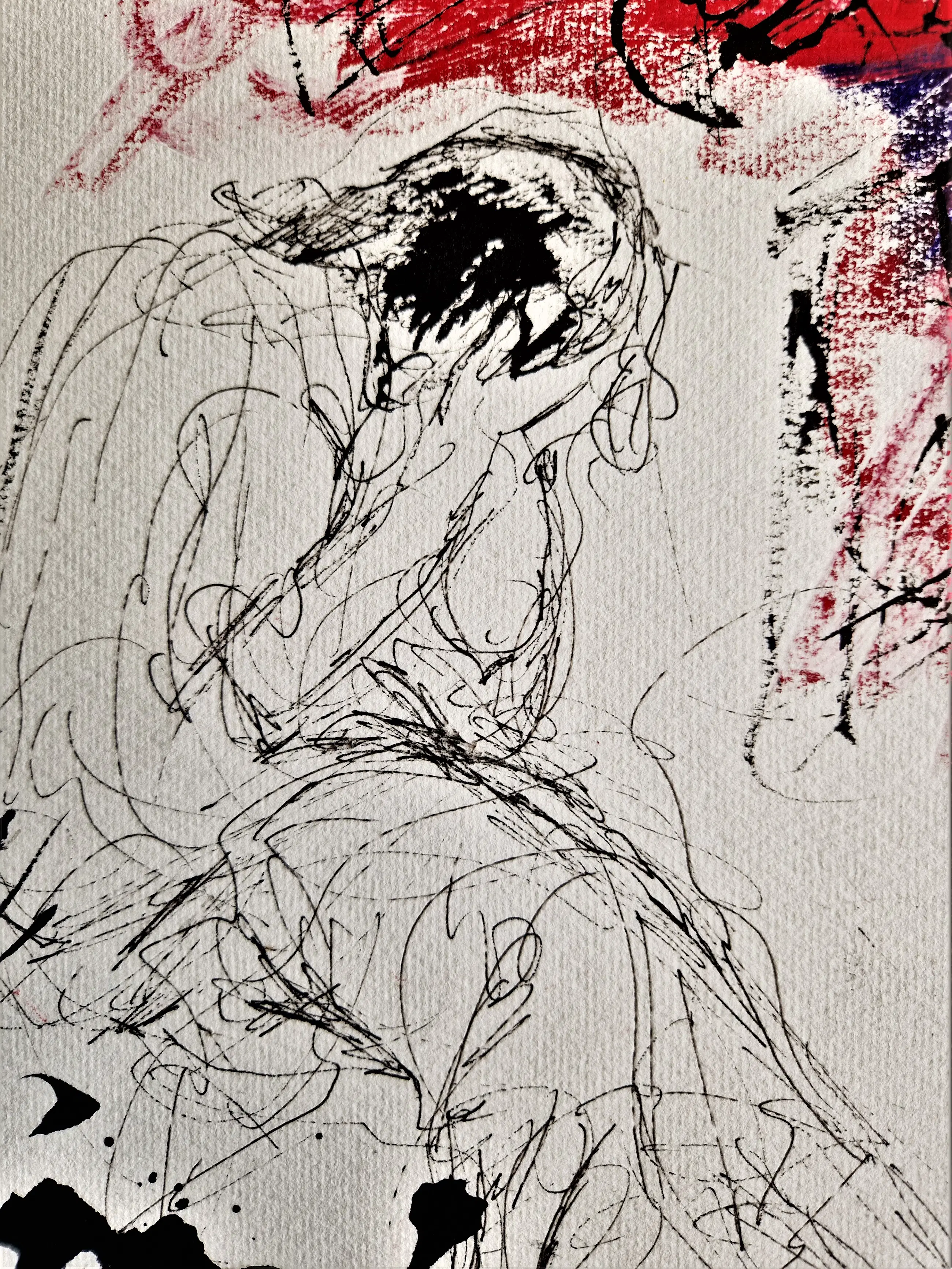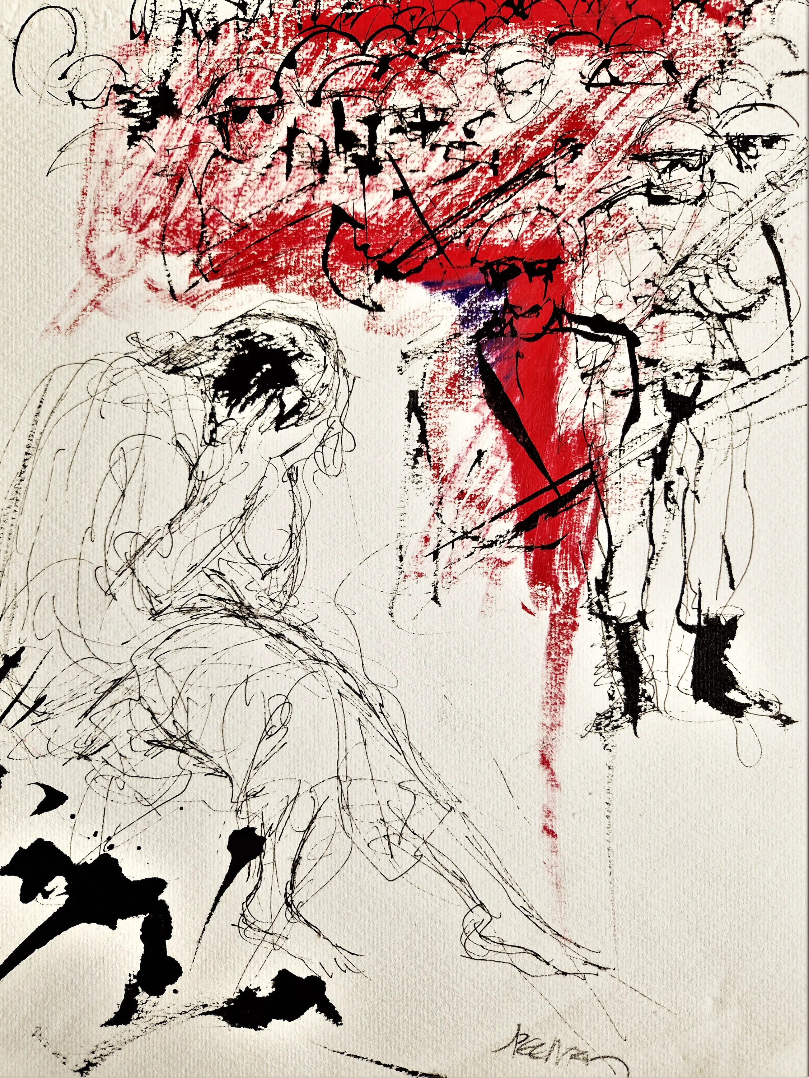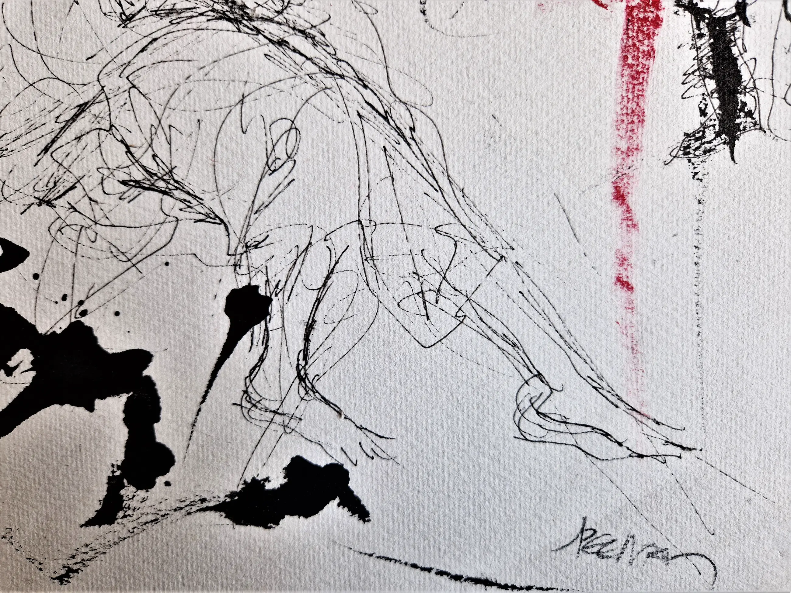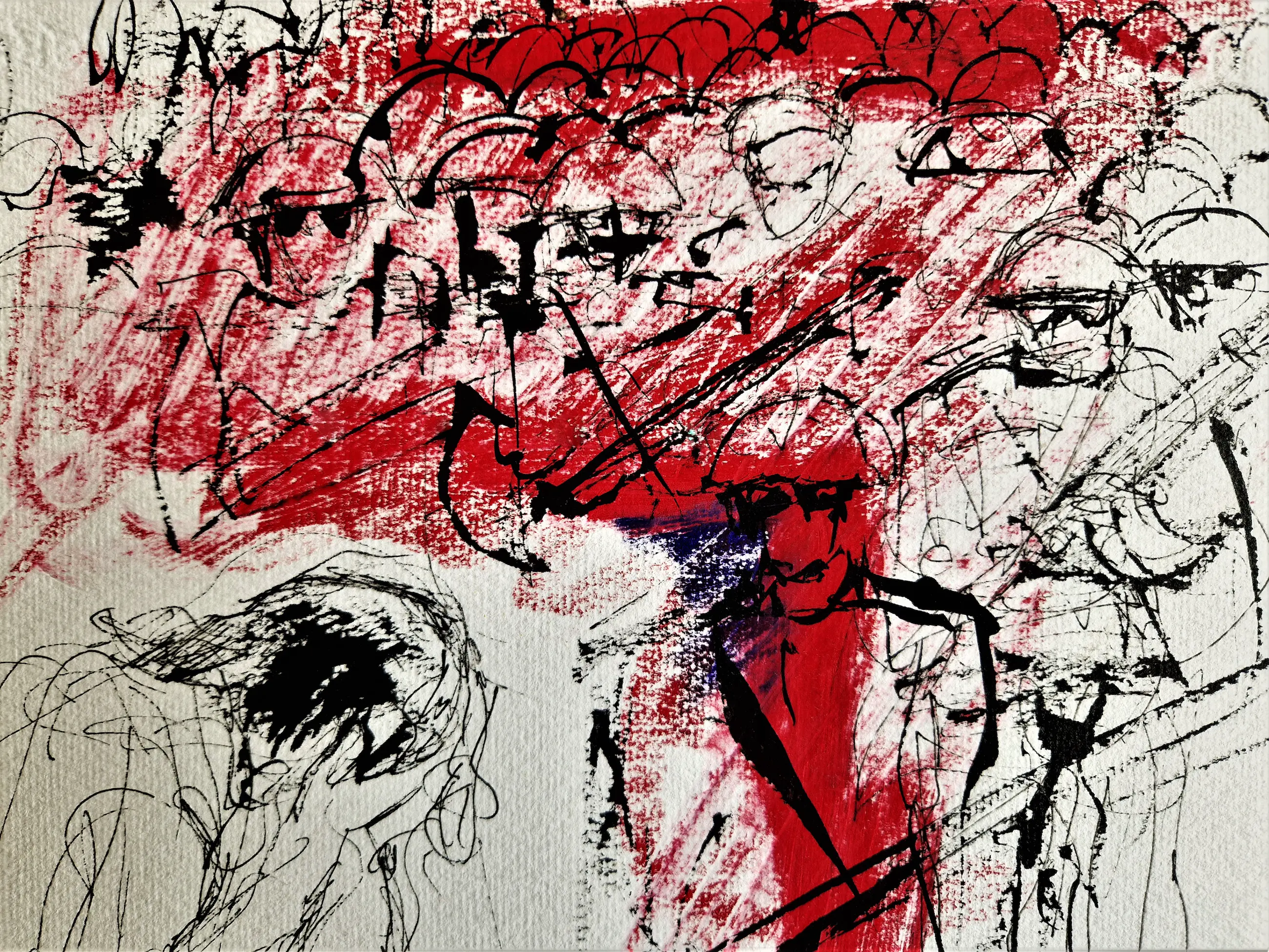 - Fraaie gemengde techniek op geschept papier met voorstelling getiteld "La folie de la guerre" (Pastel, gouache en sepia - bladmaat 32x25). Verkeert in zeer goede conditie. Met potlood gesigneerd.