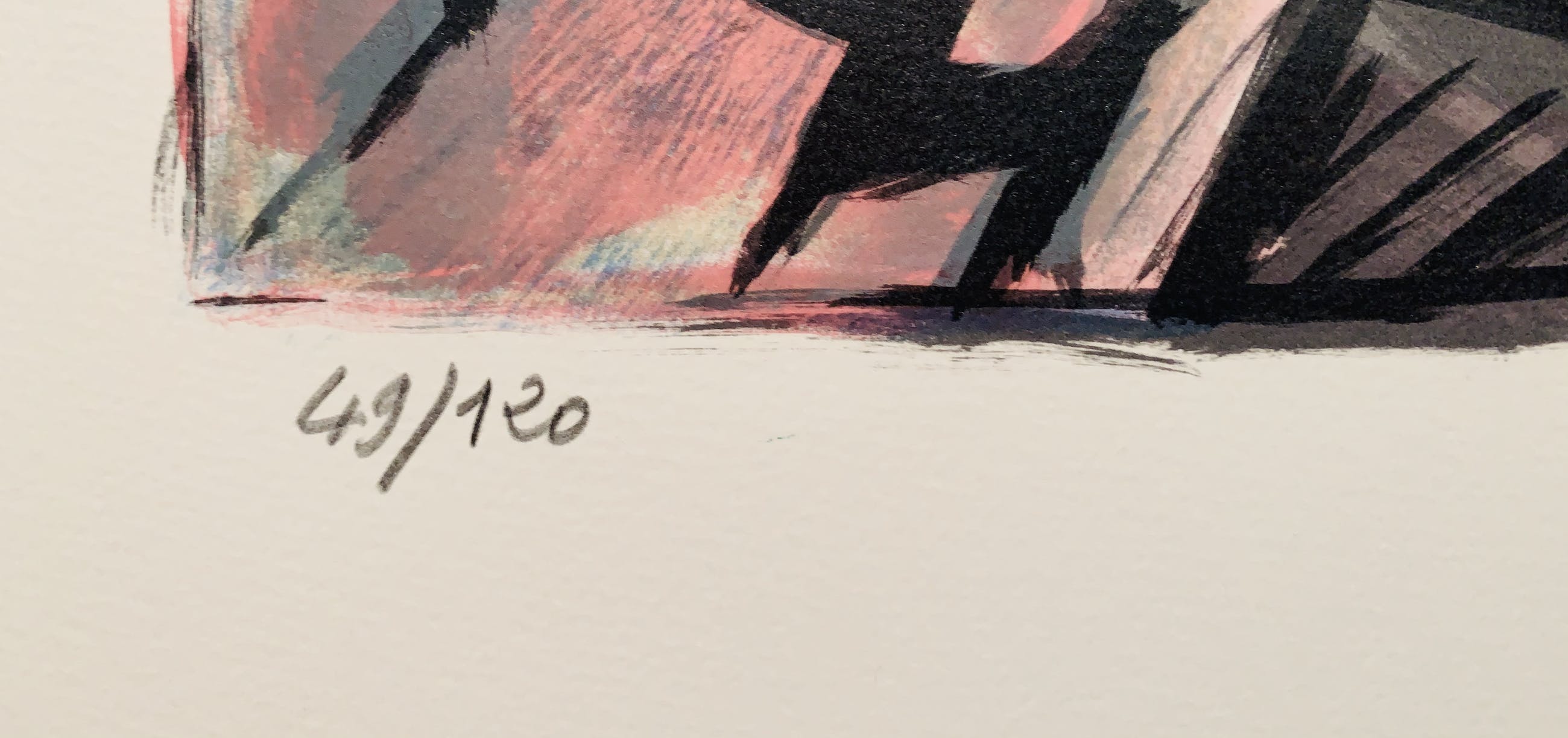 Conditie: zeer goed, lichte streep in vel, zie foto. Editie: 120 ex. Nummer 49. Afmeting afbeelding: 22 x 29 cm.