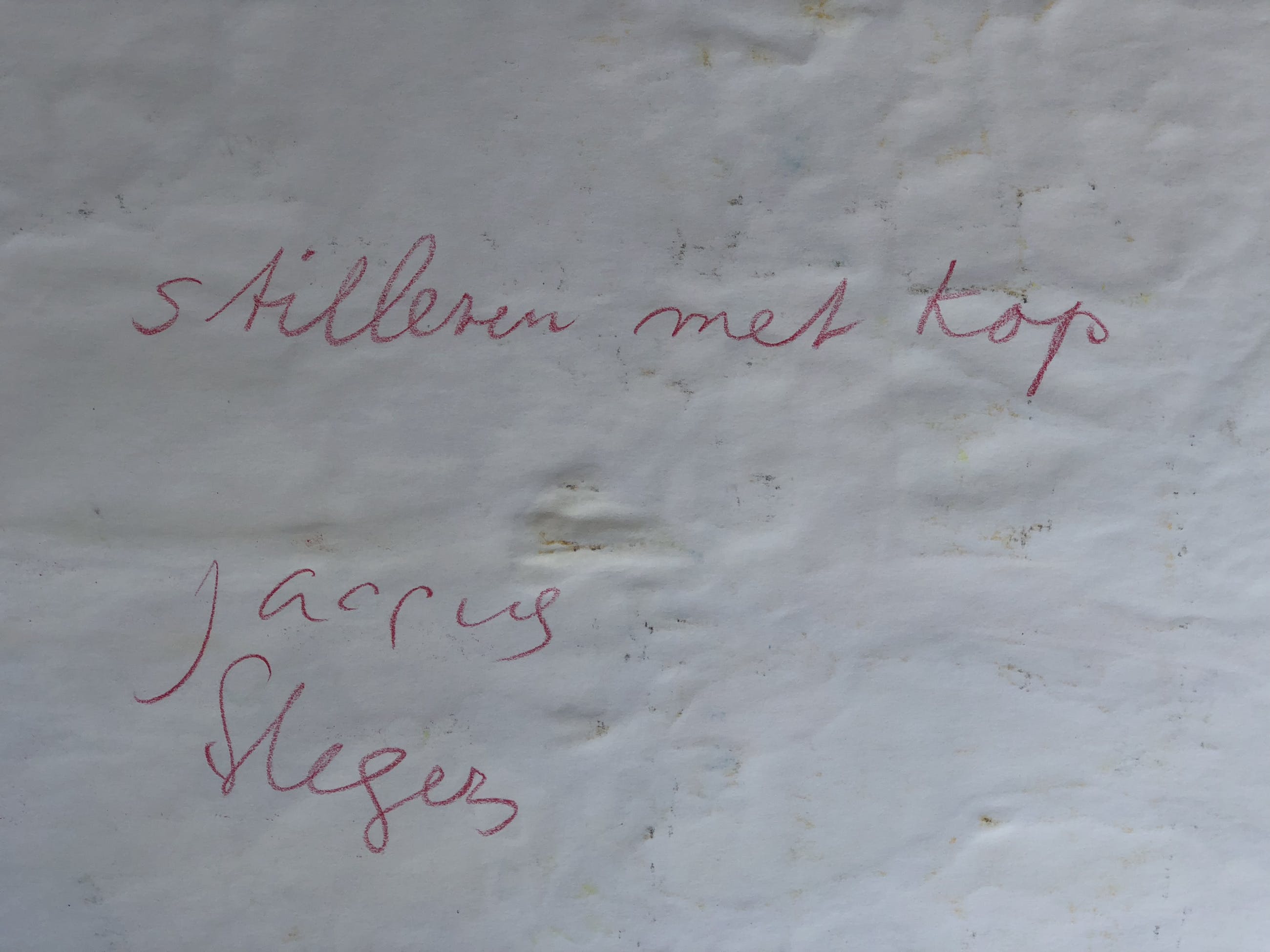 Jacques Slegers (1936-2000). Veelzijdig kunstenaar met diverse opleidingen: Academie in Salzburg onder leiding van Oscar Kokoschka. Academie voor Beeldende Kunsten te Tilburg. Nationaal Hoger Instituut te Antwerpen. Studie te Parijs.