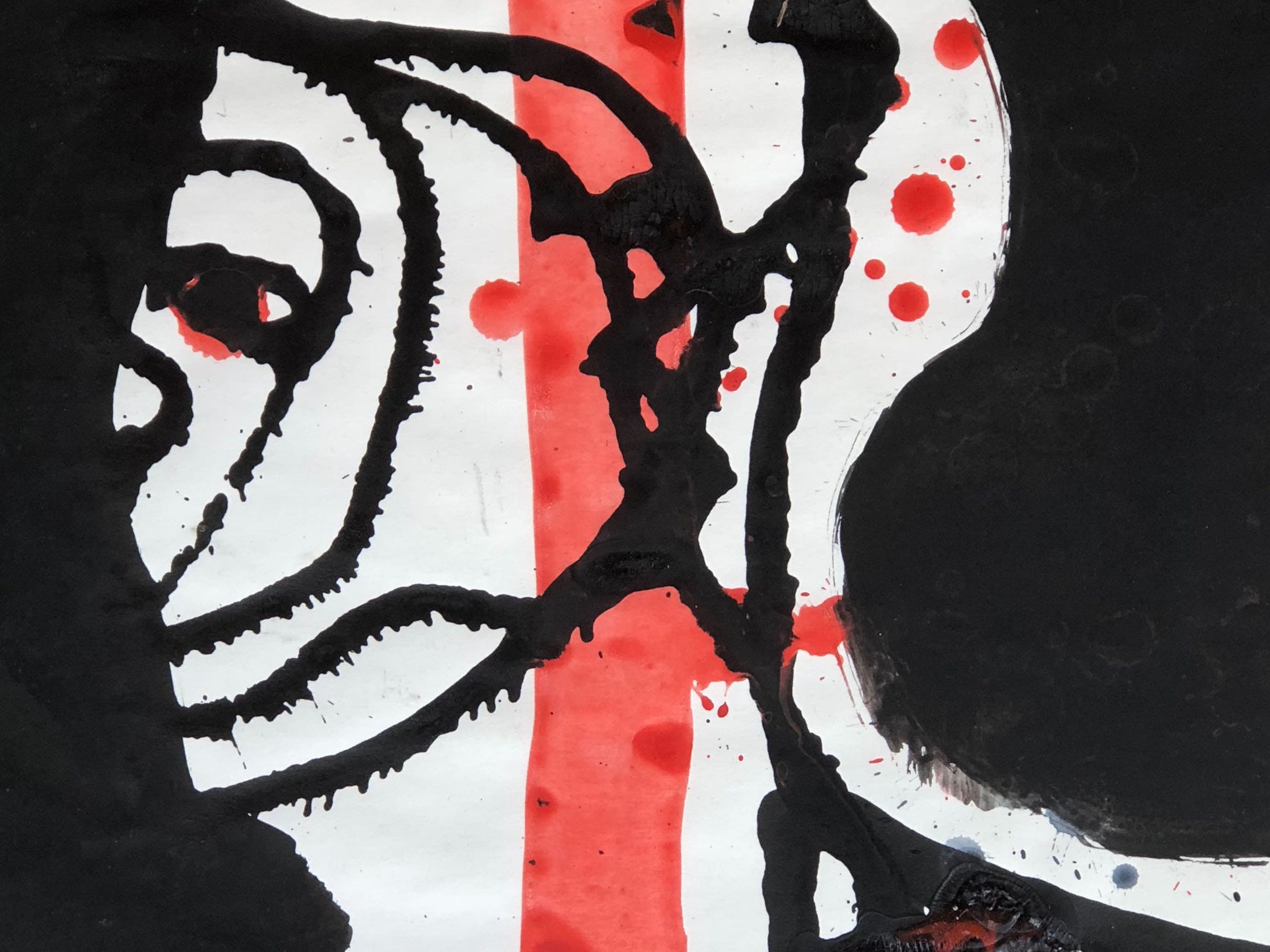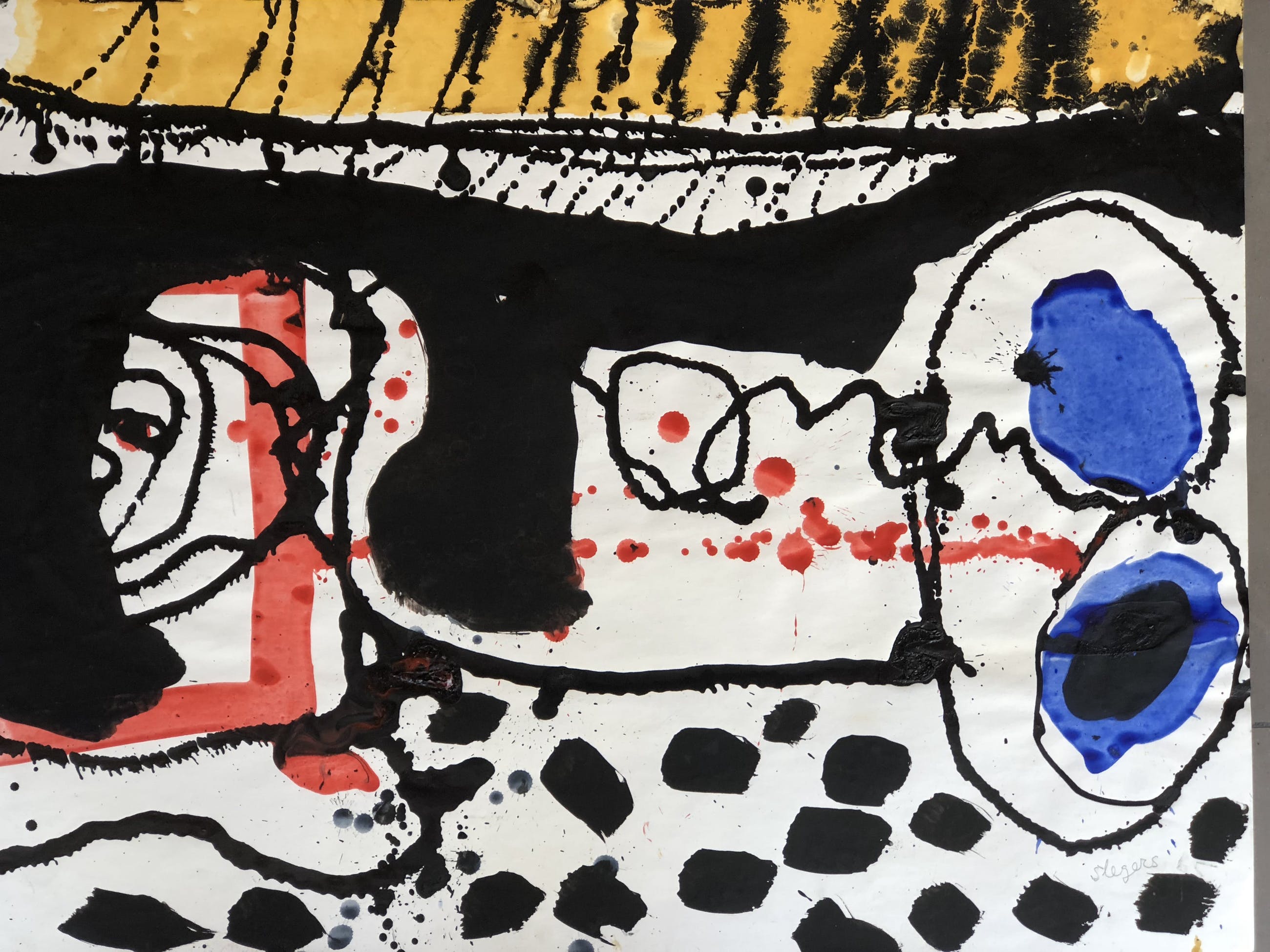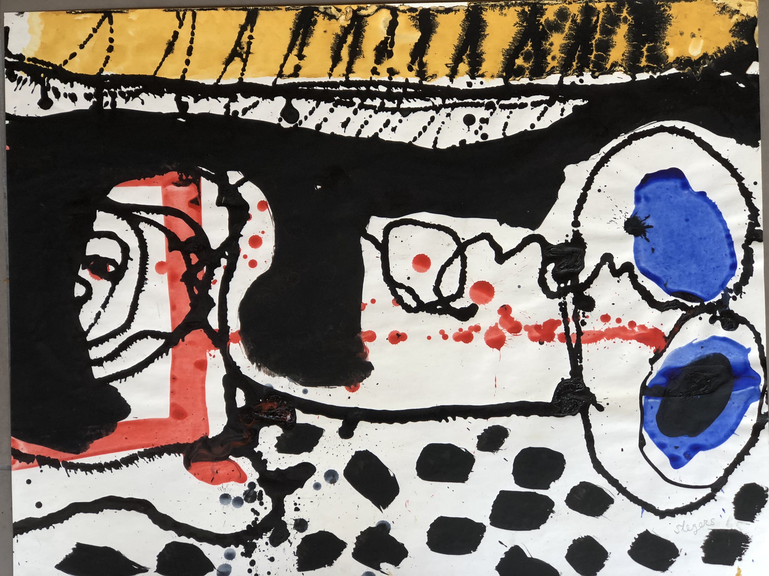 Mooie aquarel op papier. Ruim 50 jaar geleden gemaakt in een Cobra-stijl.