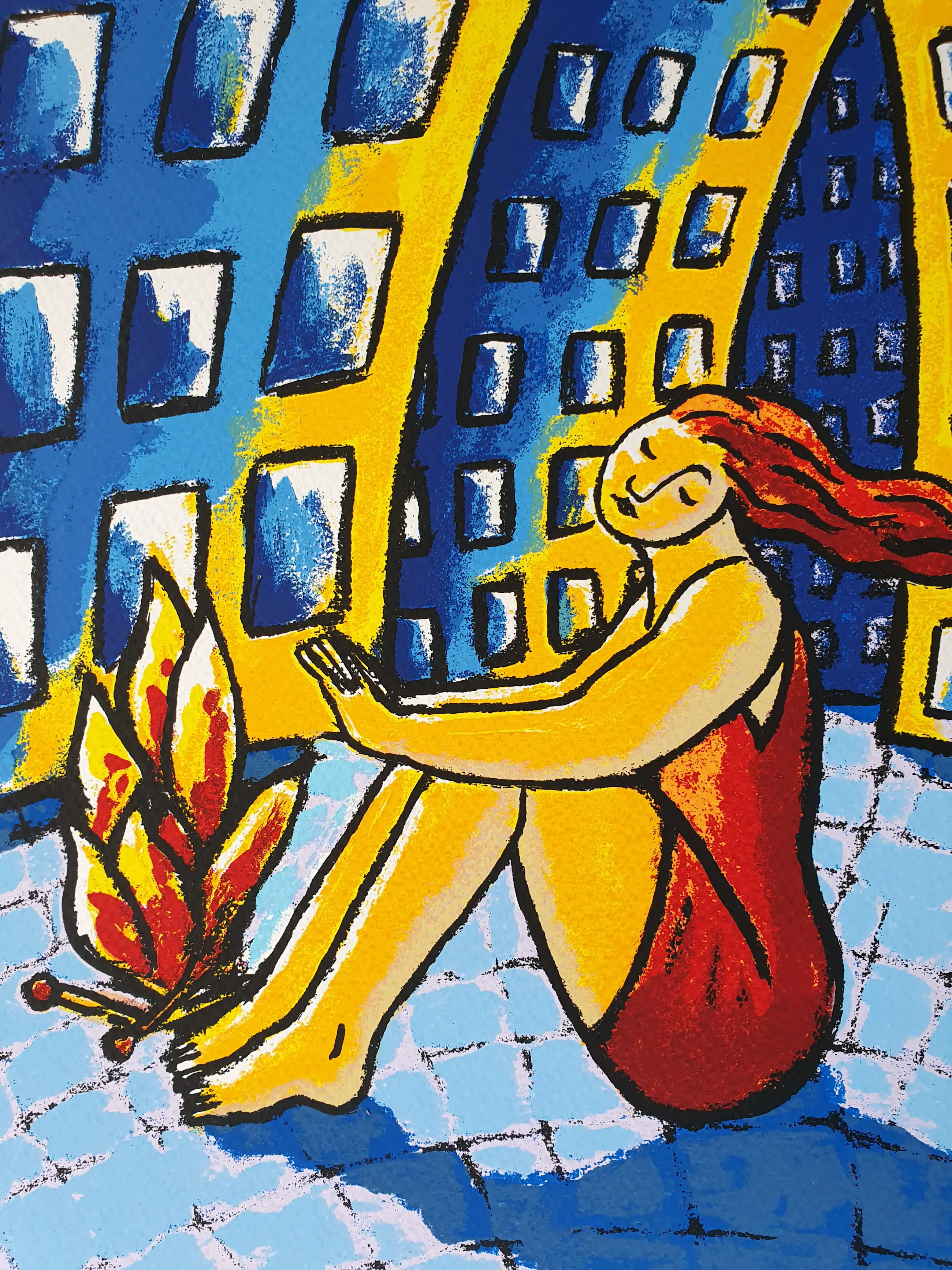 Zeefdruk van Jacques Tange met de titel: 'A perfect match' uit 2004. De zeefdruk verschilt in geen enkel opzicht met de uiteindelijke gesigneerde, gedateerde en genummerde exemplaren.