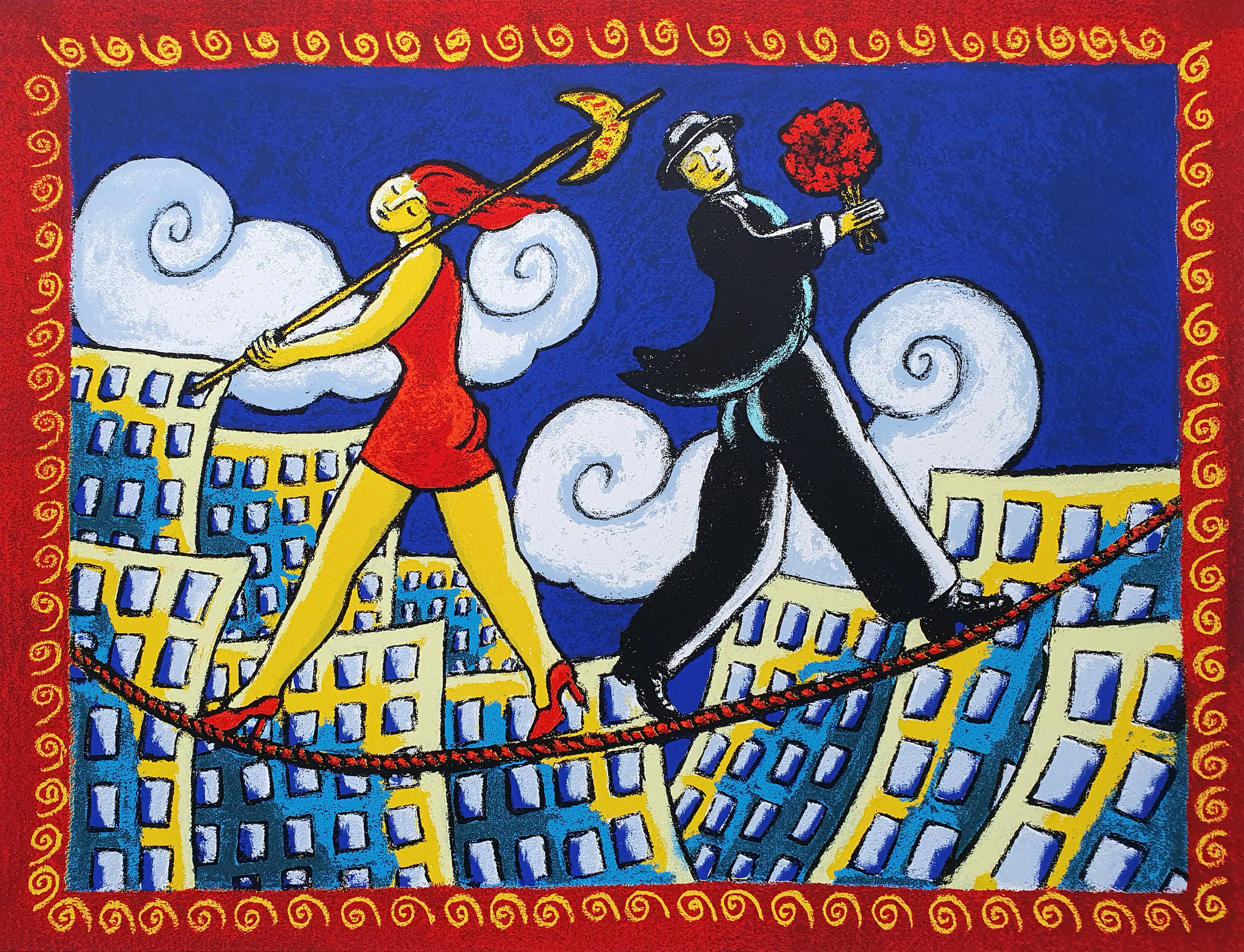 Zeefdruk uit 2005 van Jacques Tange met de titel: 'A very short romance'.