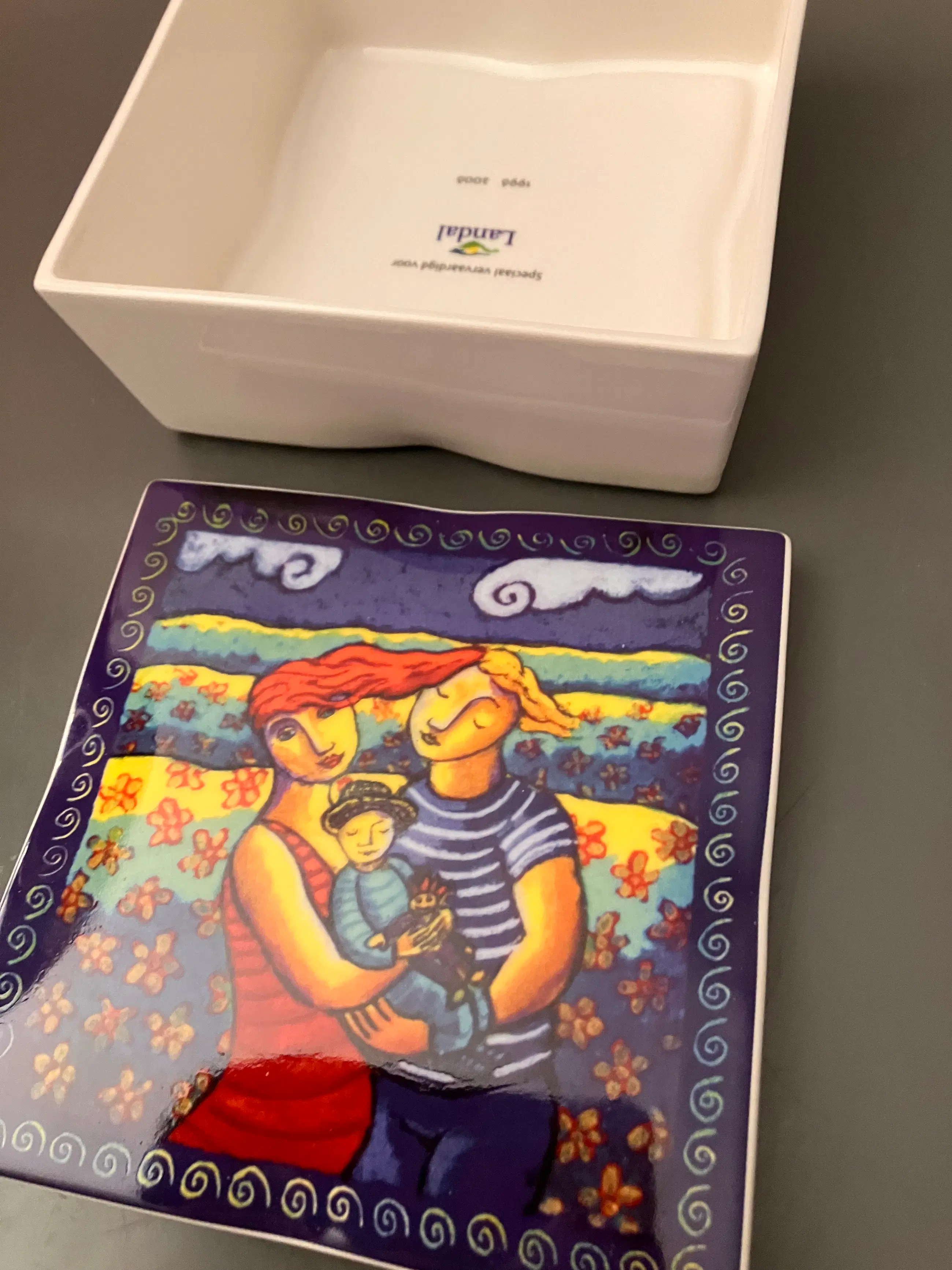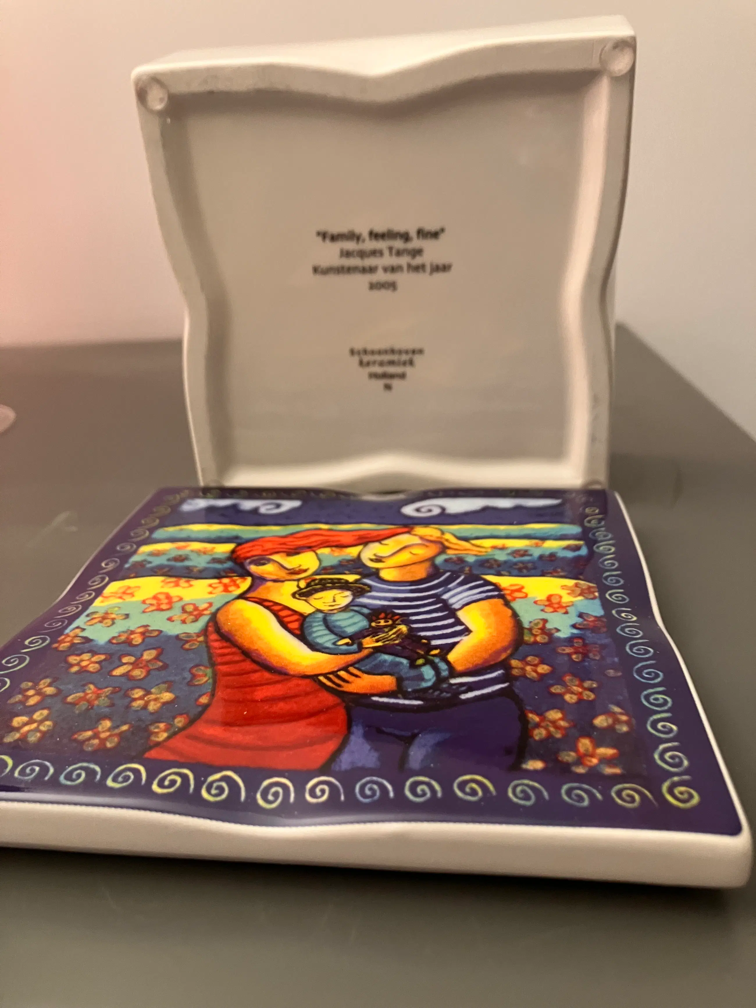 Kleurrijke decoratie van gelukkige familie Schoonhoven Keramiek Zie ook mijn advertentie van de schaal met dezelfde afbeelding