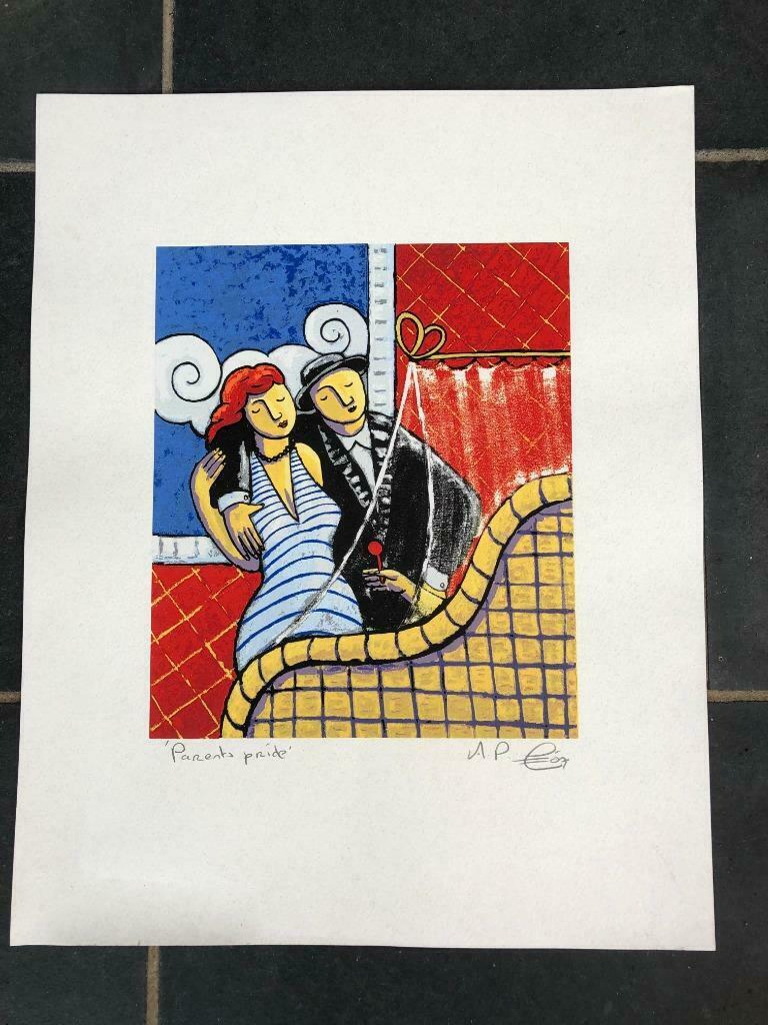 Gesigneerde losse zeefdruk van Jacques Tange, ''Parents pride''