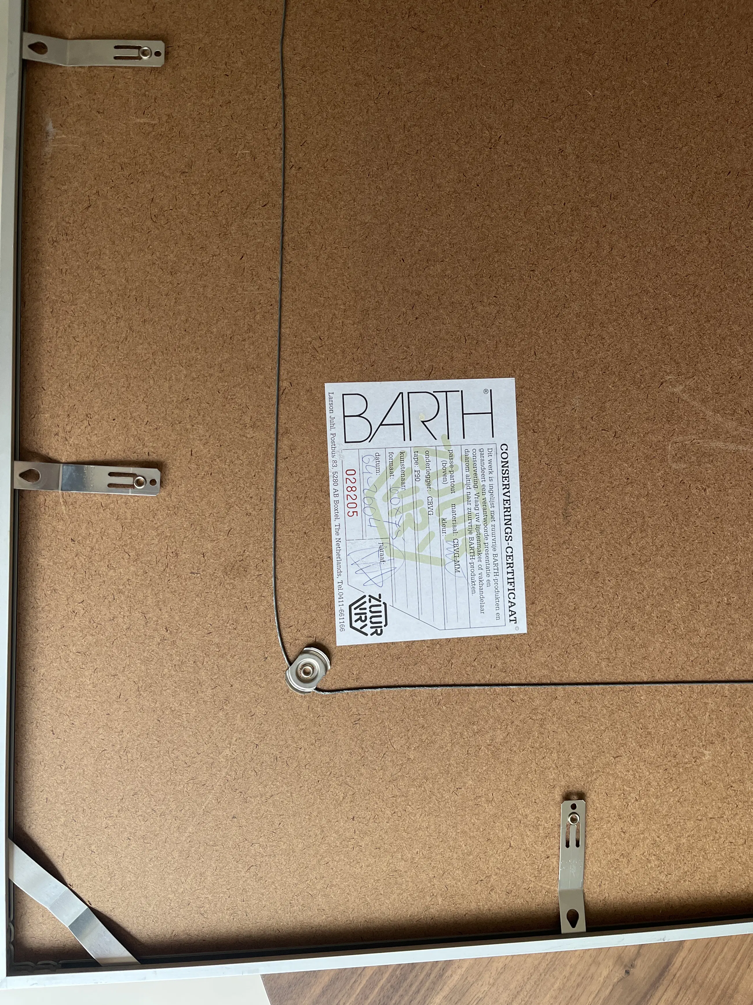Ingelijst in originele zilverkleurige lijst met zuurvrije BARTH produkten, inclusief een conserverings certificaat