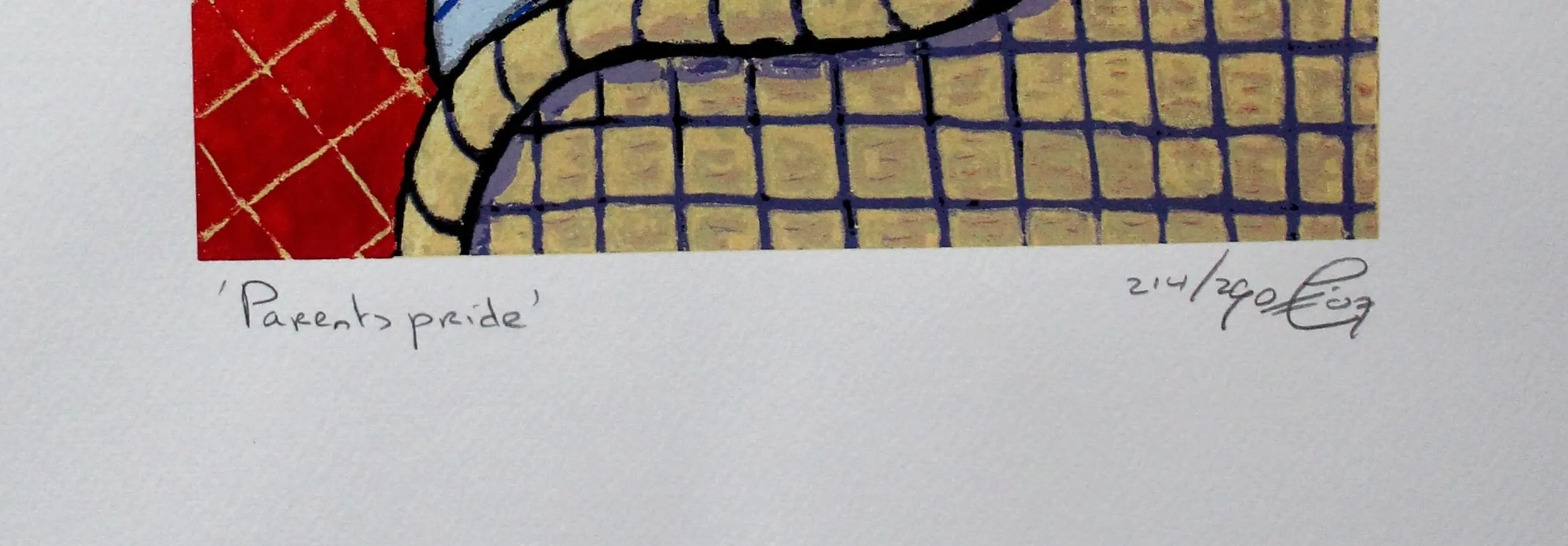 Zeefdruk van Jacques Tange. Titel: Parents Pride. Nummer: 214/290. Jaar: 2007. Het werk is rechtsonder gesigneerd door de kunstenaar. Afmeting voorstelling: H28 x 24 cm. De authenticiteit van het aangeboden werk wordt volledig gegarandeerd. Een certificaat van echtheid kan, op aanvraag, worden gemaild.