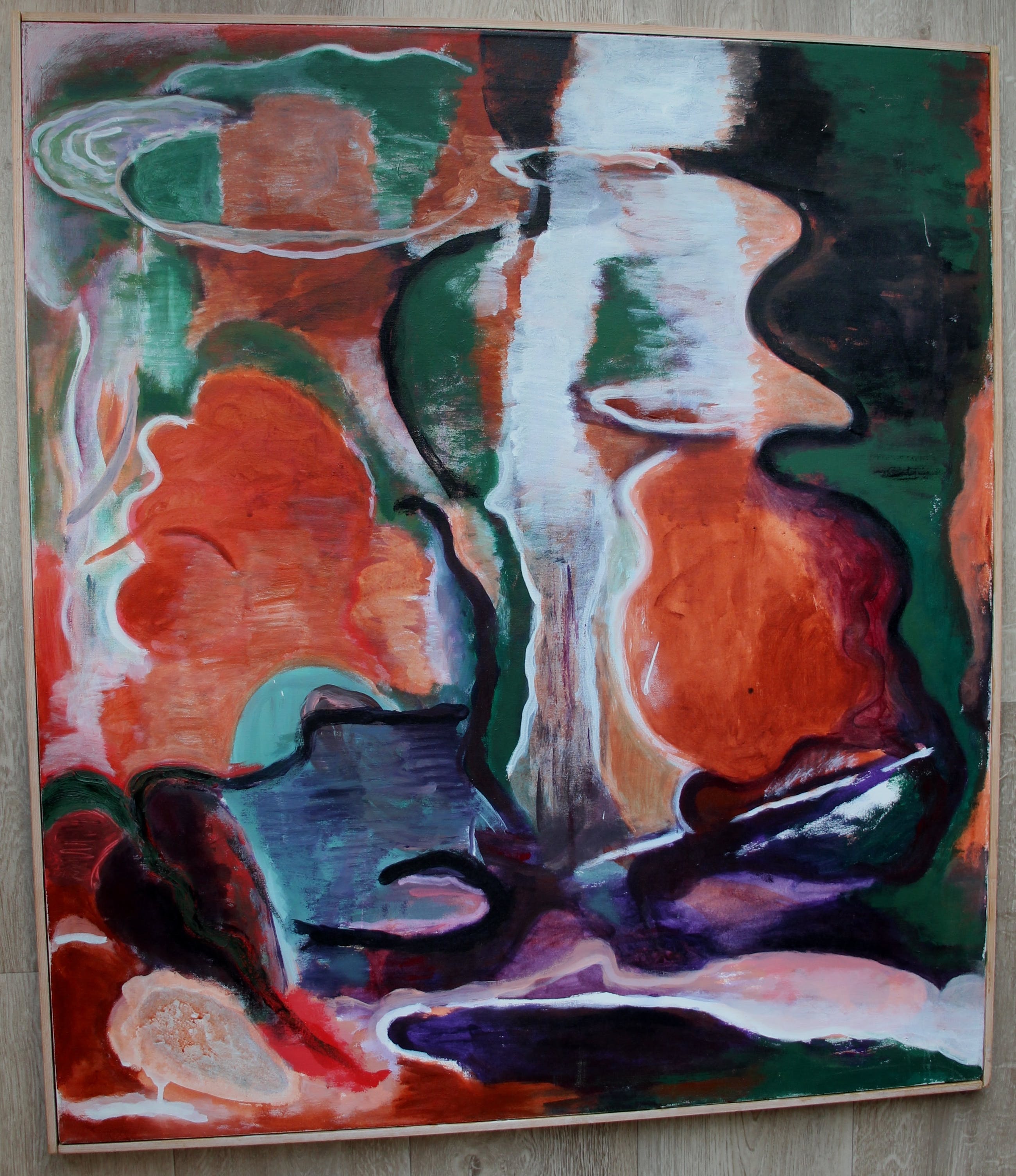Ingelijste schilderij van Jacques van Erven uit 1989. Acryl op linnen. Titel: Zonder Titel. Afmetingen incl. lijst: h91,5 x b81,5 cm. Afmetingen werk: h90 x b80 cm. Met potlood op de achterzijde gesigneerd. De authenticiteit van dit werk wordt volledig gegarandeerd. Een certificaat kan, op aanvraag, worden gemaild.