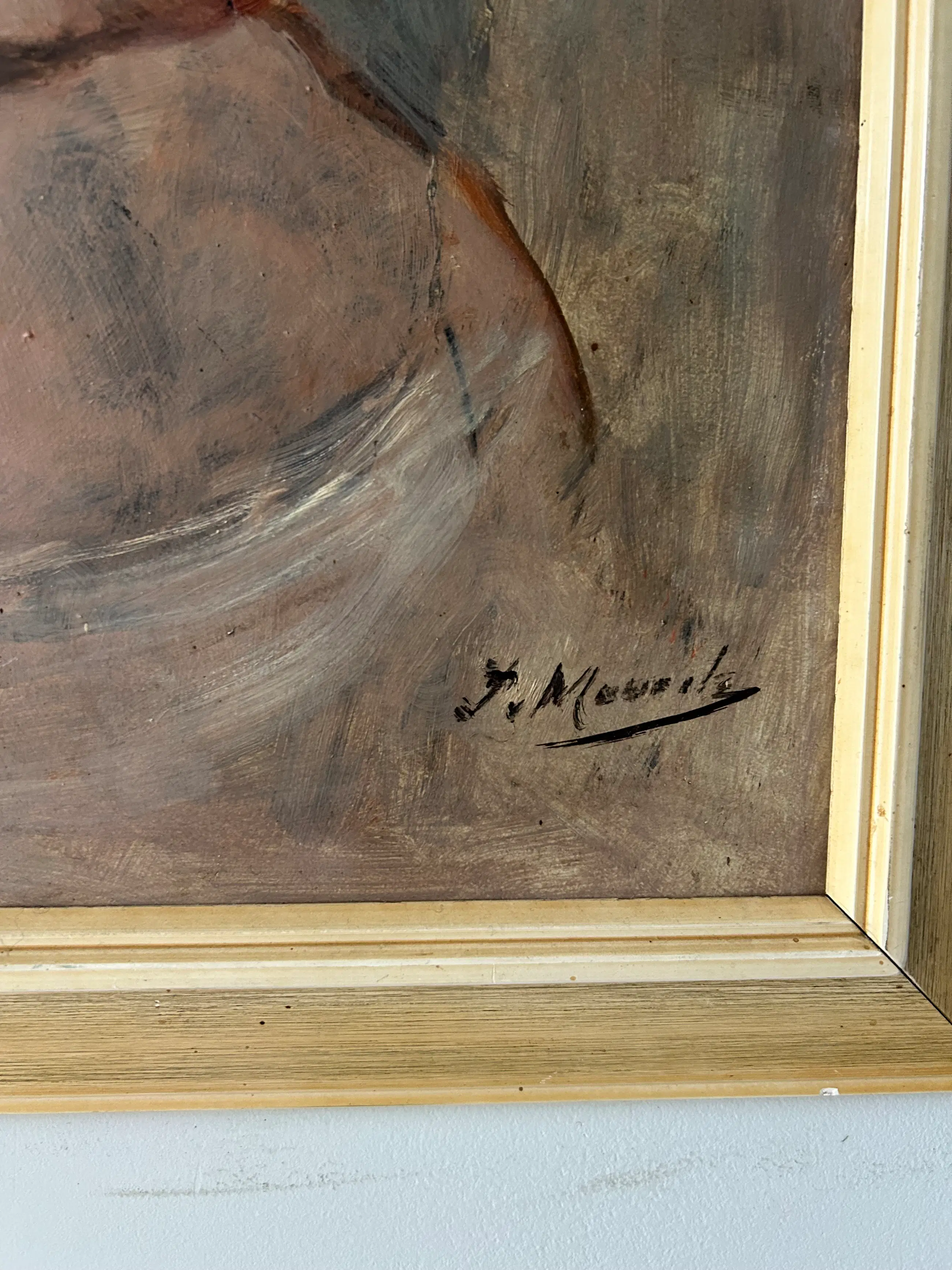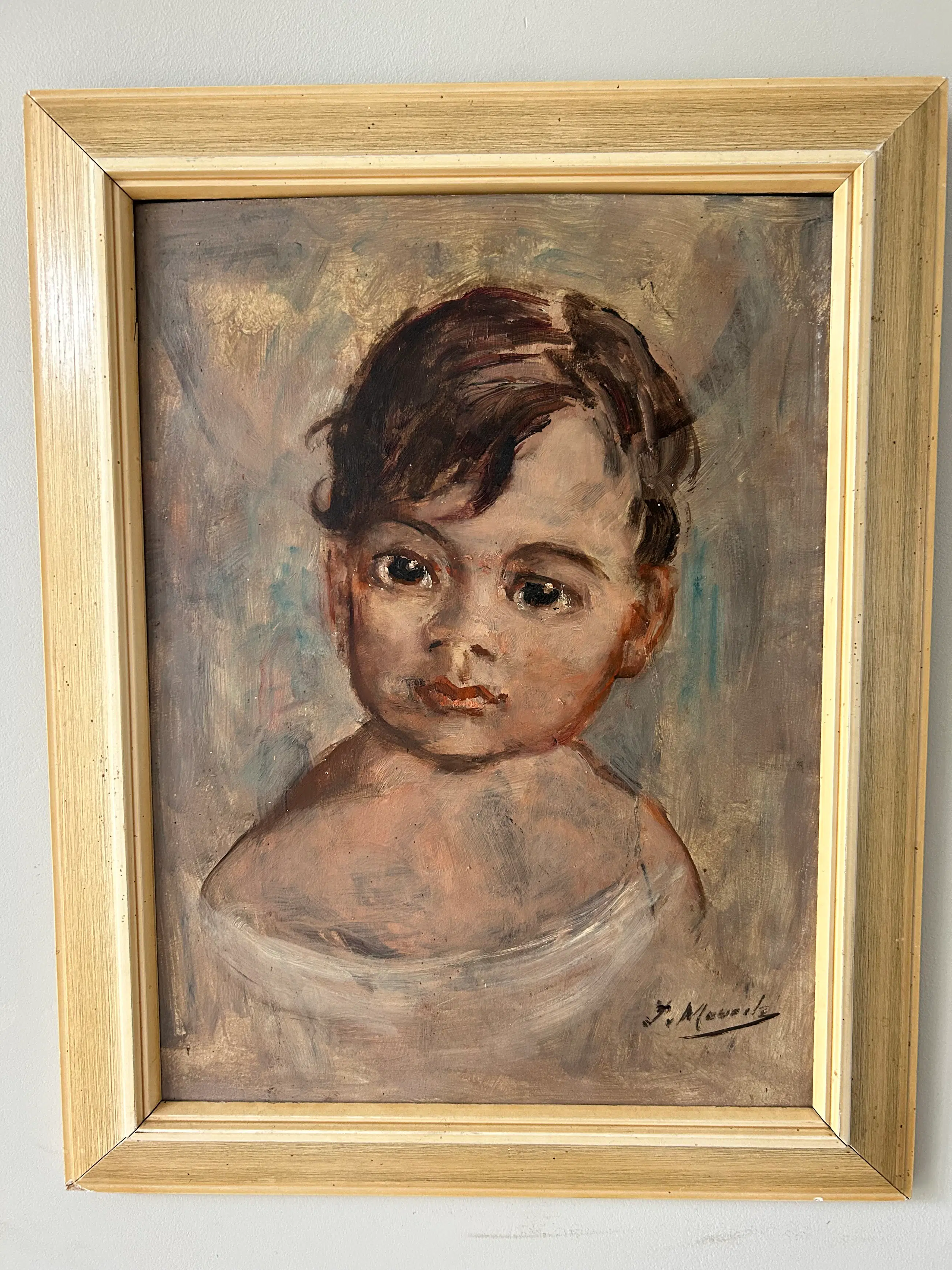 Jacques van Mourik (1879–1971), de grondlegger van de kunstenaarskolonie in Plasmolen, staat bekend om zijn sfeervolle portretten, waaronder een bijzondere serie van Molukse kinderen. Na de aankomst van Molukse KNIL-militairen in Nederland (1951) werd in Plasmolen een woonoord ingericht. Van Mourik en zijn collega-kunstenares Jopie van Kampen raakten bevriend met de bewoners en schilderden de kinderen die in dit kamp woonden. Dit is een lieflijk portret van een jong kind. Prachtig geschilderd op paneel en in de originele houten lijst.