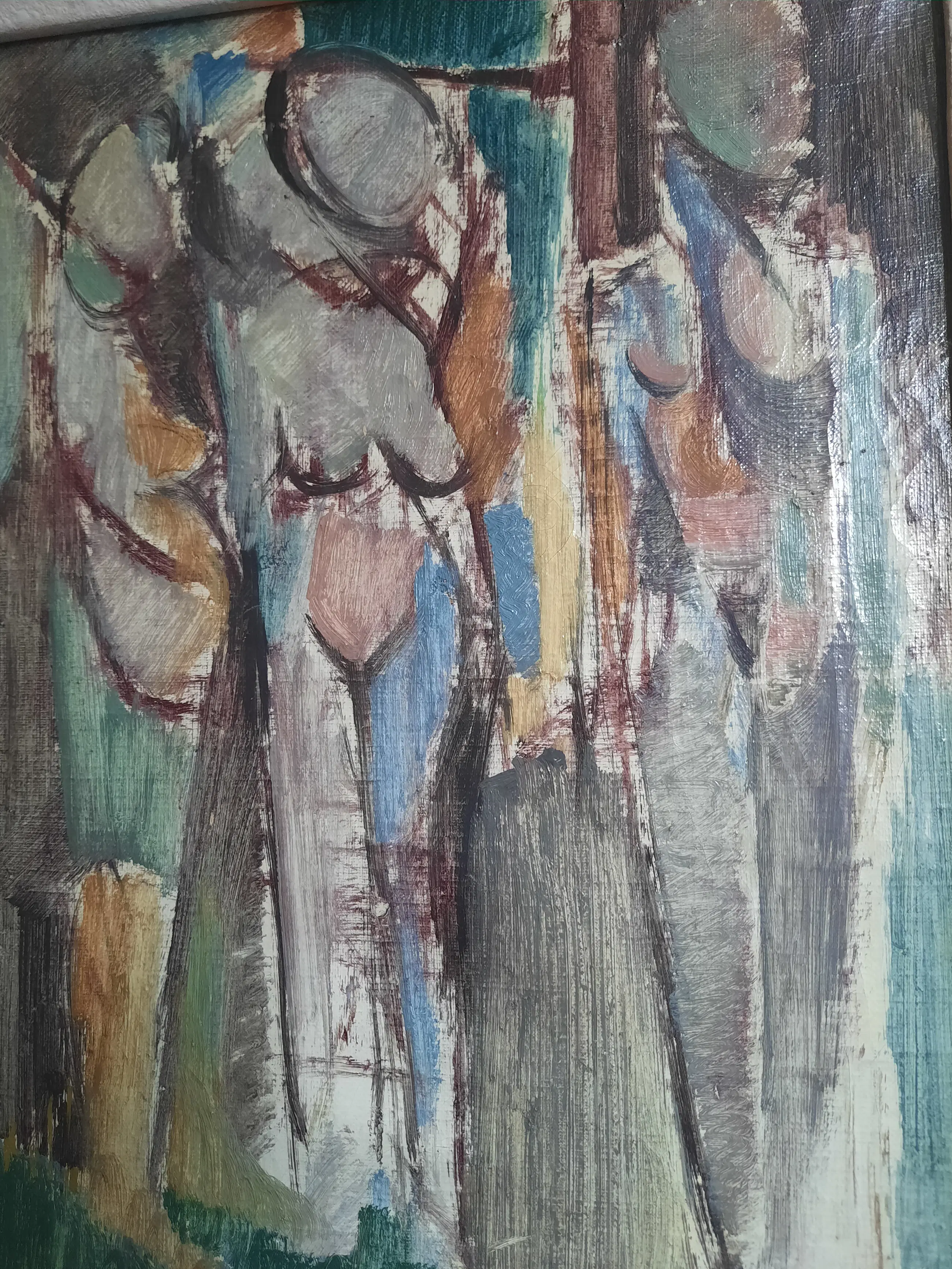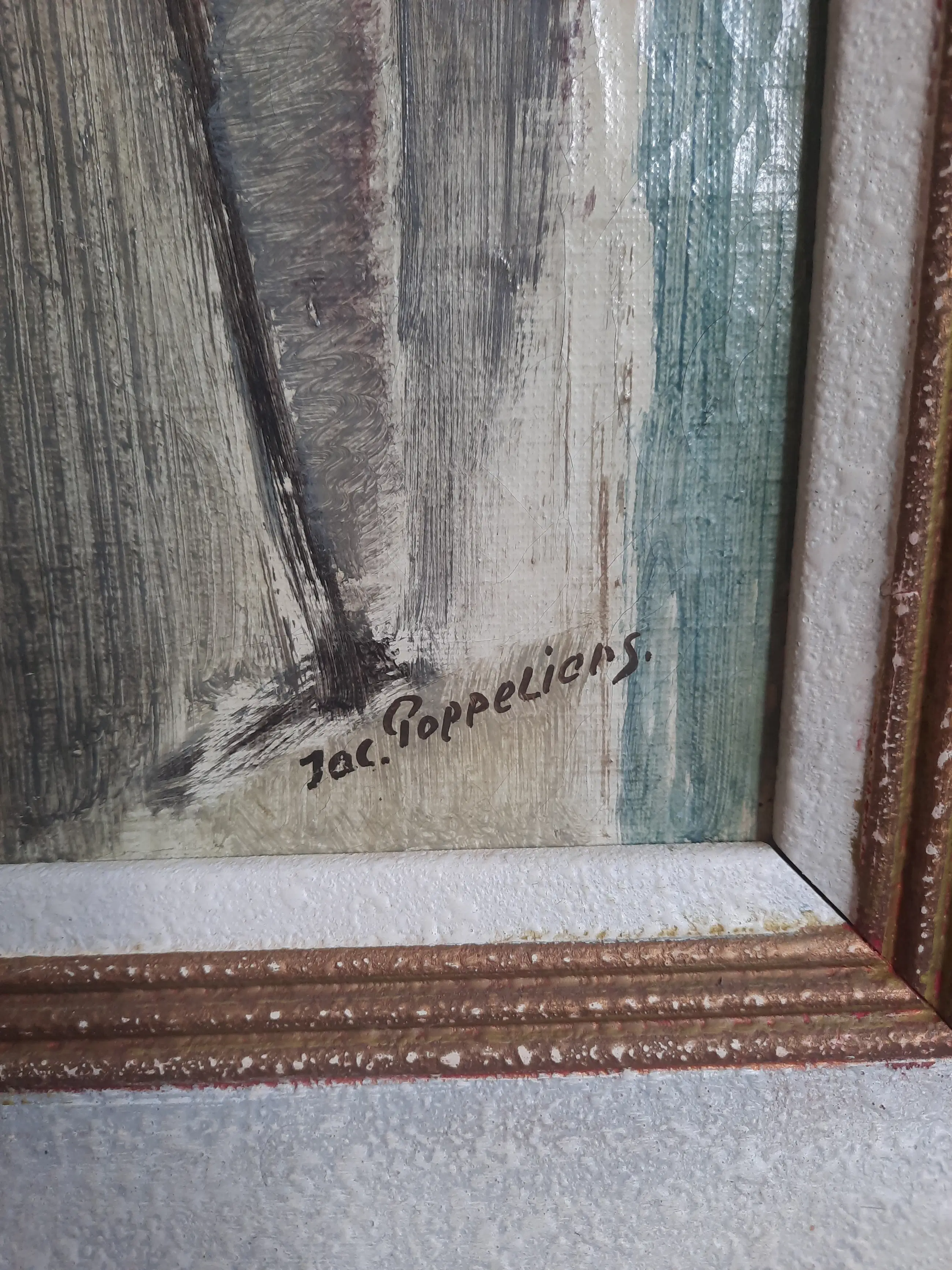 Olieverf op canvas, Jacques van Poppeliers Drie vrouwfiguren Ingelijst zonder glas
