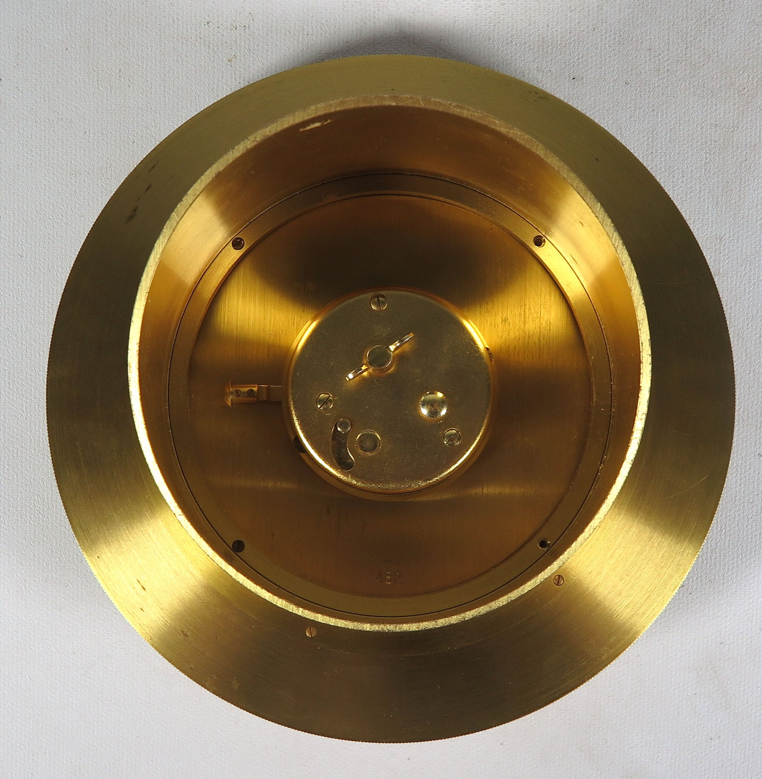 | In zeer goede staat gezien leeftijd. Op een enkele plekje lichte aanslag op het brons, maar met name aan de achterzijde op de steun. Links van de klok op de rand mist een minuscuul plekje brons, waardoor de onderste laag zichtbaar is. Het glas/kunststof heeft een enkel krasje. Aan de achterzijde missen twee schroefjes. Dit heeft geen verdere invloed op de werking van de klok. | |||