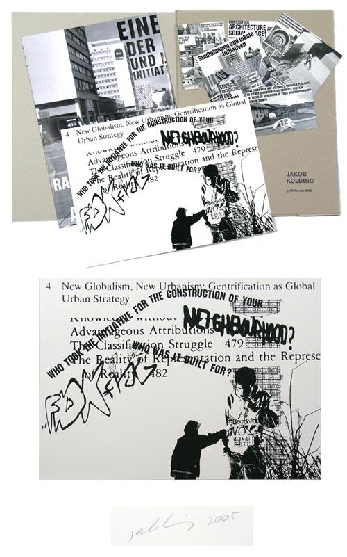 Jakob Kolding - "Eine Fallstudie der Raumplanung", Umschlagmappe mit einem Siebdruck (verso mit Bleistift handsigniert), einem Plakat (gefaltet) und 6 Postkarten von 2005. Formate: Siebdruck 30 x 42 cm, Poster 59,4 x 84,1 cm, Postkarten je 10,5 x 14,8 cm. Zustand: sehr gut. Versandkosten: 6,90 Euro (Flachversand). Verkauf aus einer Privatsammlung (Sammlungsauflösung), kein Umtausch, keine Gewähr. Beachten Sie bitte auch meine weiteren eART-Einlieferungen - es lohnt sich !