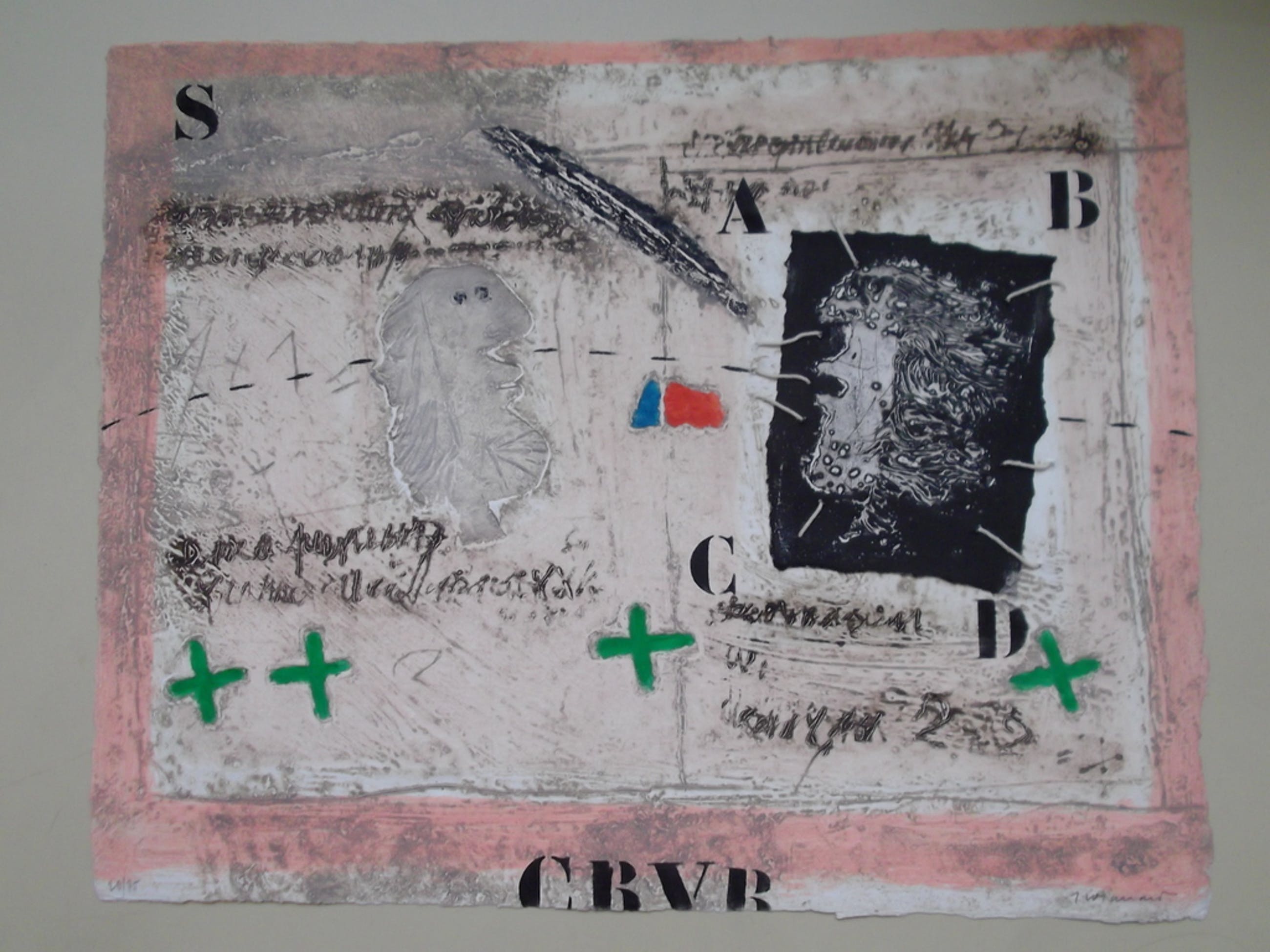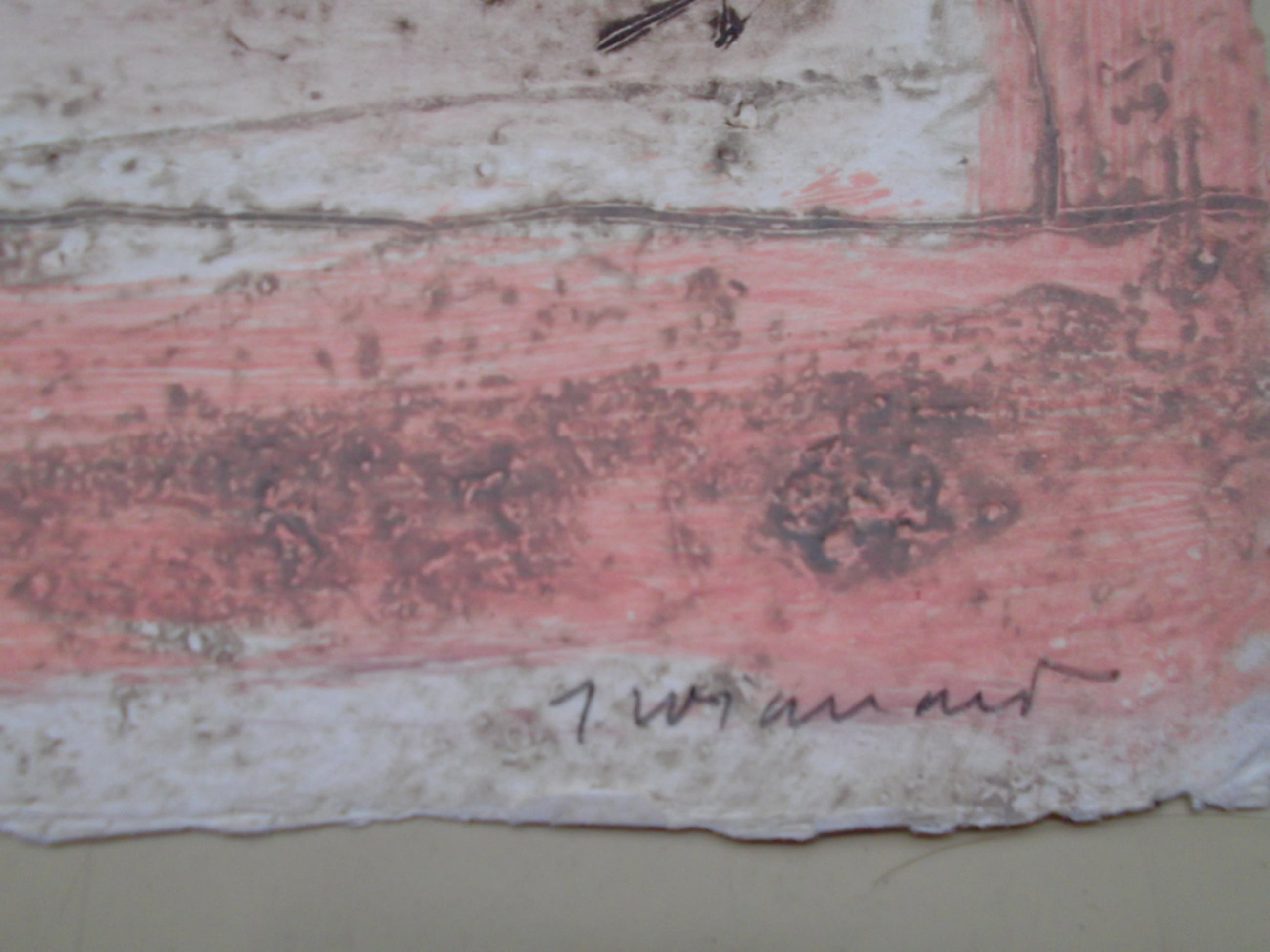 Niet ingelijst. In goede conditie. Gemengde techniek, touw in in de litho verwerkt. Zie foto 3.
