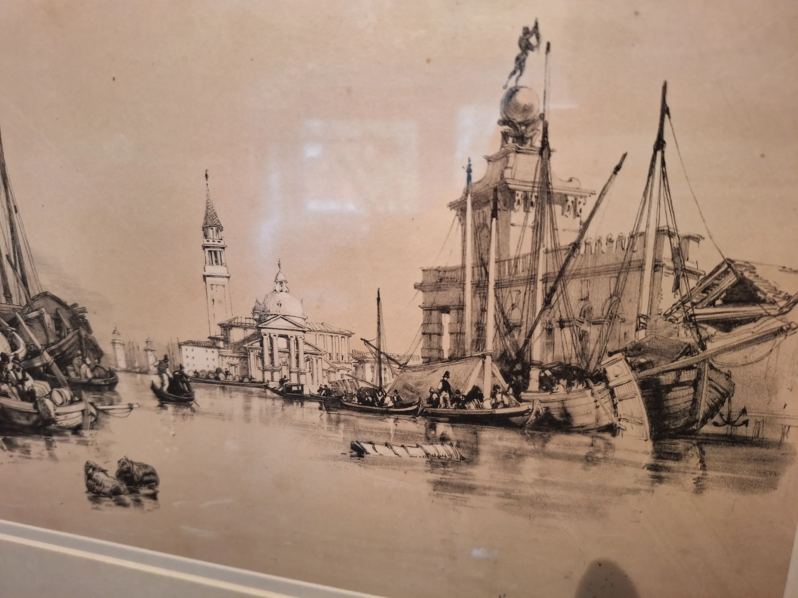 Zeer fraaie lithografie van de beroemde Britse schilder James Duffield Harding van Venetië. In goede staat en mooi ingelijst.