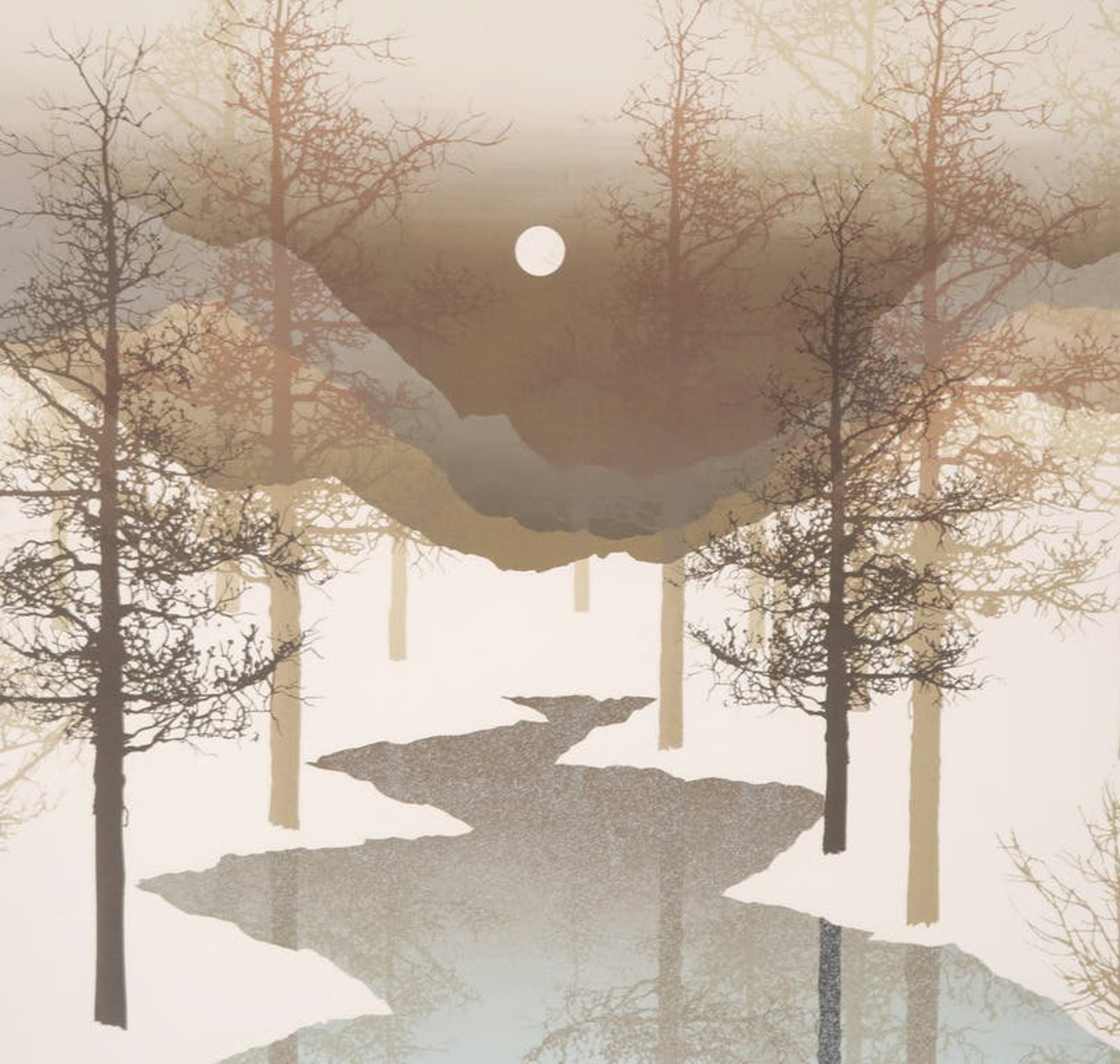 Materiaal: Zeefdruk op papier, bevestigd op stevig onderblad