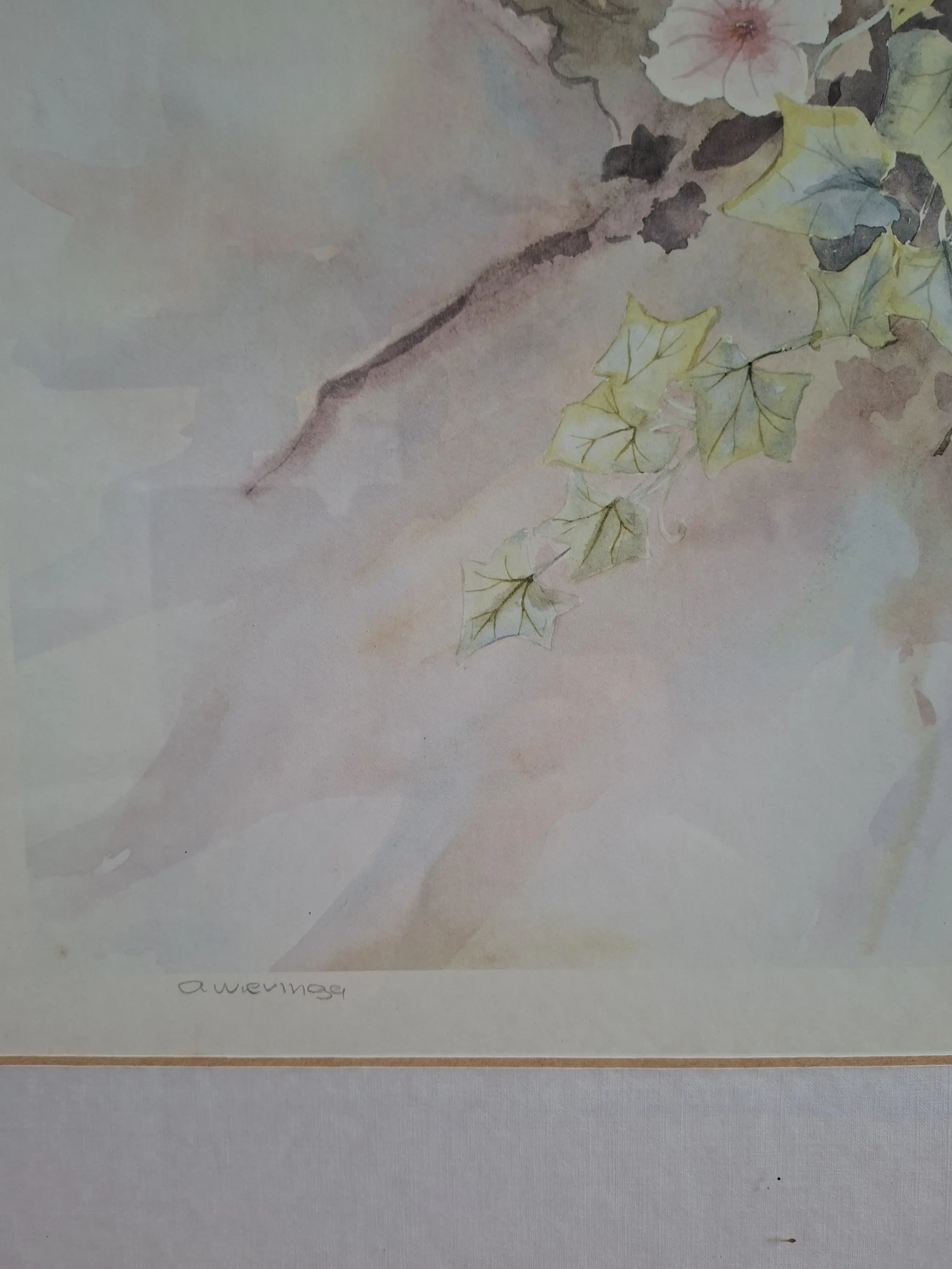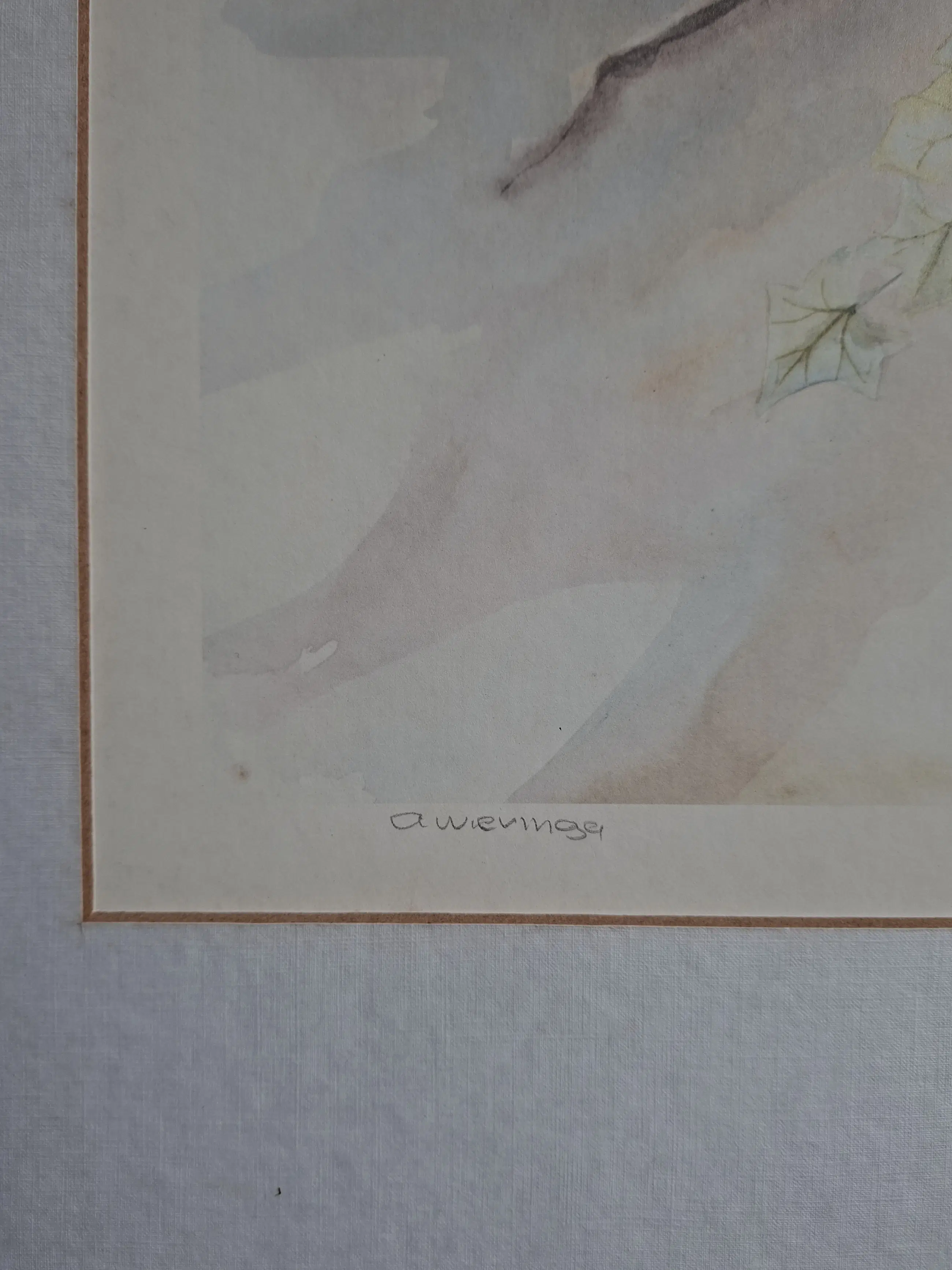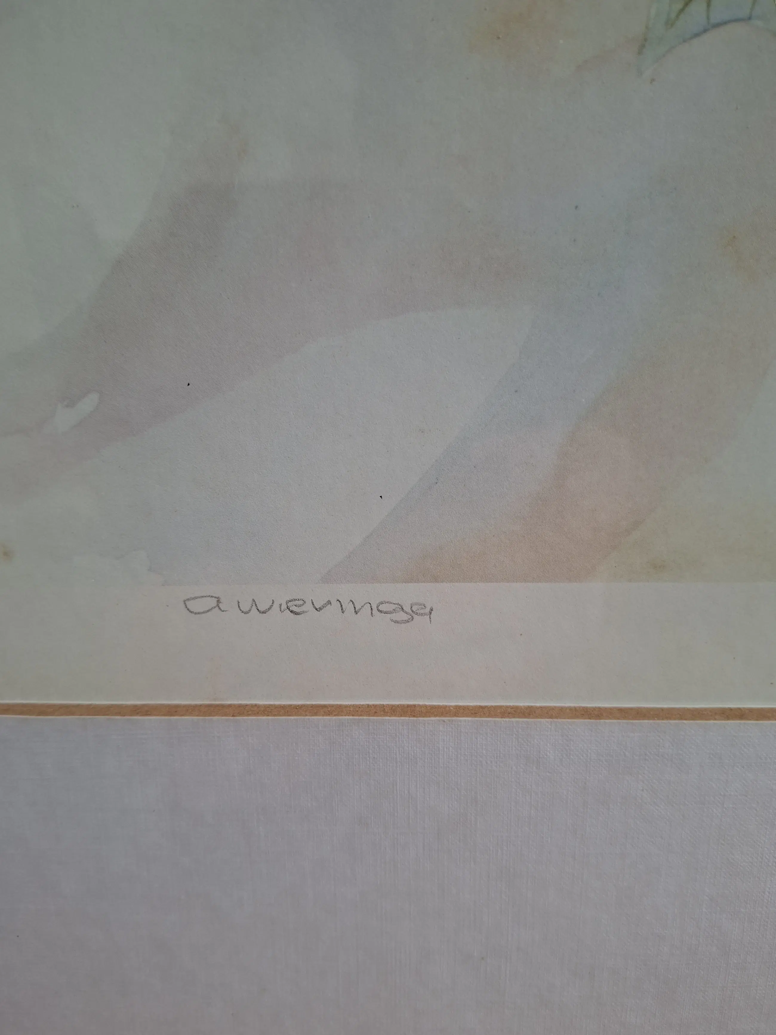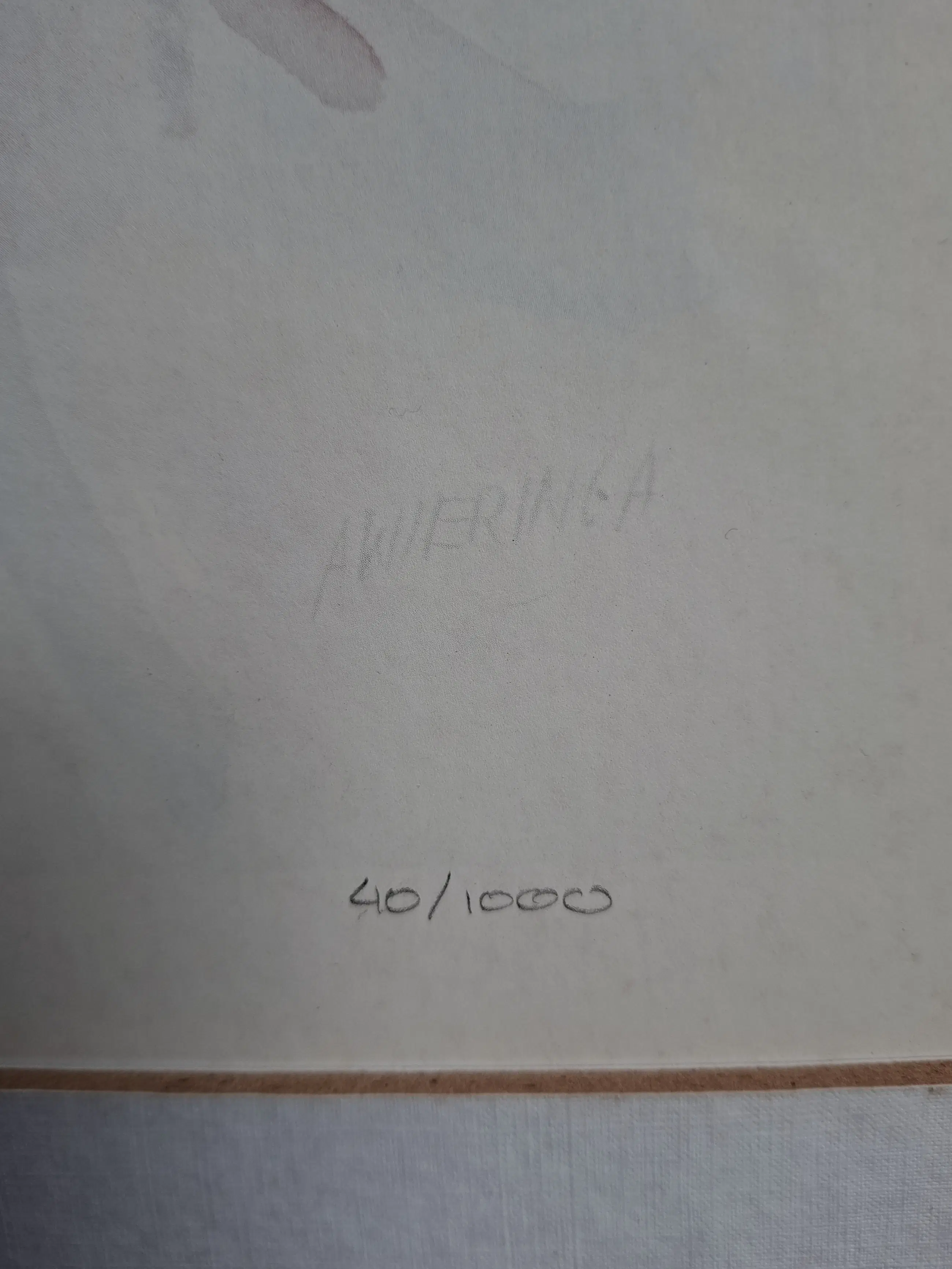 Rechtsonder boven het oplagenummer is een watermerk te zien van de kunstenaar AWIERIGA
