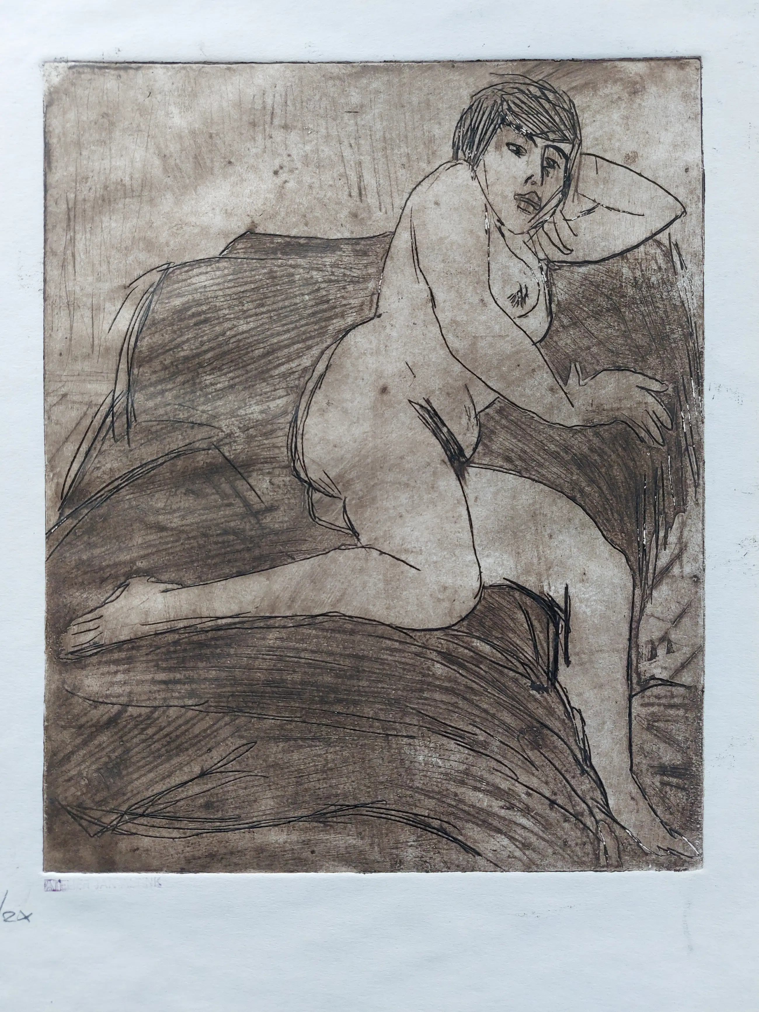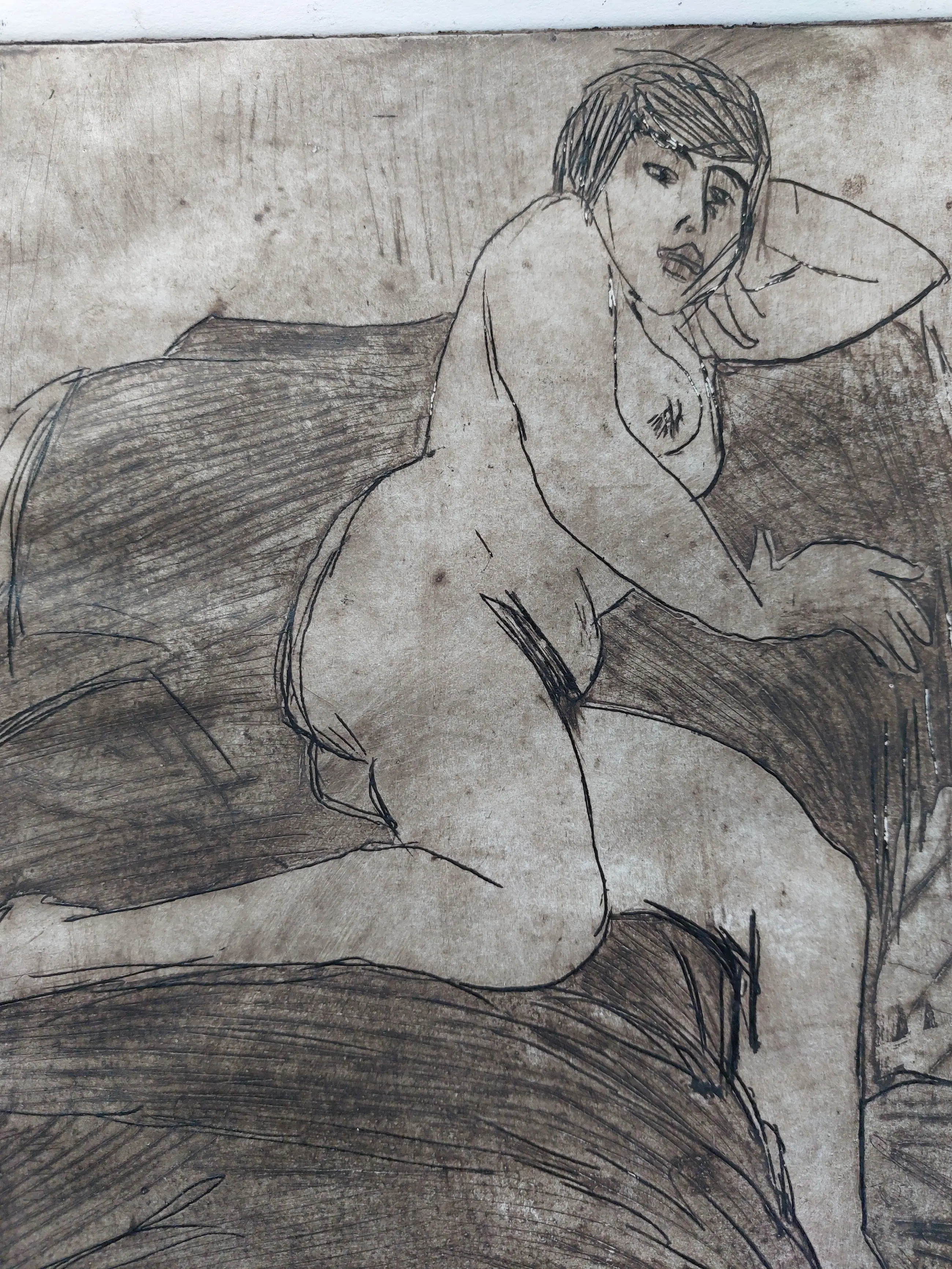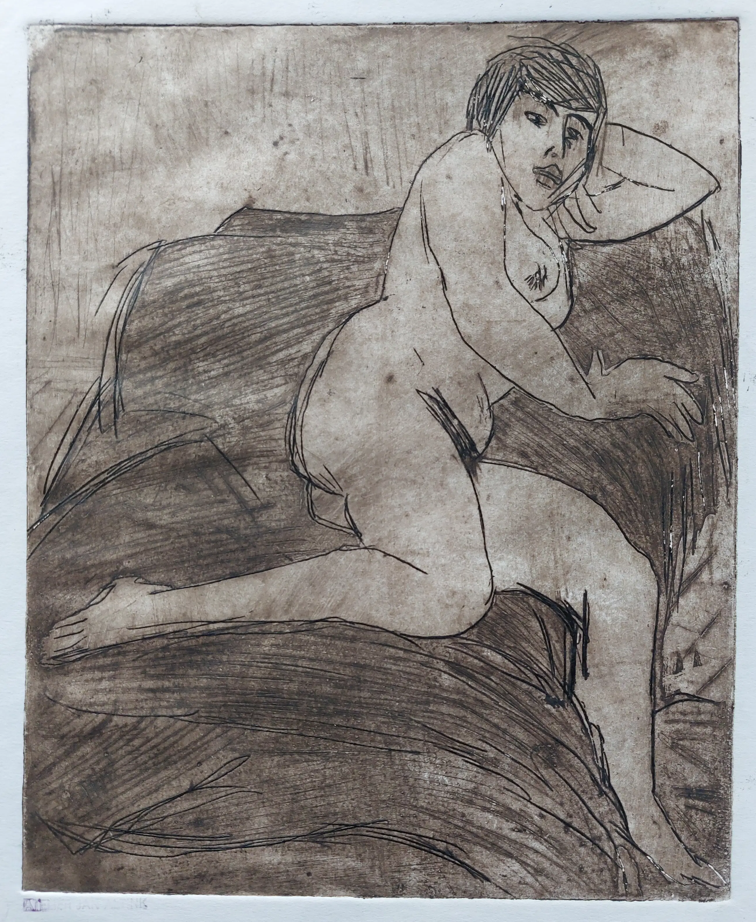 Schaarse ets/aquatint van Groninger Ploeg kunstenaar Jan Altink. Voorzien van ateliersrempel linksonder. In goede staat.