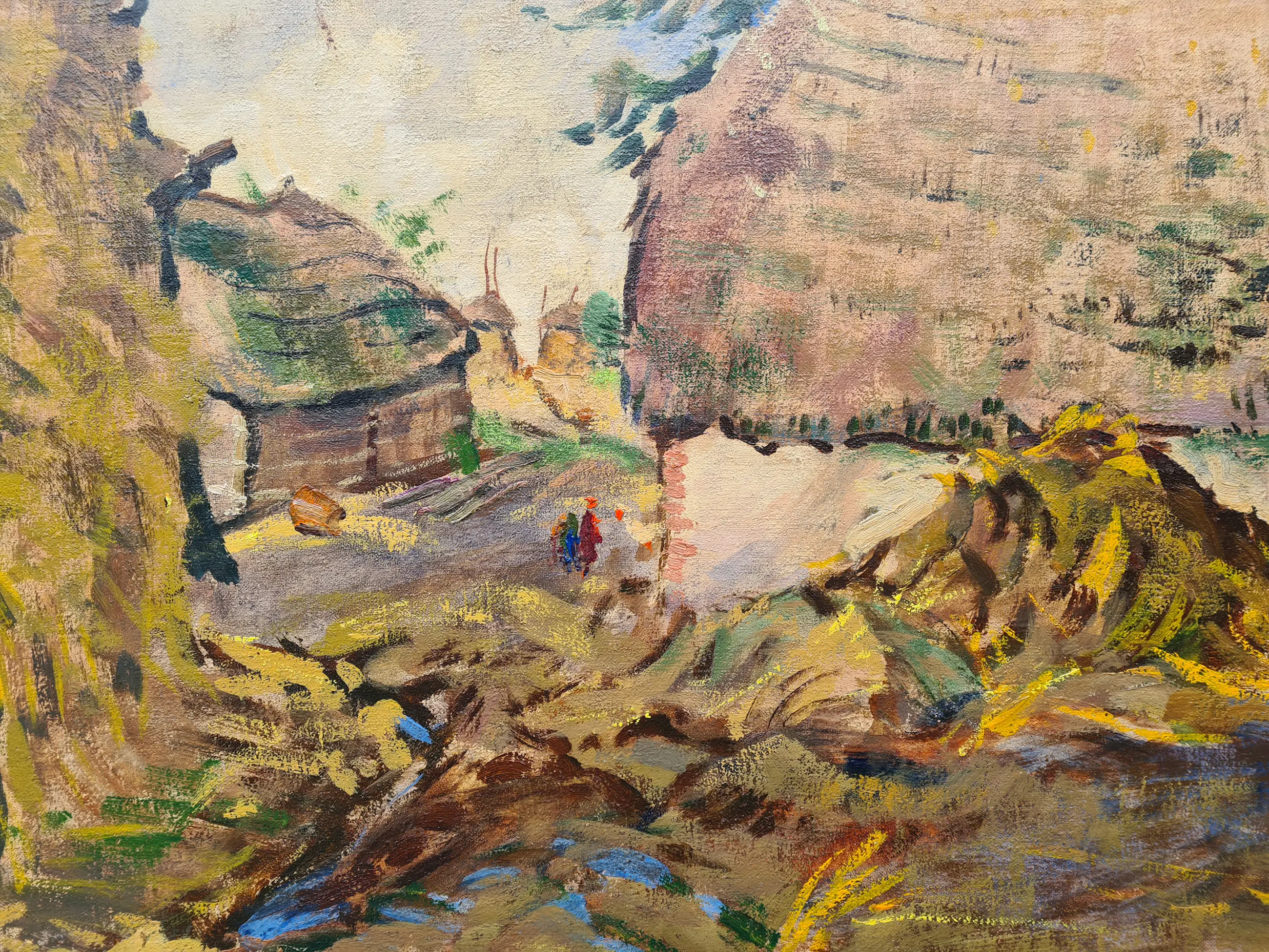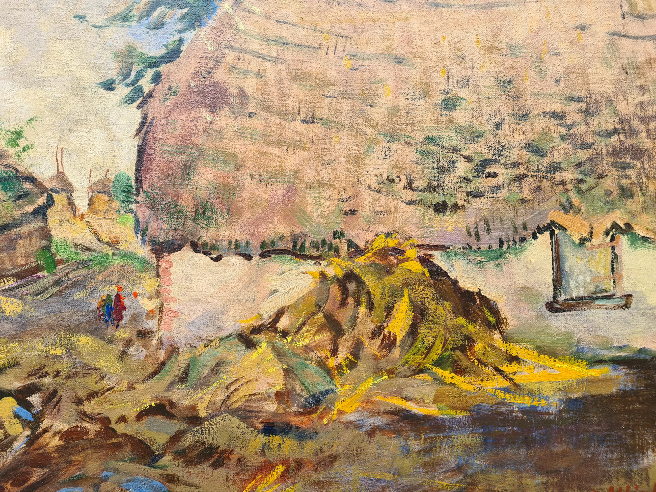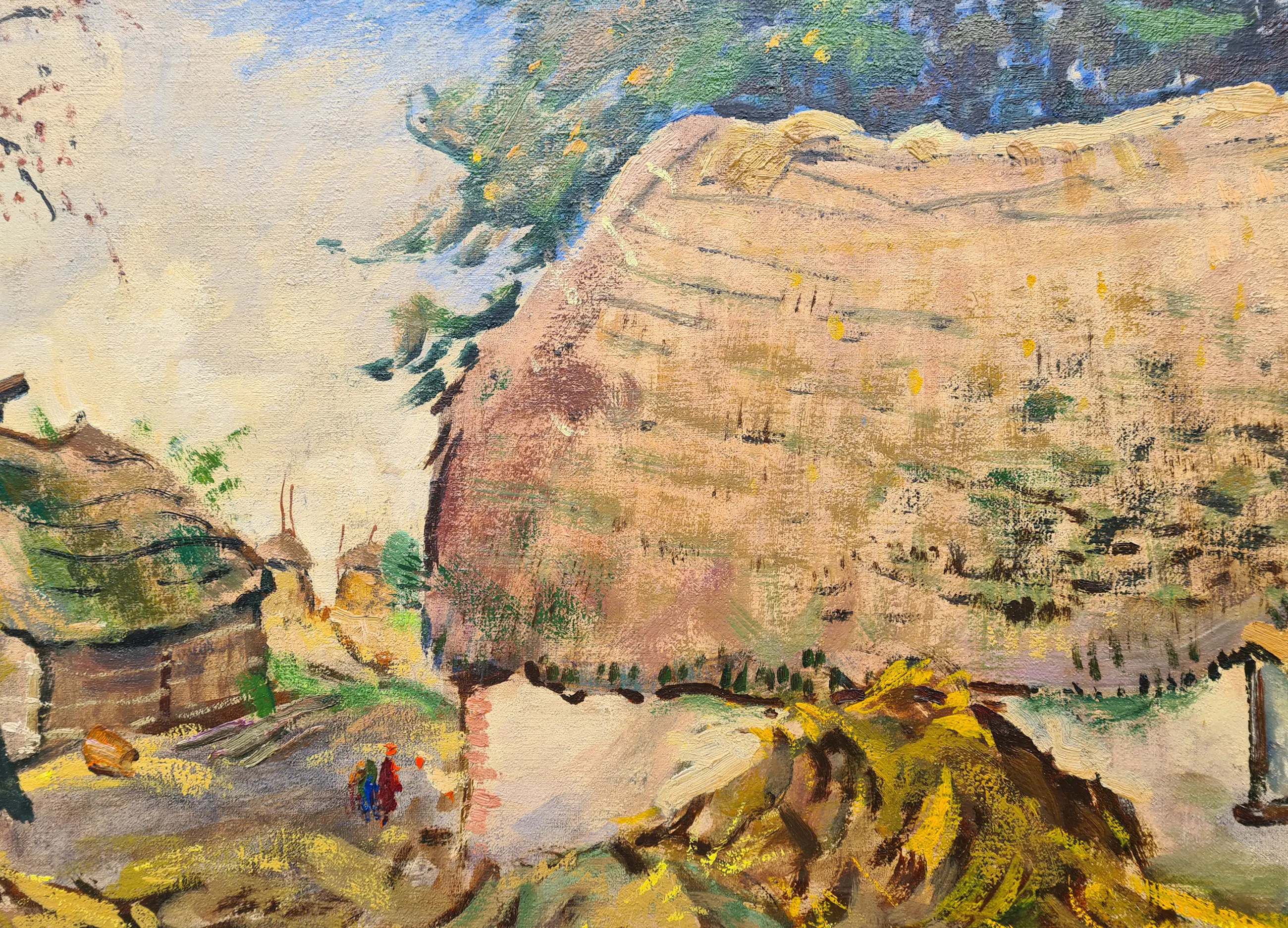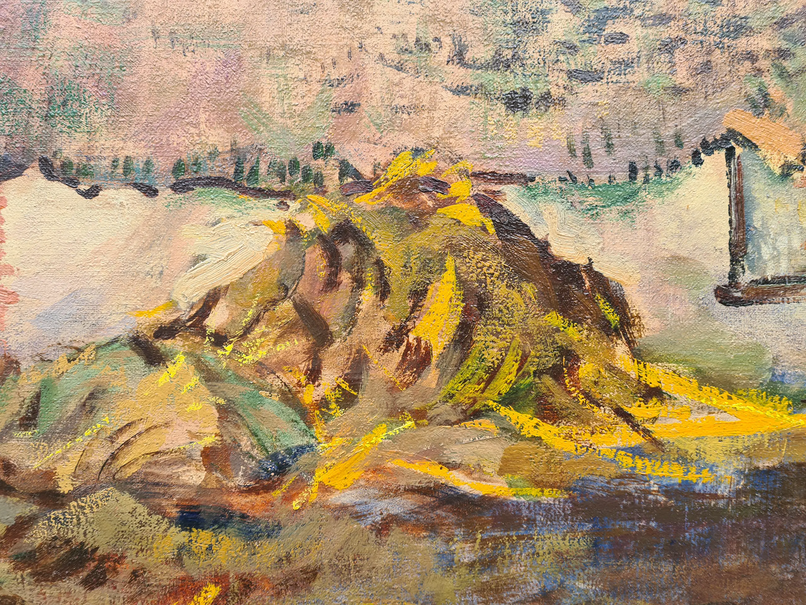 Schilderij van Jan Altink van een boerderij en schuur en 2 hooischuren ( steltenberg) op de achtergrond. Er werd/wordt wel eens gesuggereerd dat hij hier misschien wel geboren is. Essen is in de loop der jaren ondergegaan in de stad Groningen. De provenance van het werk is S&B = Simonis & Buunk en is voorzien van een taxatierapport van hun. Het werk komt het best tot zijn recht in een lichte omgeving of met een spotlight er op. Rechtsonder gesigneerd en gedateerd zit in een kostbare PGL = Paul Gehring lijst. Qua leeftijd is het werk in prima staat inmiddels 85 jaar oud.