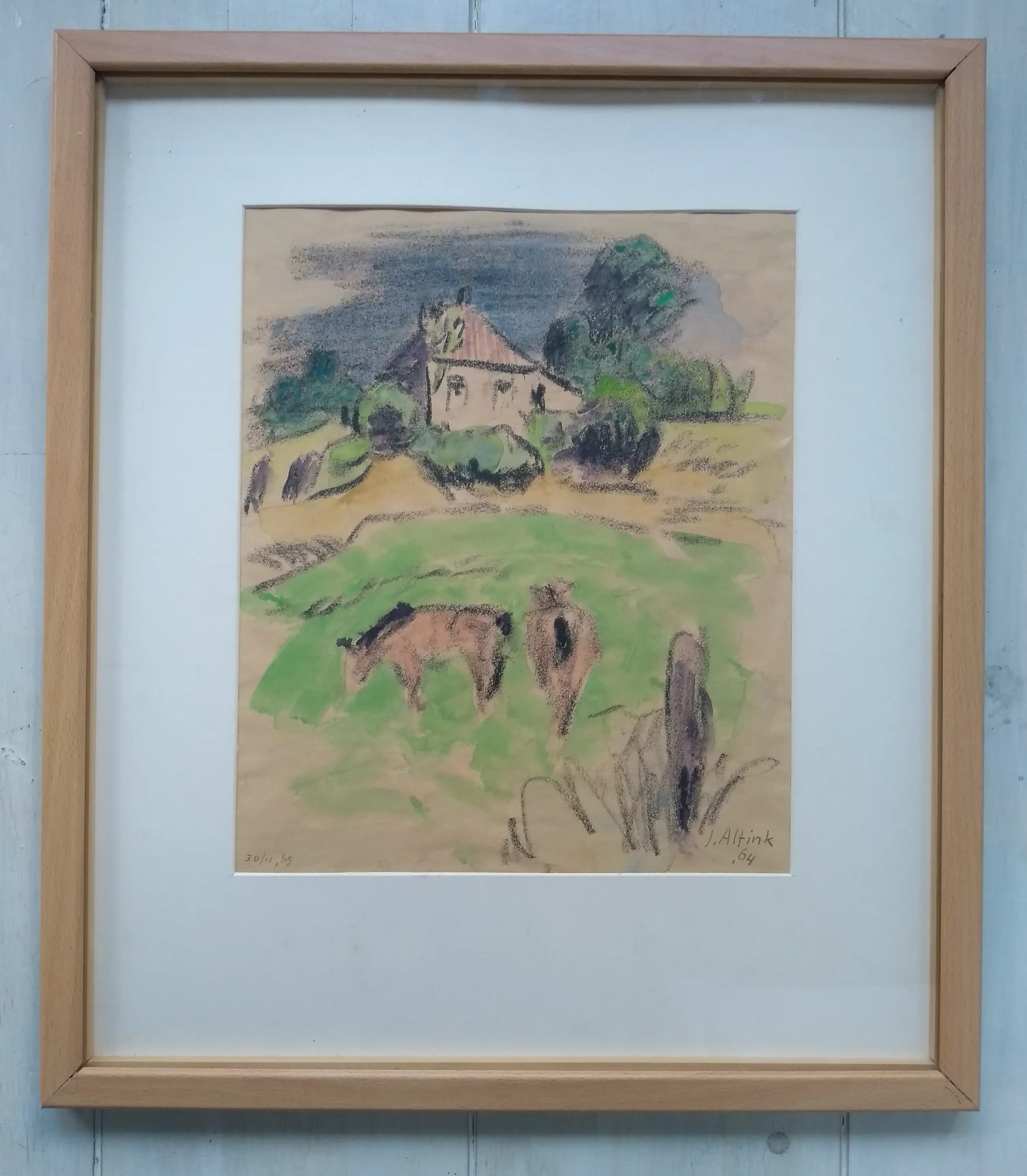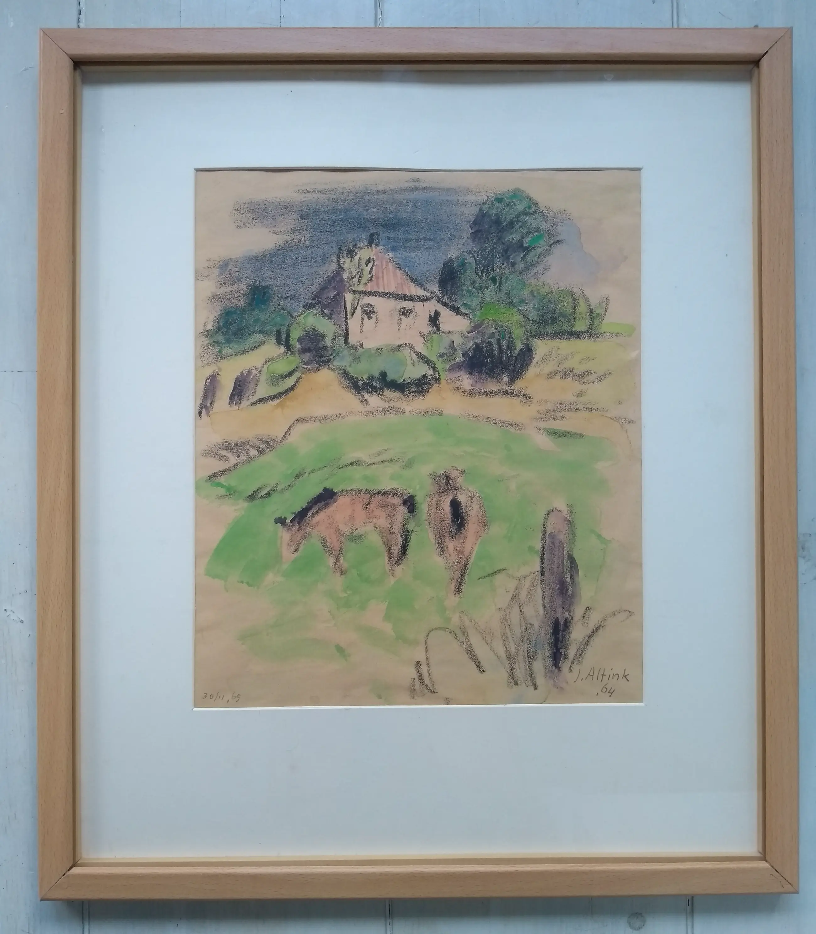 Pastel krijt op papier Gesigneerd rechts onder en gedateerd 1965 En links andere datum Afmeting is ongeveer Zeer passend ingelijst met diepte