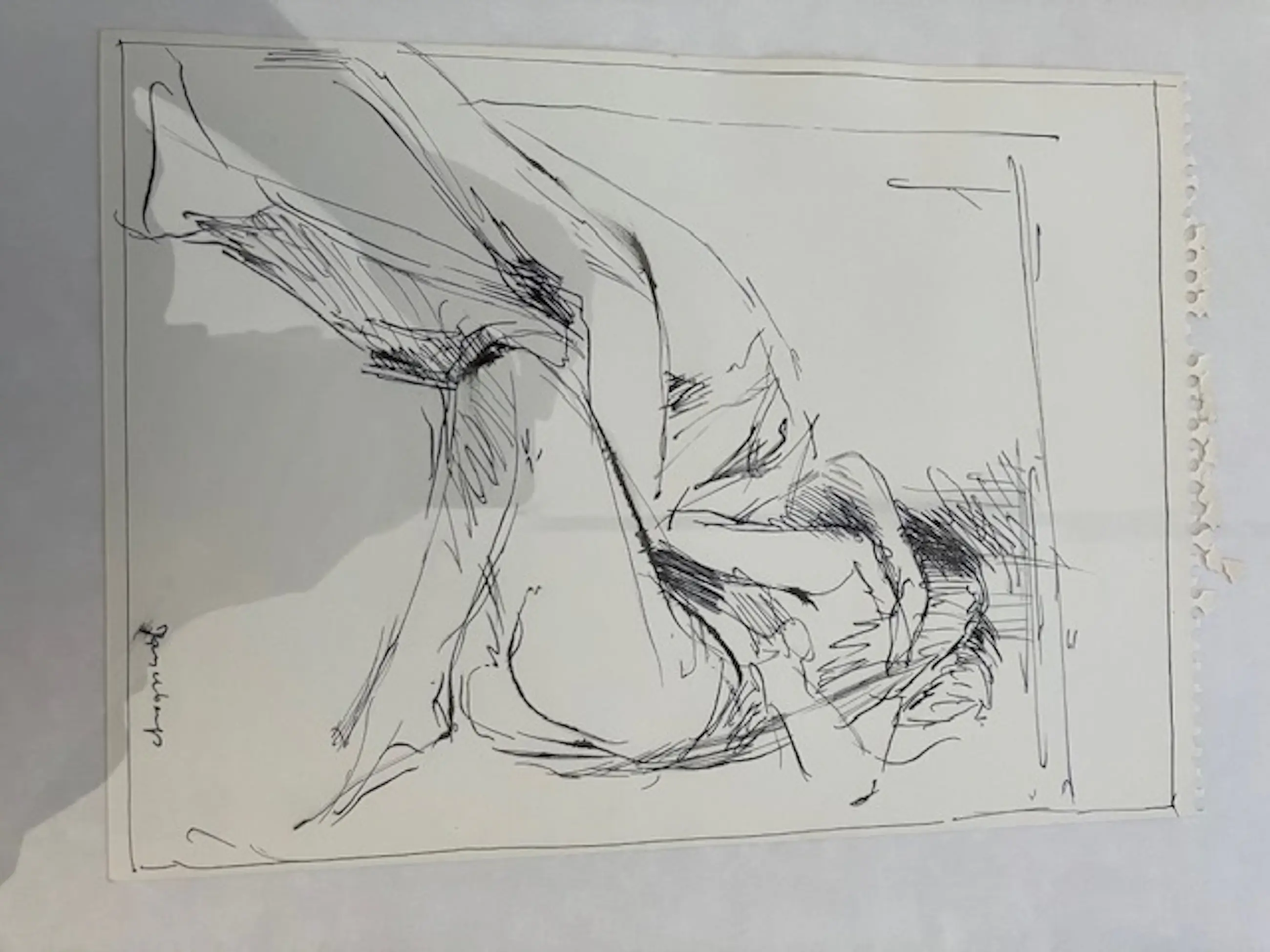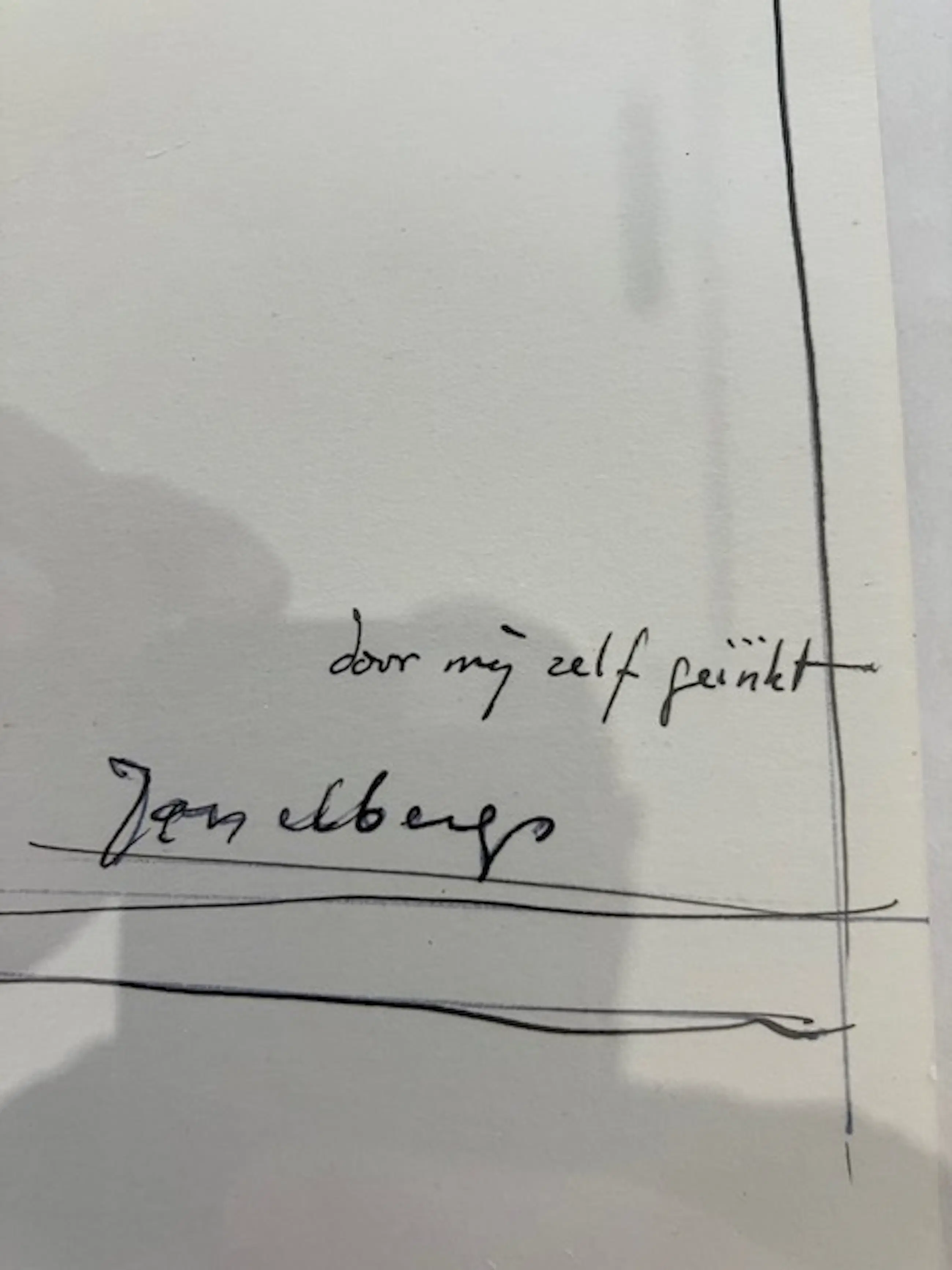| kunstenaar heeft op zijn tekenblok met inkt getekend, zelf gesigneerd en tekeningen uit het blok gescheurd. Hoge kwaliteit van de tekening: geen verkleuring, foxing of andere problemen. Ziet eruit alsof het gisteren is getekend. | |||||||||||