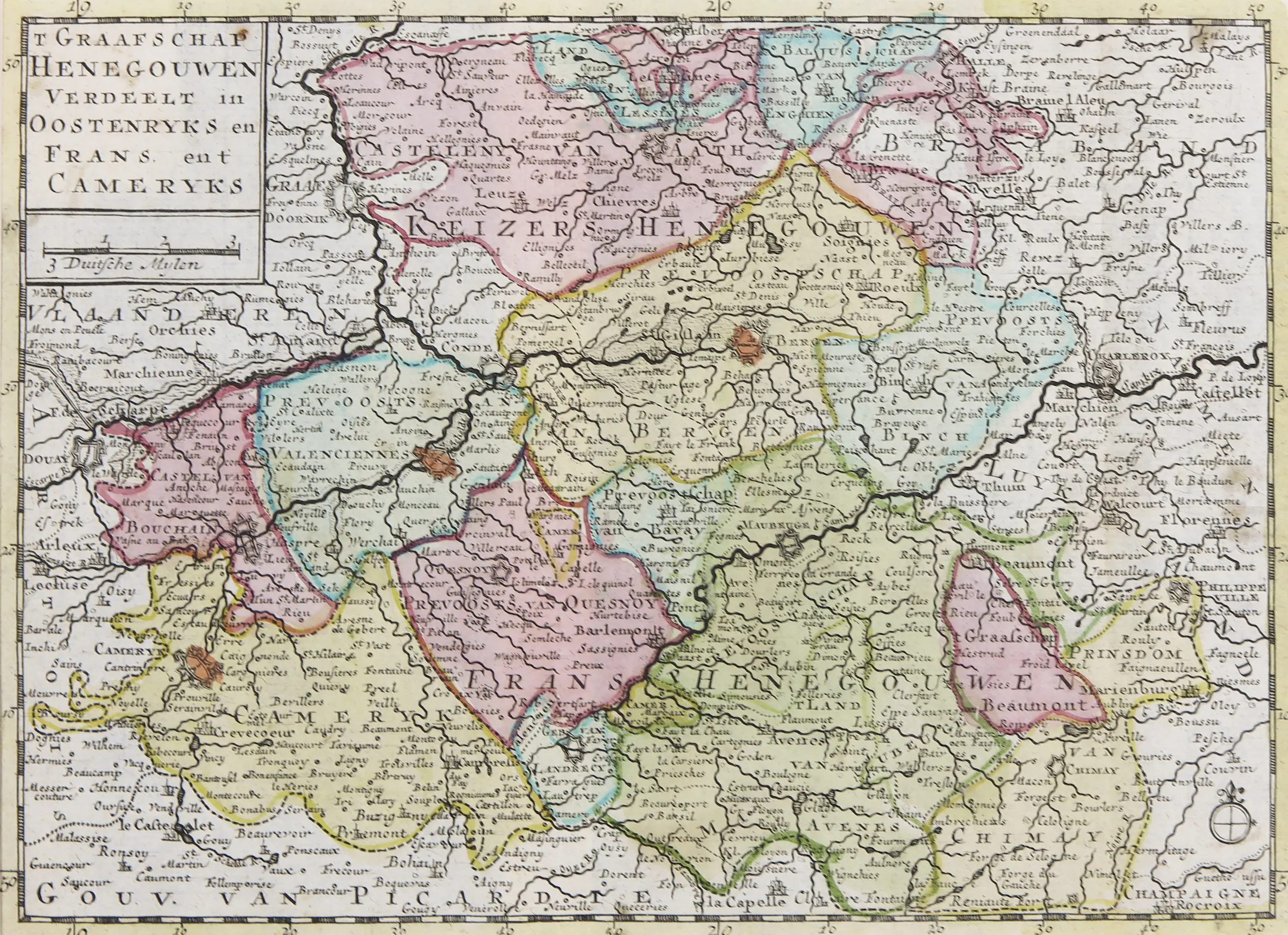 Handgekleurde kopergravure verschenen in Compleete Zak-Atlas, van de Zeventien Nederlandsche Provinciën, (...), uitgegeven door Jan Barend Elwe en Dirk Meland Langeveld in 1786.