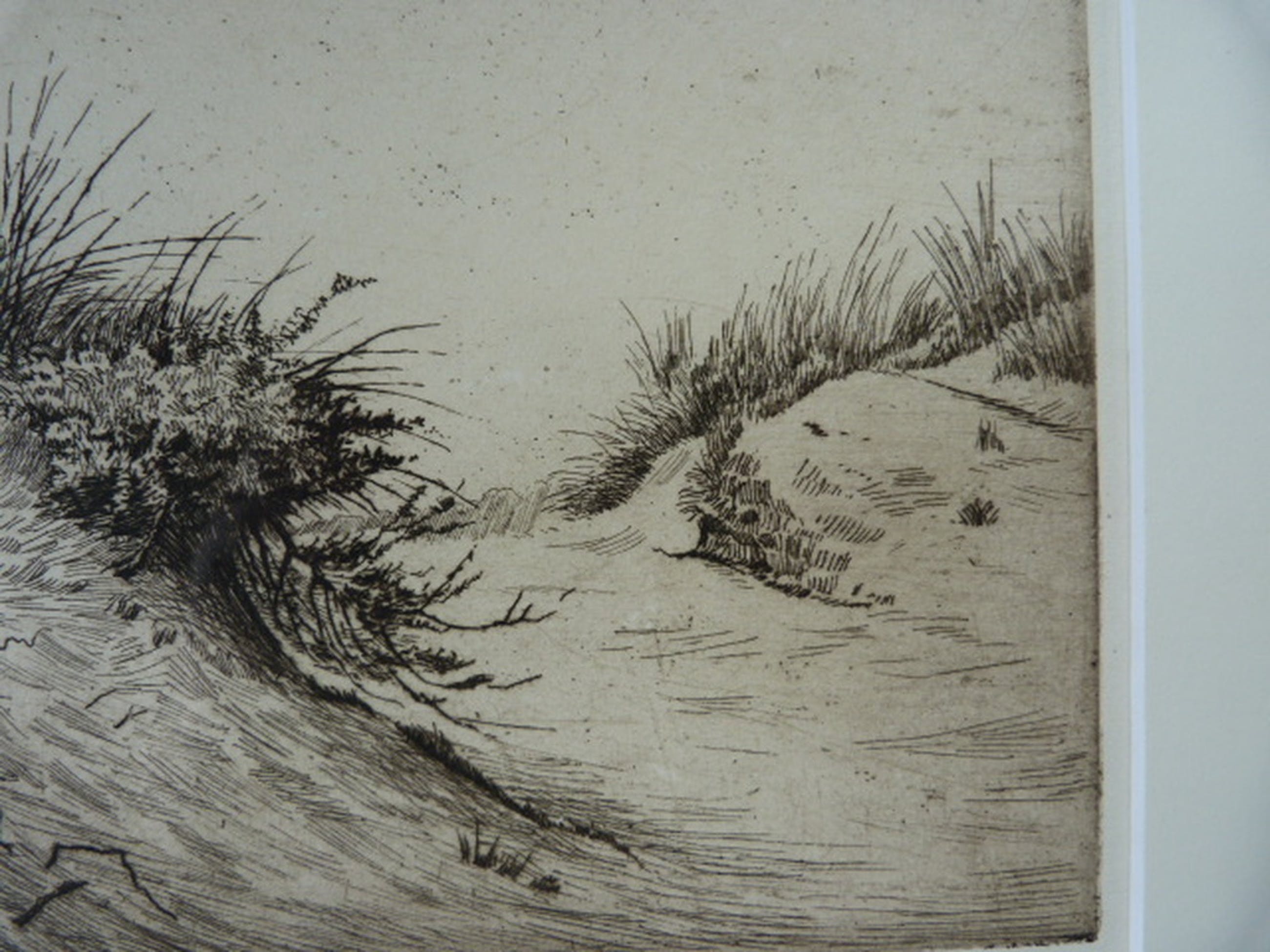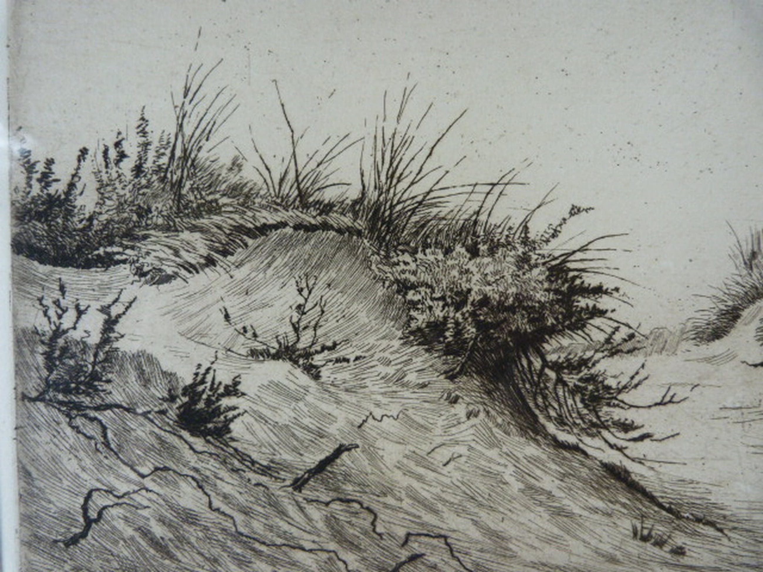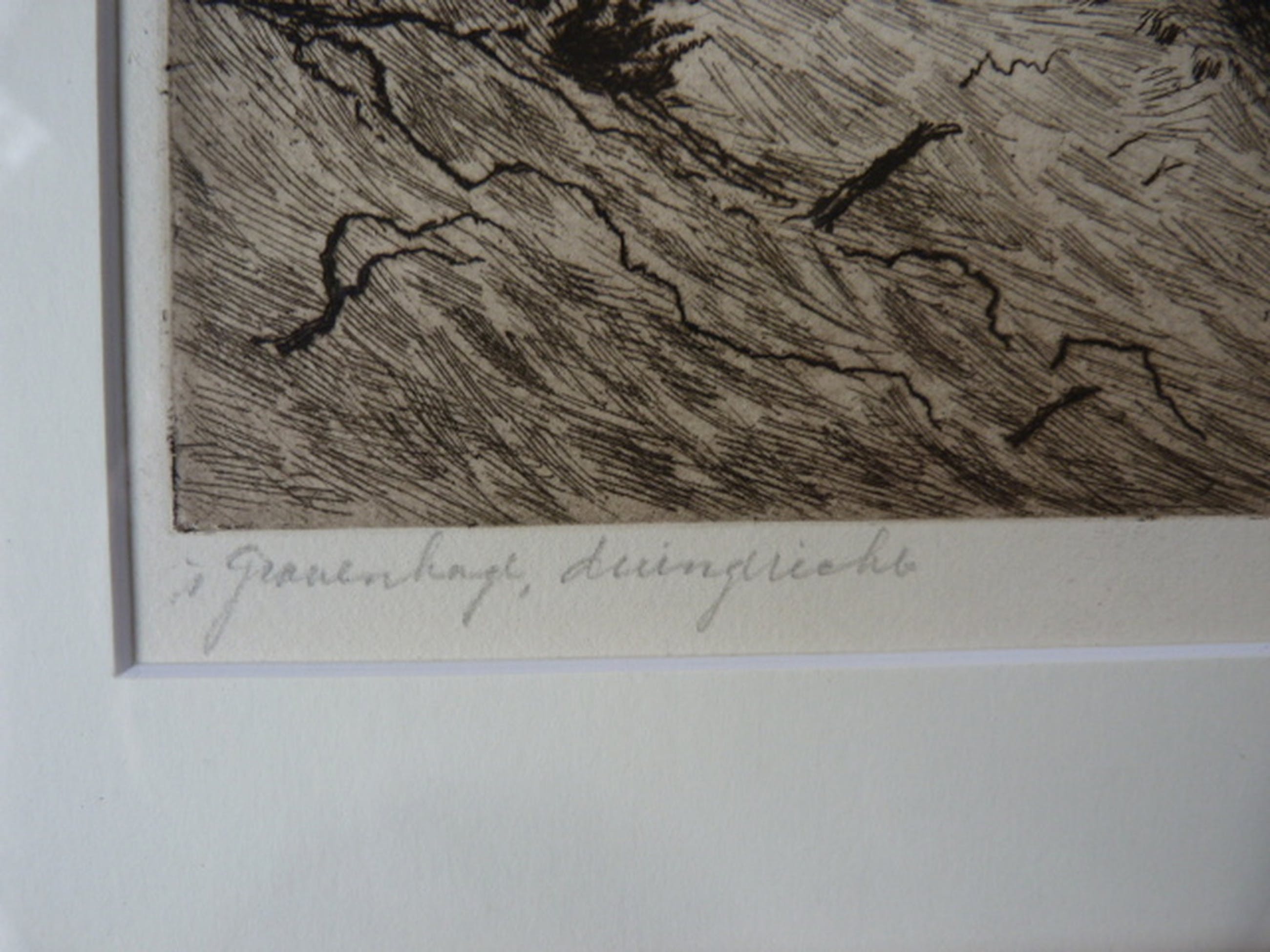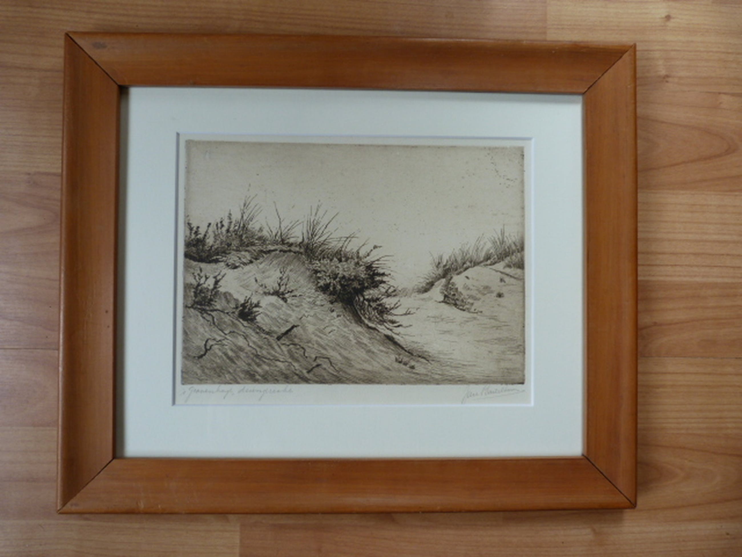 Ets, zuurvrij passe-partout en oude originele lijst : 33 x 40 cm.
