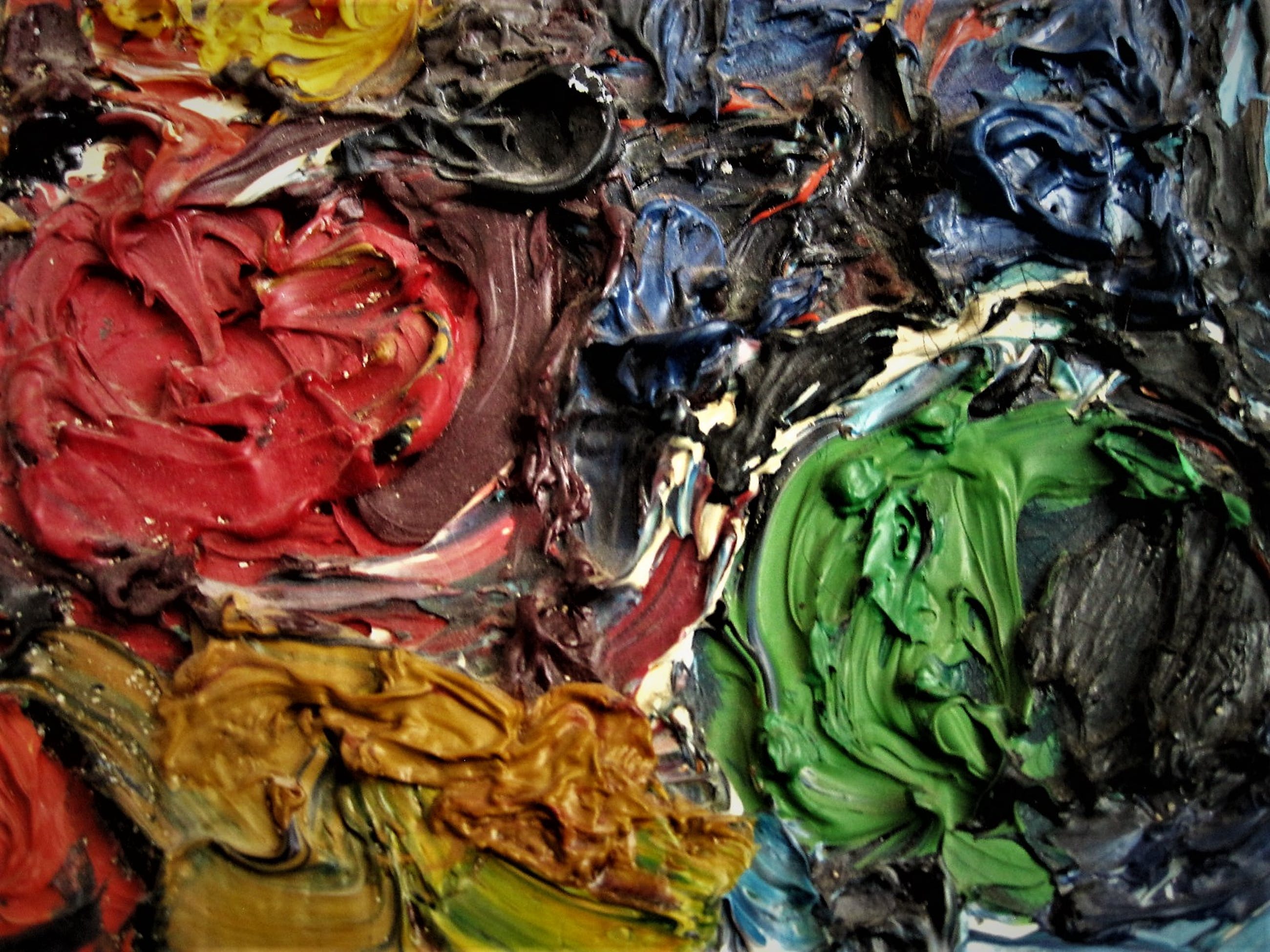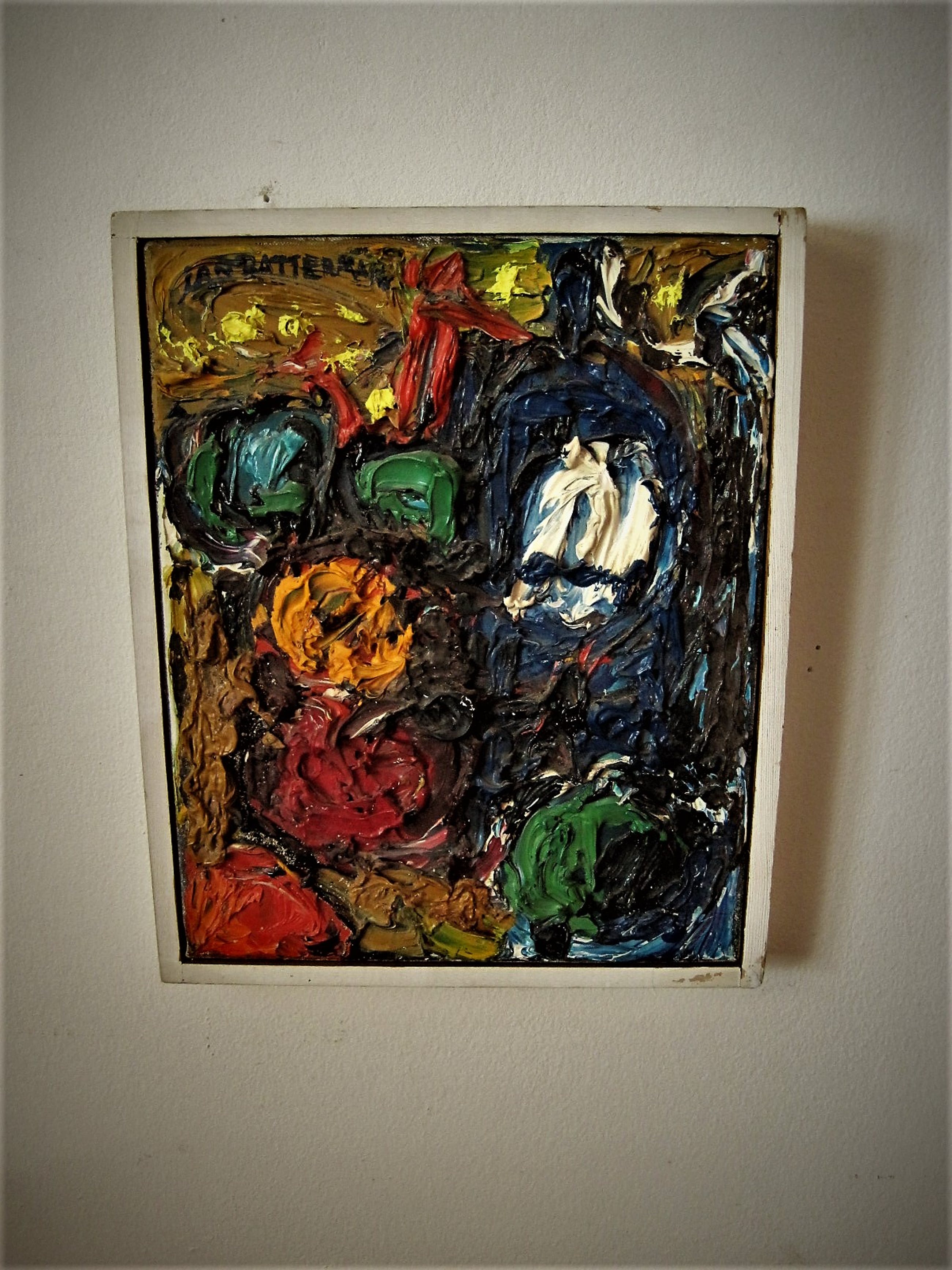 dik pasteus geschilderd. prachtige kleuren. sober ingelijst.
