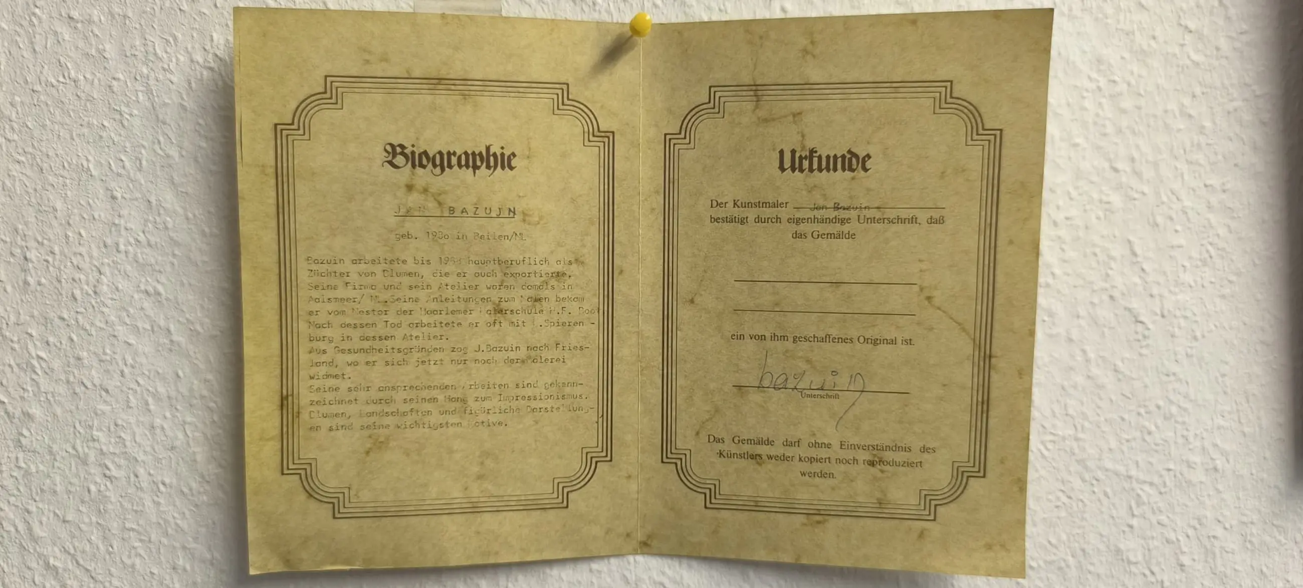 Het werk is af te halen op locatie. Als koper dient u zelf verpakkingsmateriaal mee te nemen. De locatie is: Recklinghausen, Duitsland