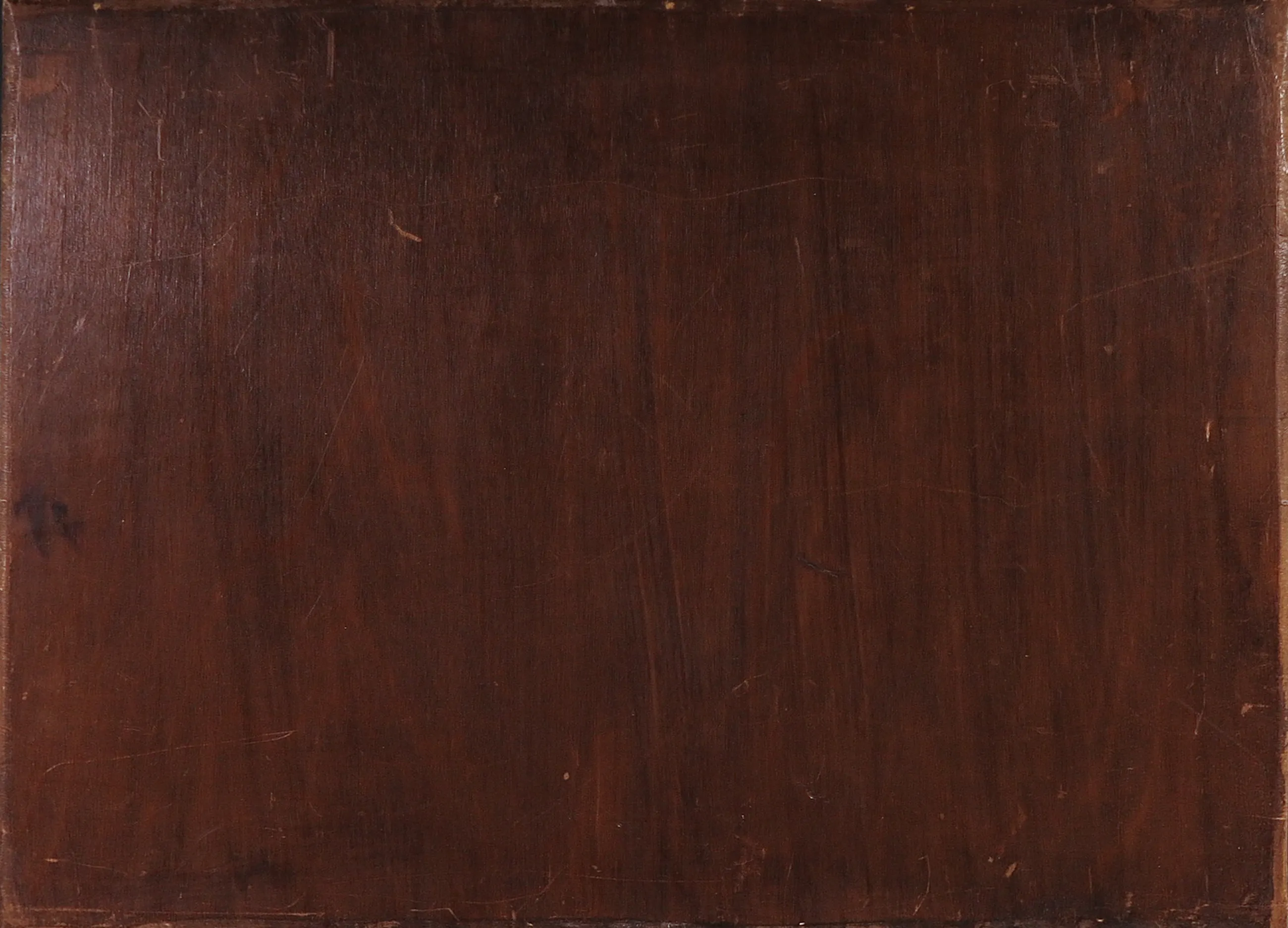 | het doek is op een houten paneel geplakt. Kleine krasjes in de voorstelling en sprake van craquelé. Langs de randen van het doek is het werk beschadigd. | |