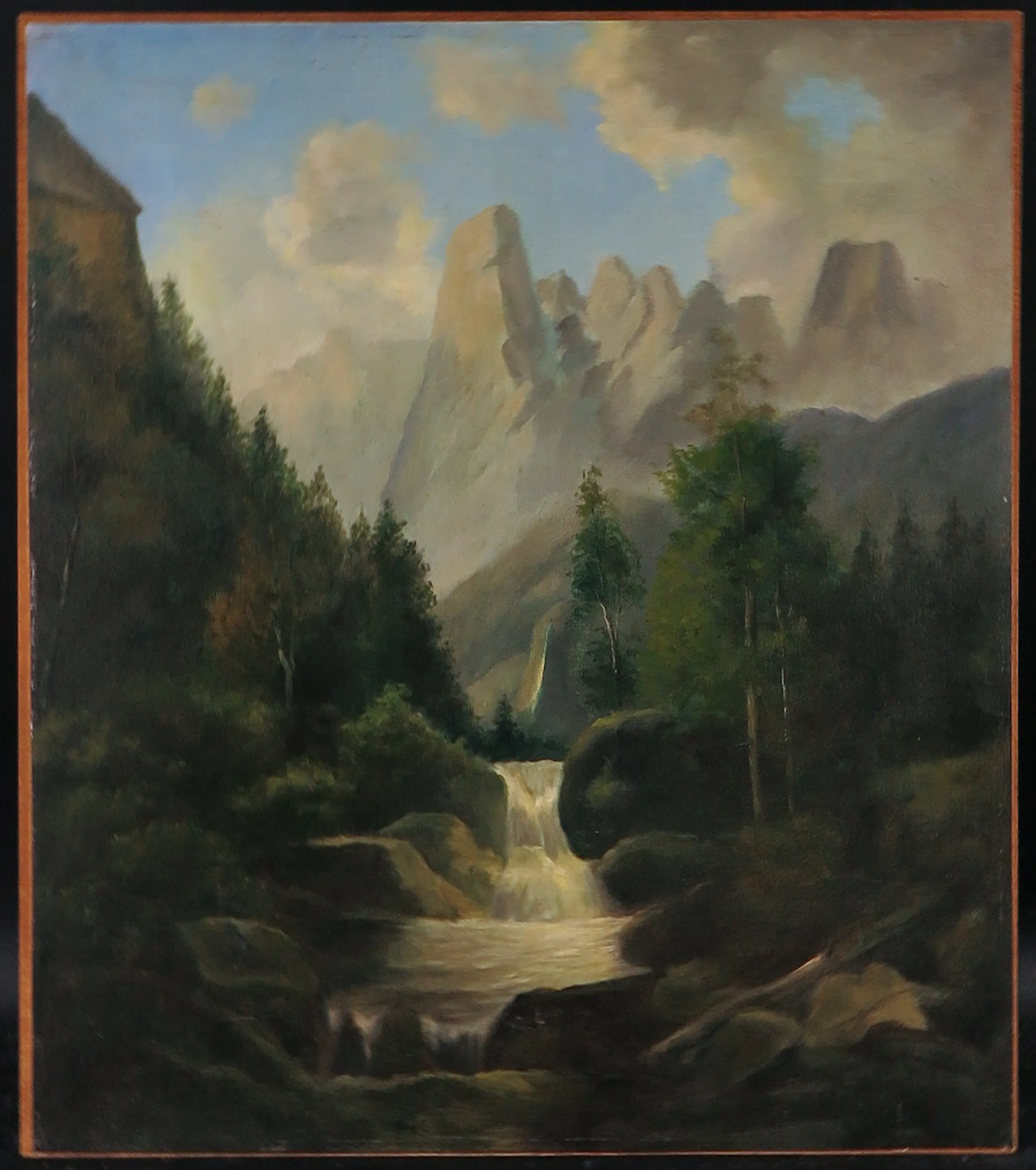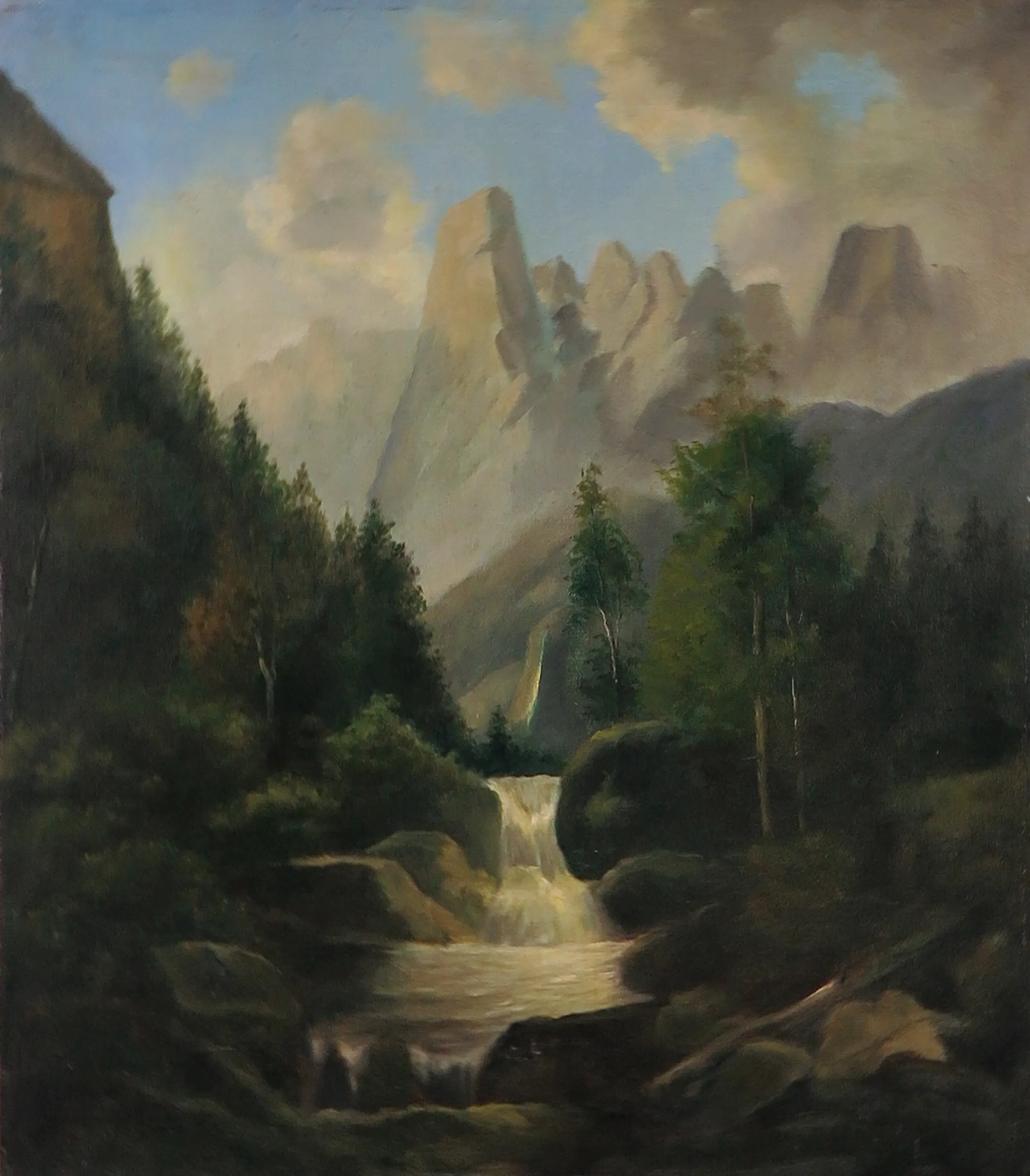 | Slijtage langs de randen. Paar kleine krasjes. Het doek is bevestigd op paneel. | |