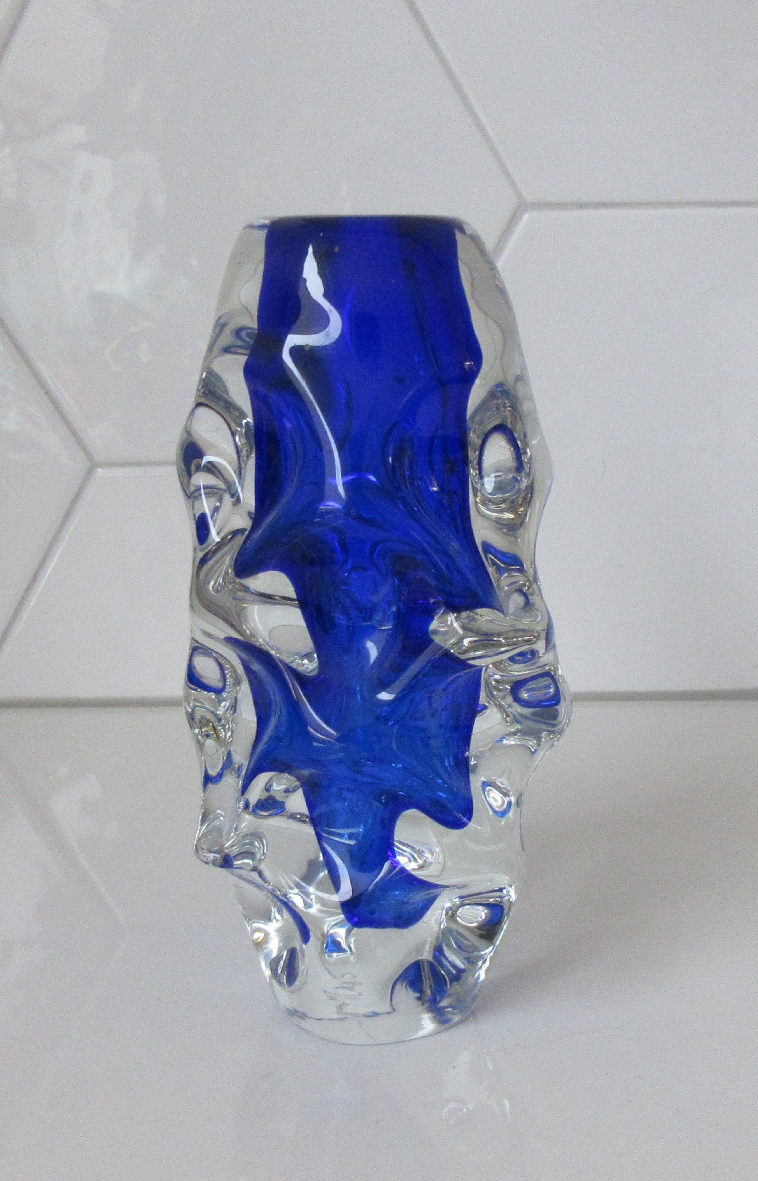 Cobalt blauwe dikwandige kunstglazen vaas ontworpen en uitgevoerd door Jan Beranek rond 1959-1960 voor Skrdlovice in het huidige Tsjechie. Goed ontworpen to vaasje. In zeer goede conditie, praktisch zelfs geen krasjes op de bodem.