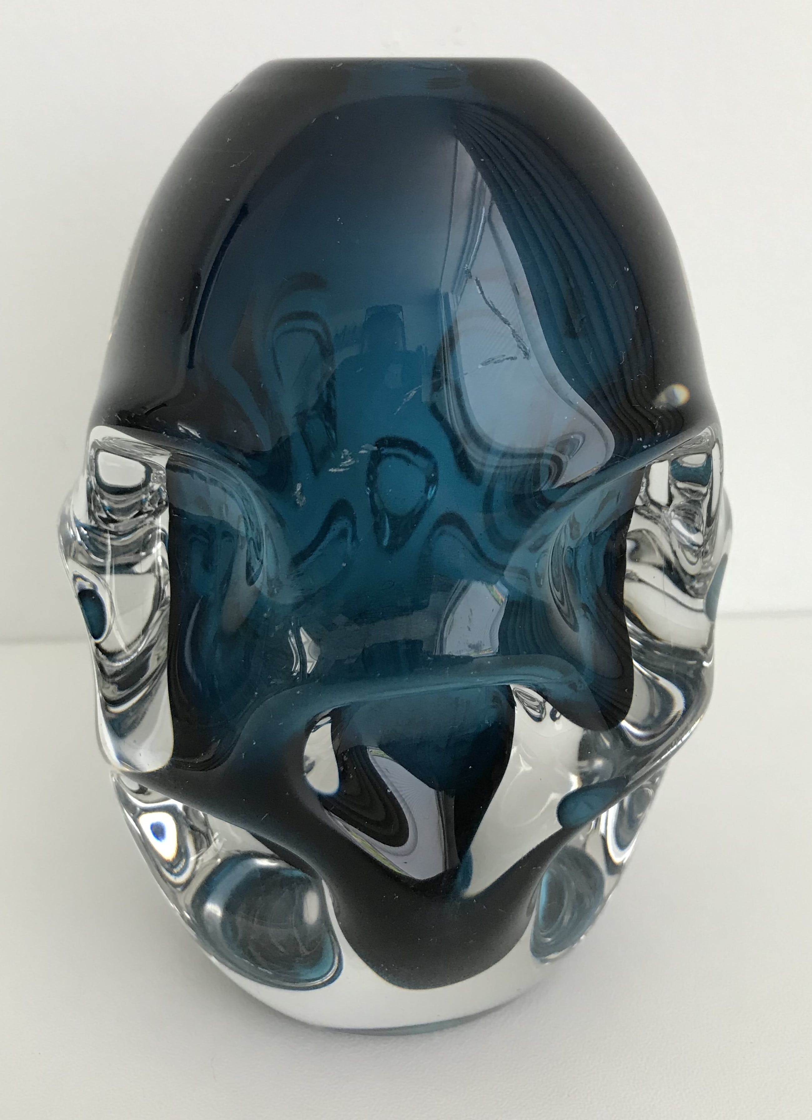 Prachtige blauwe designvaas ontworpen door Jan Beranek rond 1960 voor Skrdlovice glassworks. Het betreft een zware vaas van 1119 gram.