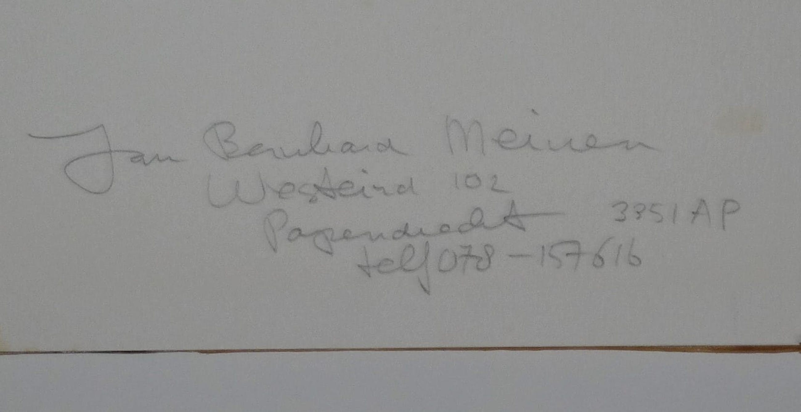 * Een van de echt fraaiere werken van de kunstenaar J. B. Meinen. * Werk is in uitstekende conditie en (ver)dient alleen nog ingelijst te worden *Beeldmaat is 36 x 53,5 cm. Inclusief de (papiertape) randen ong 38 x 55,5 cm. Deze randen dienen natuurlijk bij een inlijsting achter het passe-partout of de sponning van de lijst zelf weg te vallen. *R.o. gesigneerd en gedateerd in potlood en op achterzijde vermelde gegevens. *Verzending is verzekerd, aangtekend en goed verpakt.