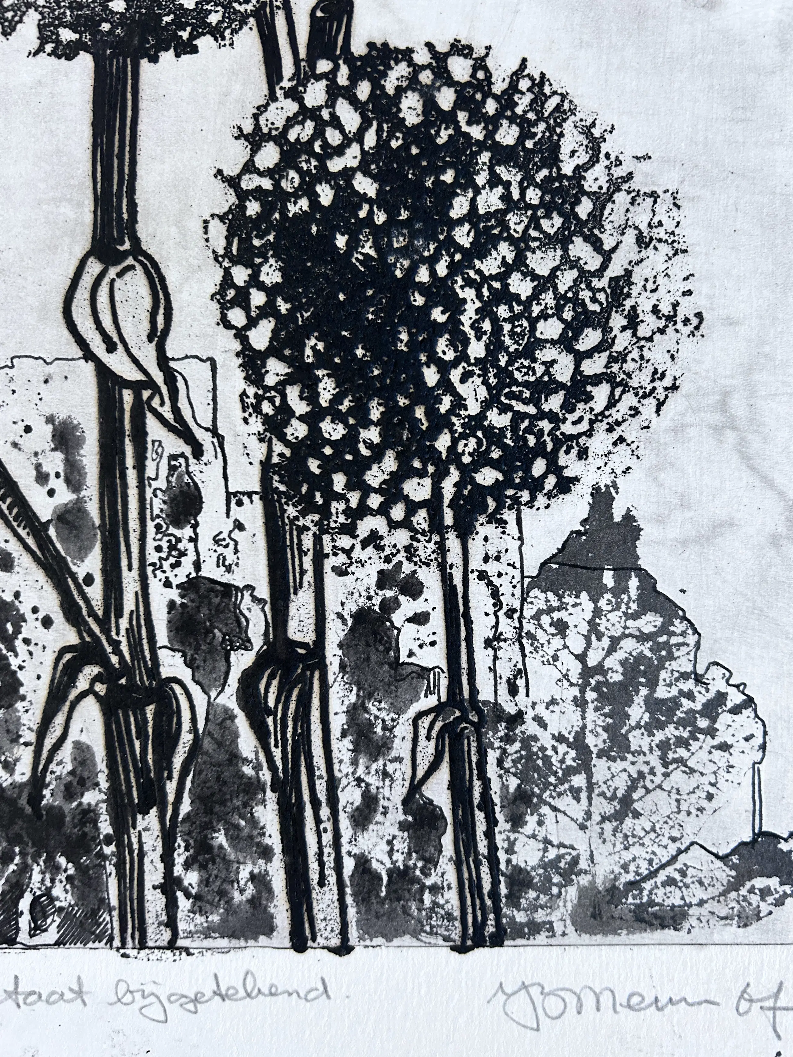 Conditie: ets zeer goed, rand vel heeft vlekken, zie foto's.uitstekend. Oplage: 4/4. Afmeting ets 32 x 25 cm. Wordt zorgvuldig verpakt en verzekerd verzonden.