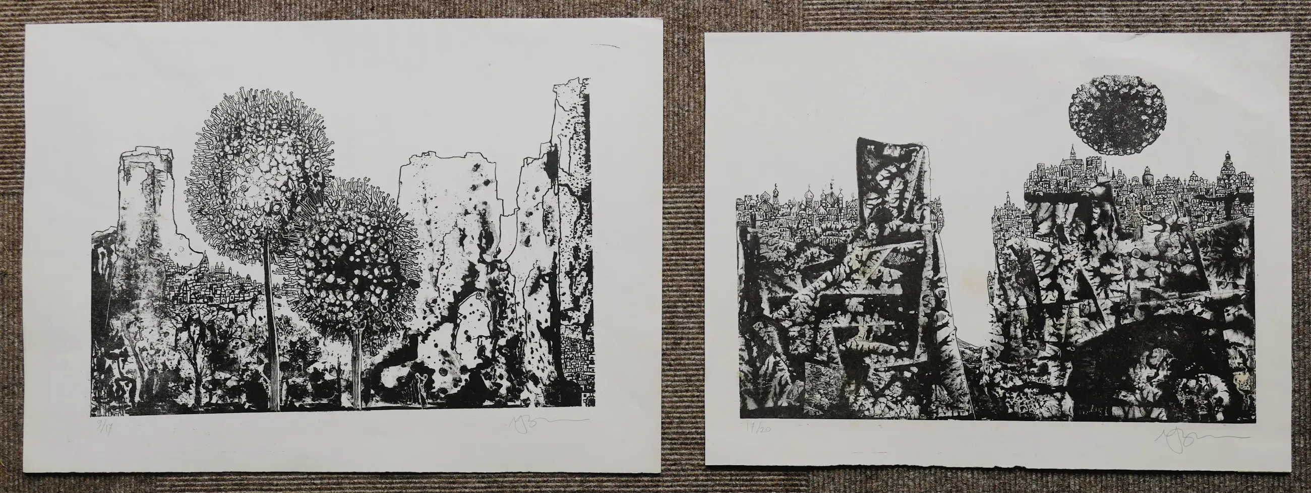 Jan Bernard Meinen - 2 Lithos " Fantastisch Landschap "