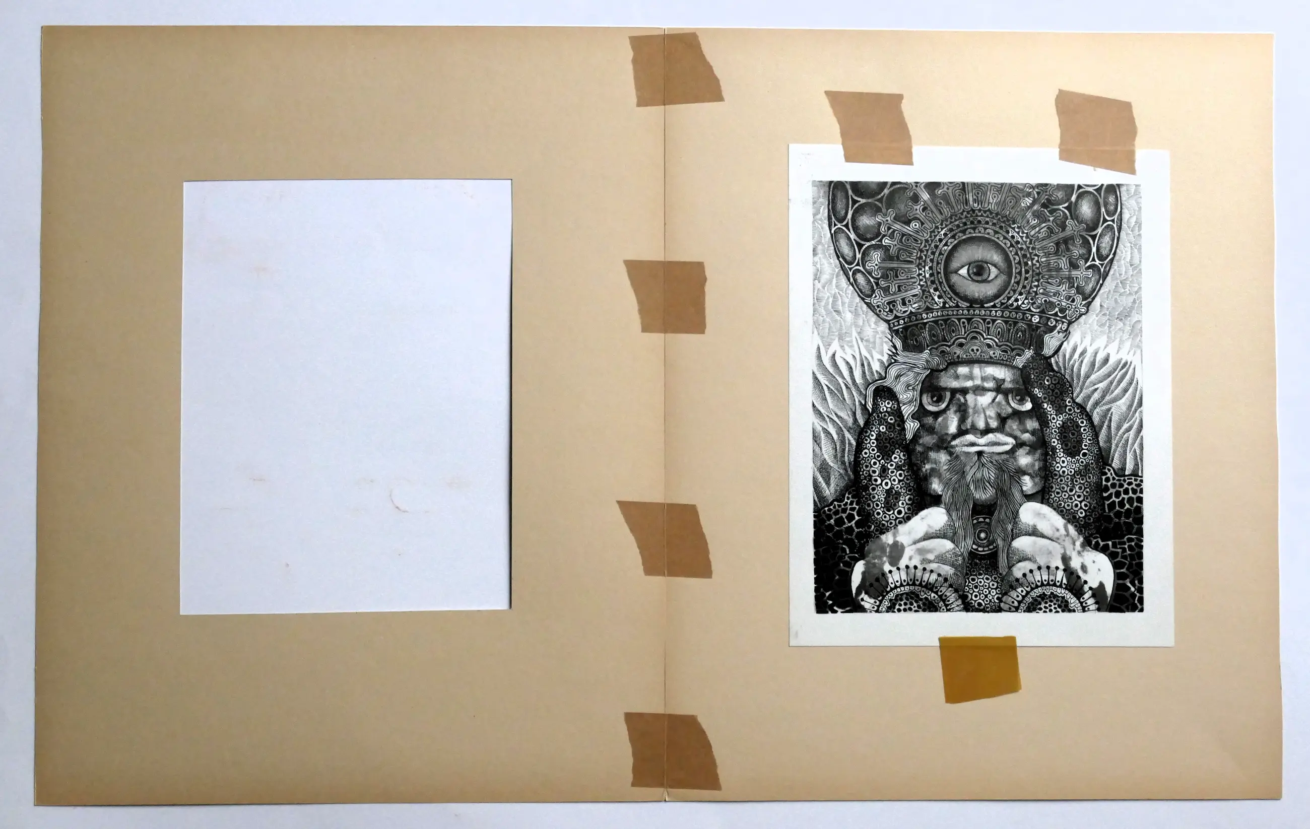 Achter passe-partout. Afmeting : 25 x 32,5 cm. Passe-partout 40 x 50 cm.