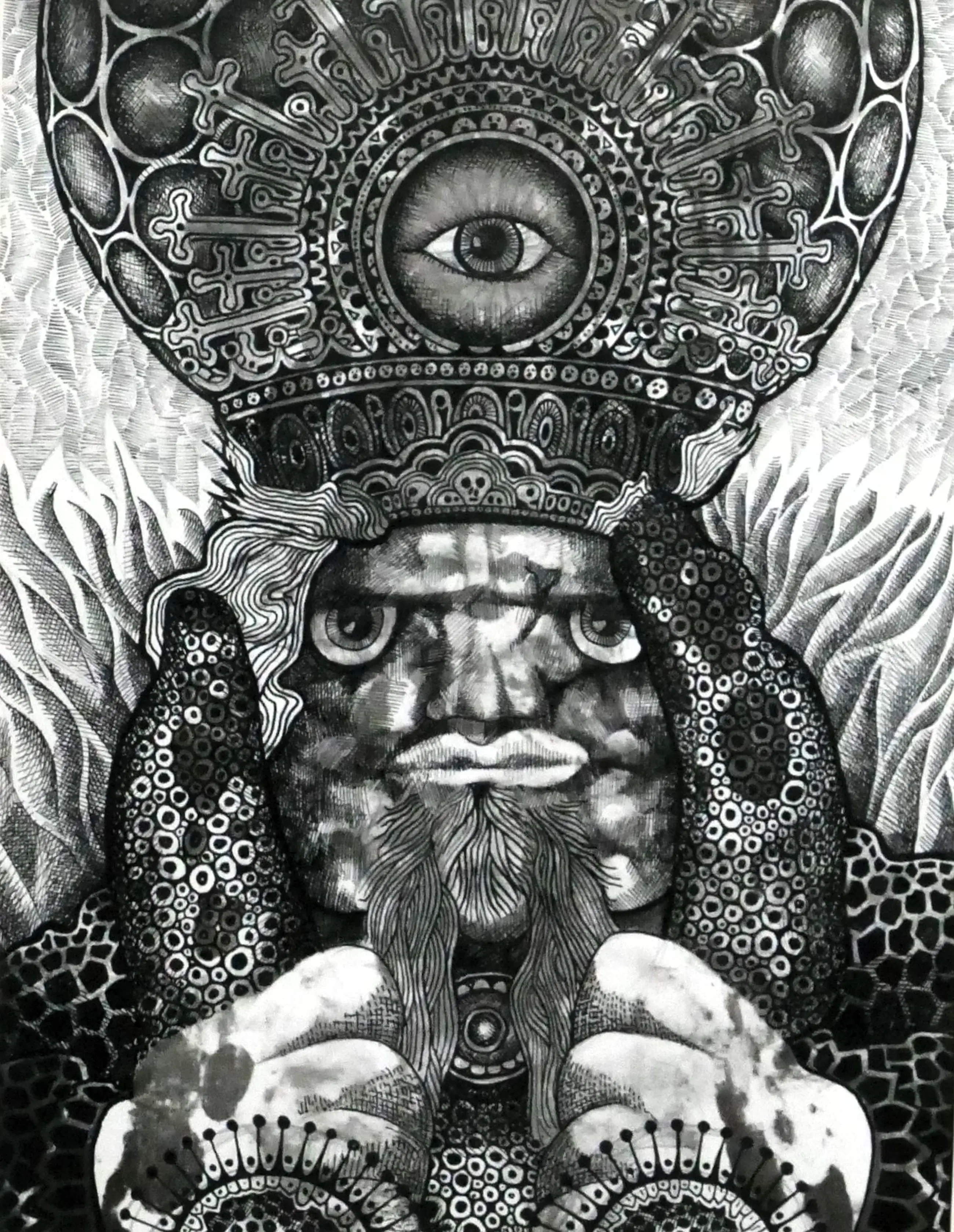 Pentekening op rontgenpapier. Intrigerend werk door Jan Bernard Meinen ( 1945-2020 )