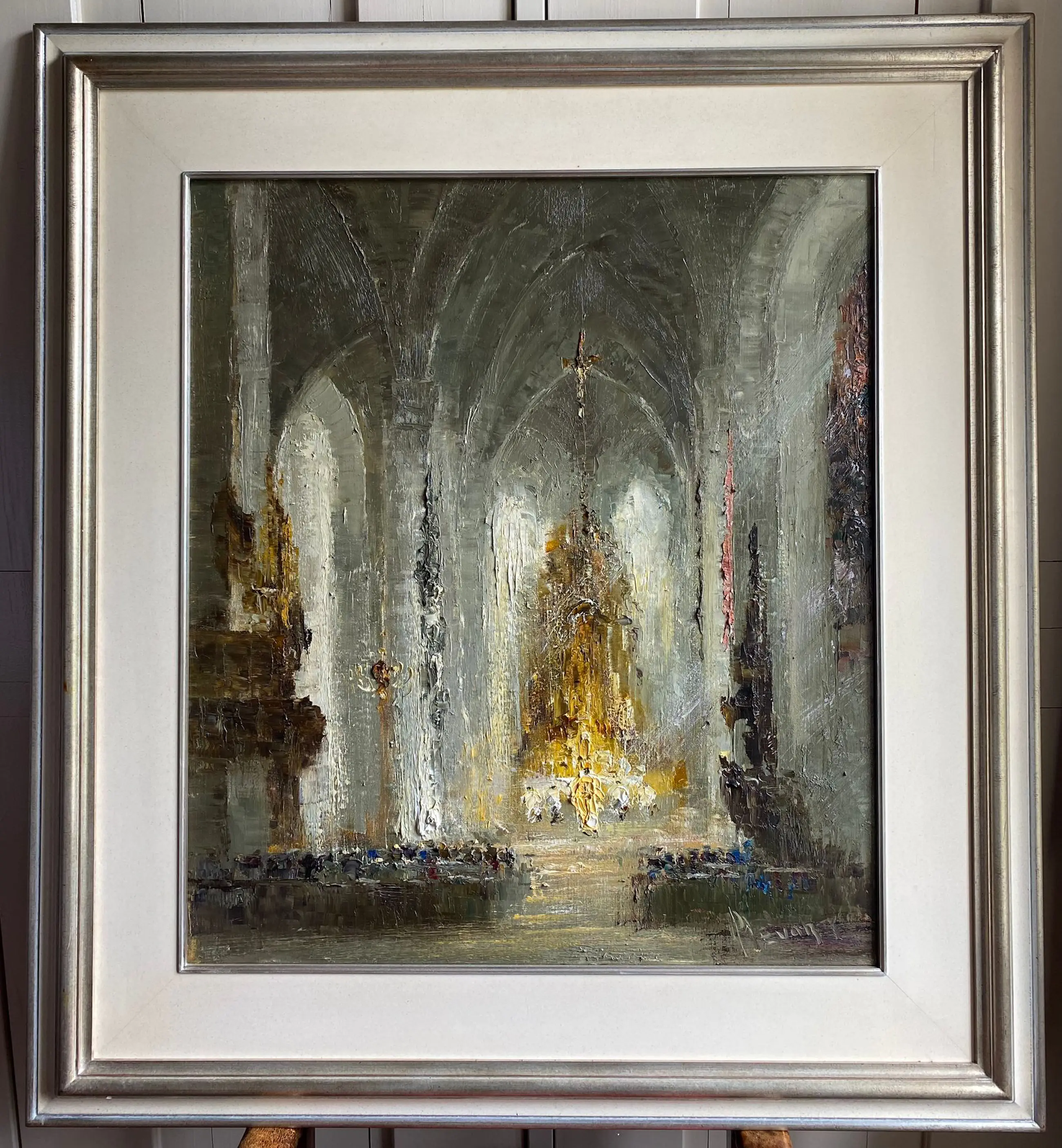 Dit schilderij is in 1988 aangekocht door mijn ouders die het tot hun overlijden met veel plezier in hun woonkamer hadden hangen. Inmiddels maakt het schilderij deel uit van de boedel en doen we het met deze historie met spijt van de hand. We verkopen het bij voorkeur aan iemand die we er echt een plezier mee doen.