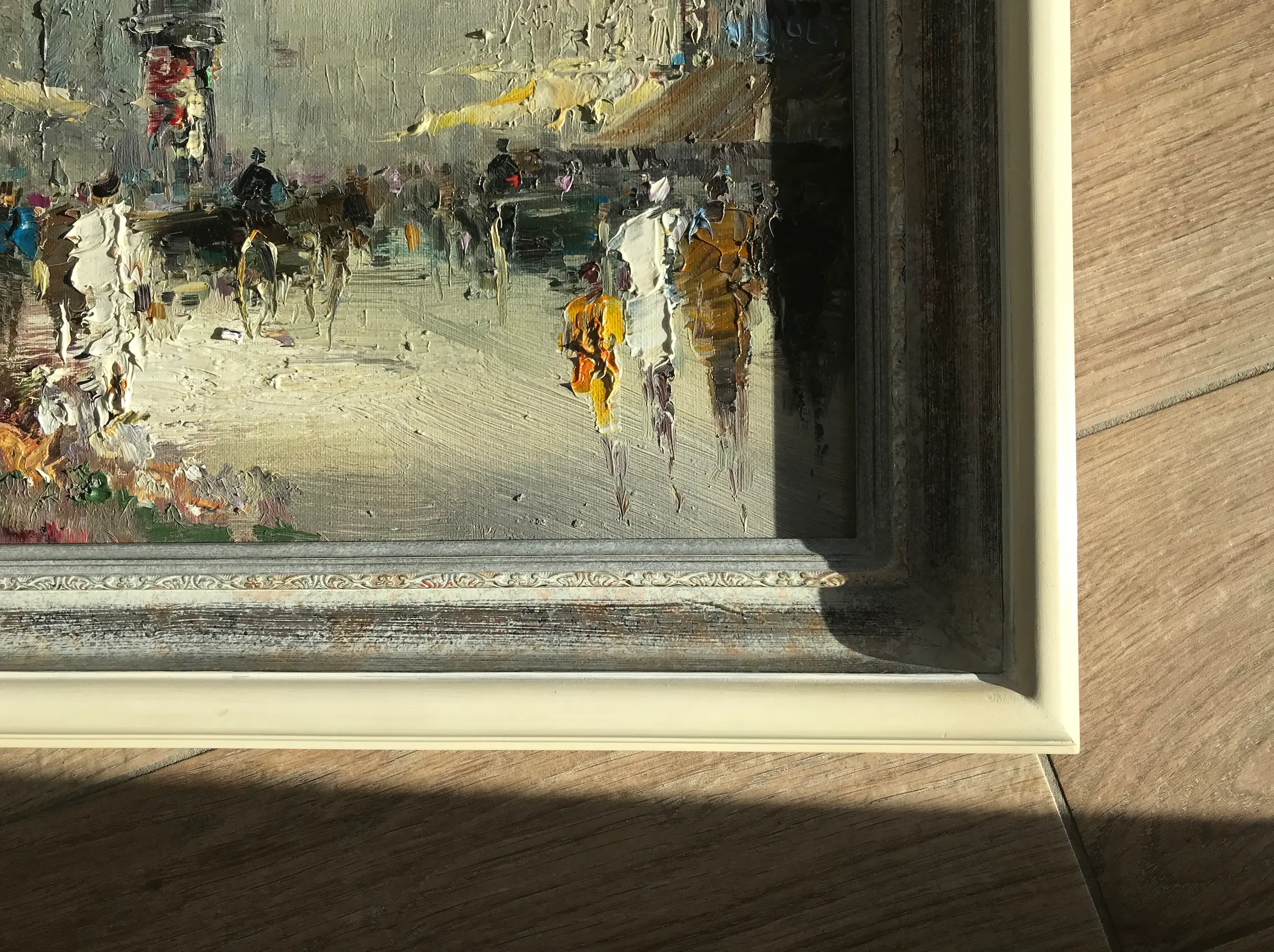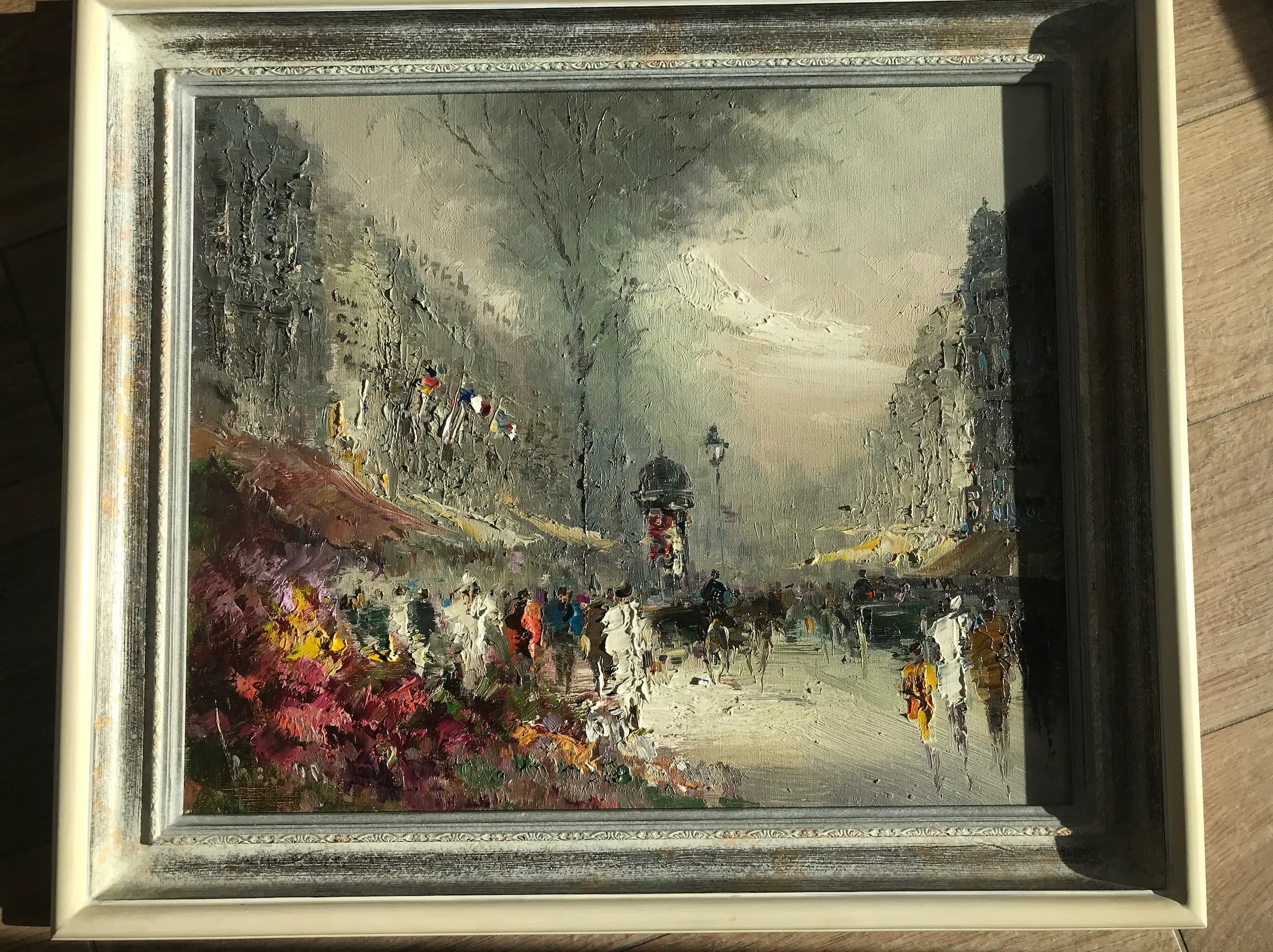 Een charmant straatbeeld uit Parijs in impressionistische stijl.