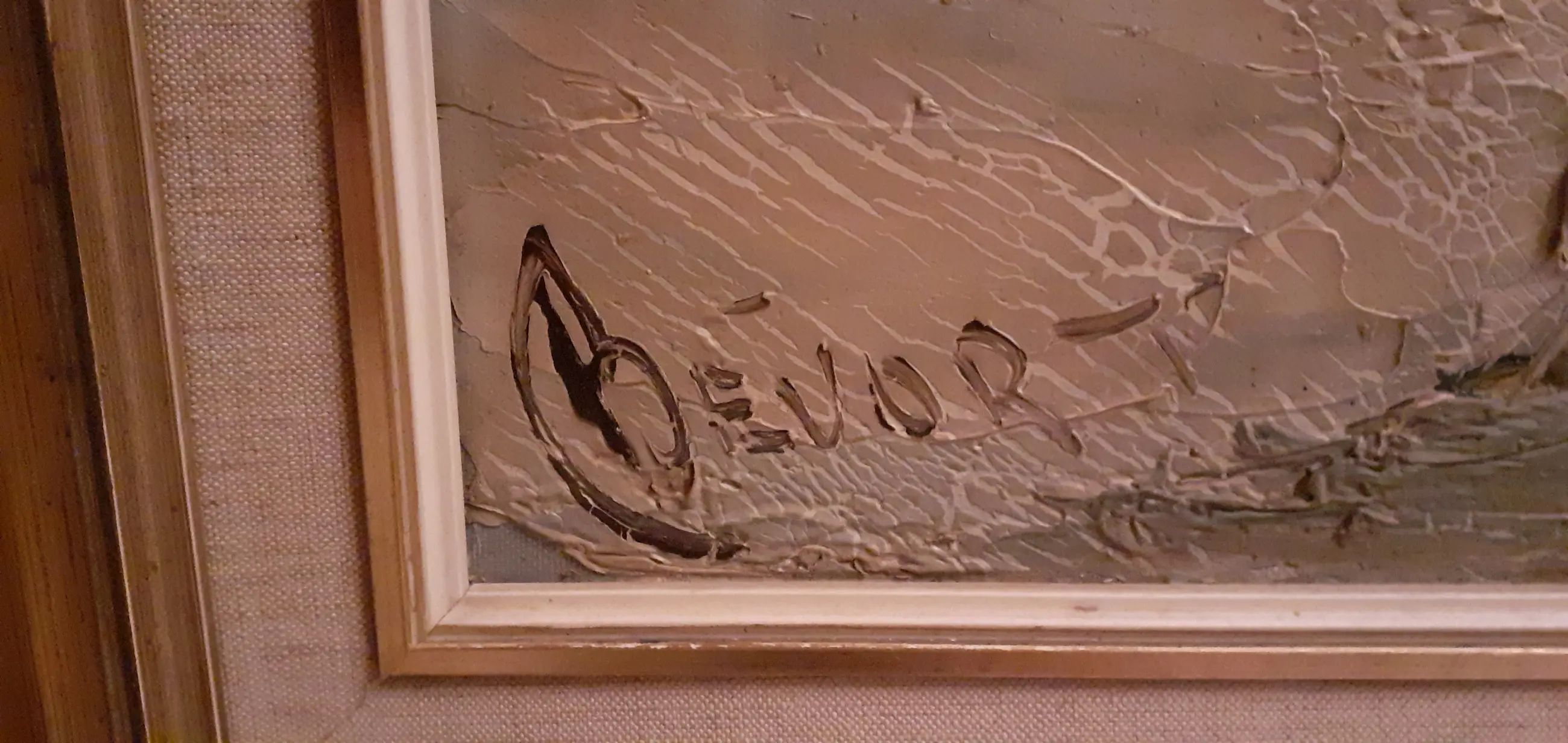 Schilderij gekregen van een kennis, heeft bij de ouders ongeveer 50 jaar aan de muur gehangen. Weet daardoor niet in welk jaar Bevort het heeft geschilderd en ook niet waar het aangekocht is.