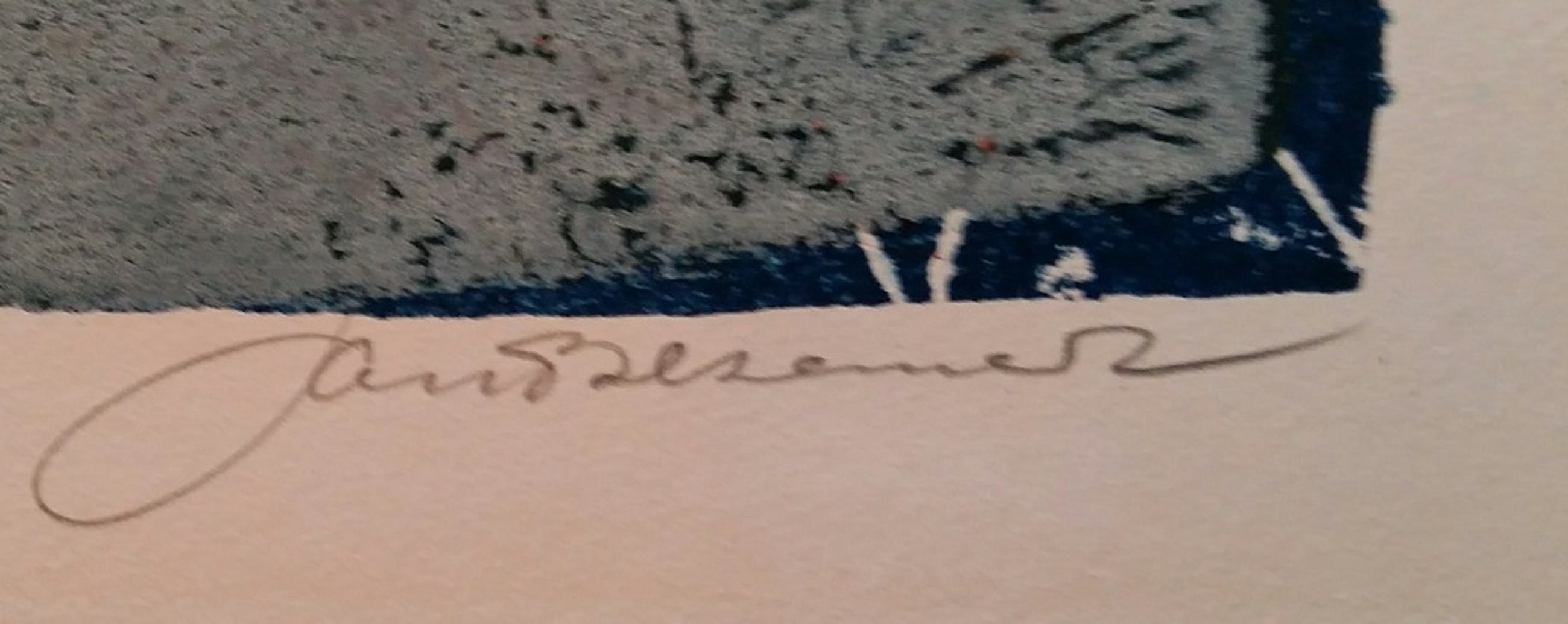 In potlood gesigneerd, getiteld en 'eigen druk'