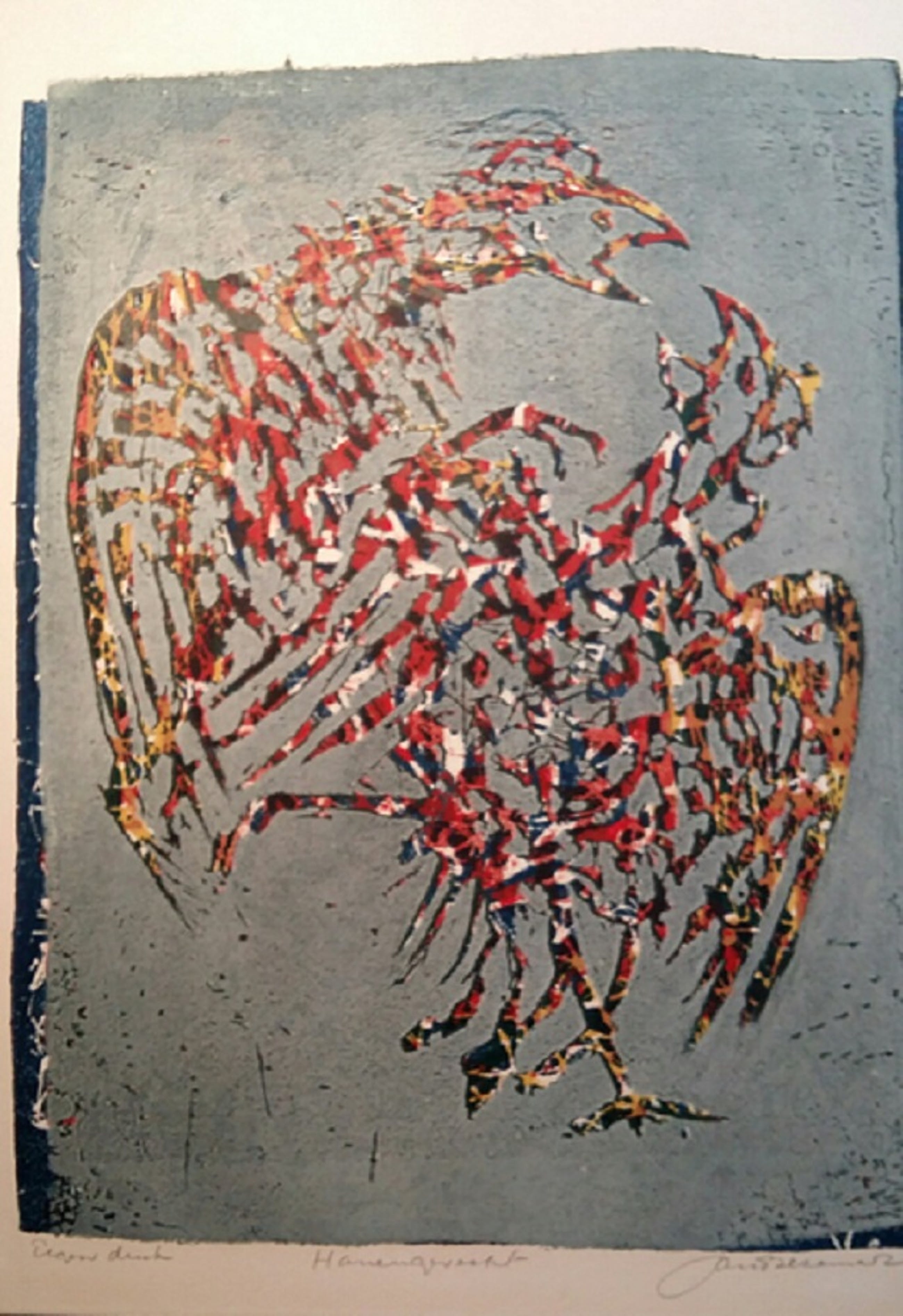 Fraaie litho van deze bekende graficus, in bijna nieuwstaat. Getiteld: 'Hanengevecht'