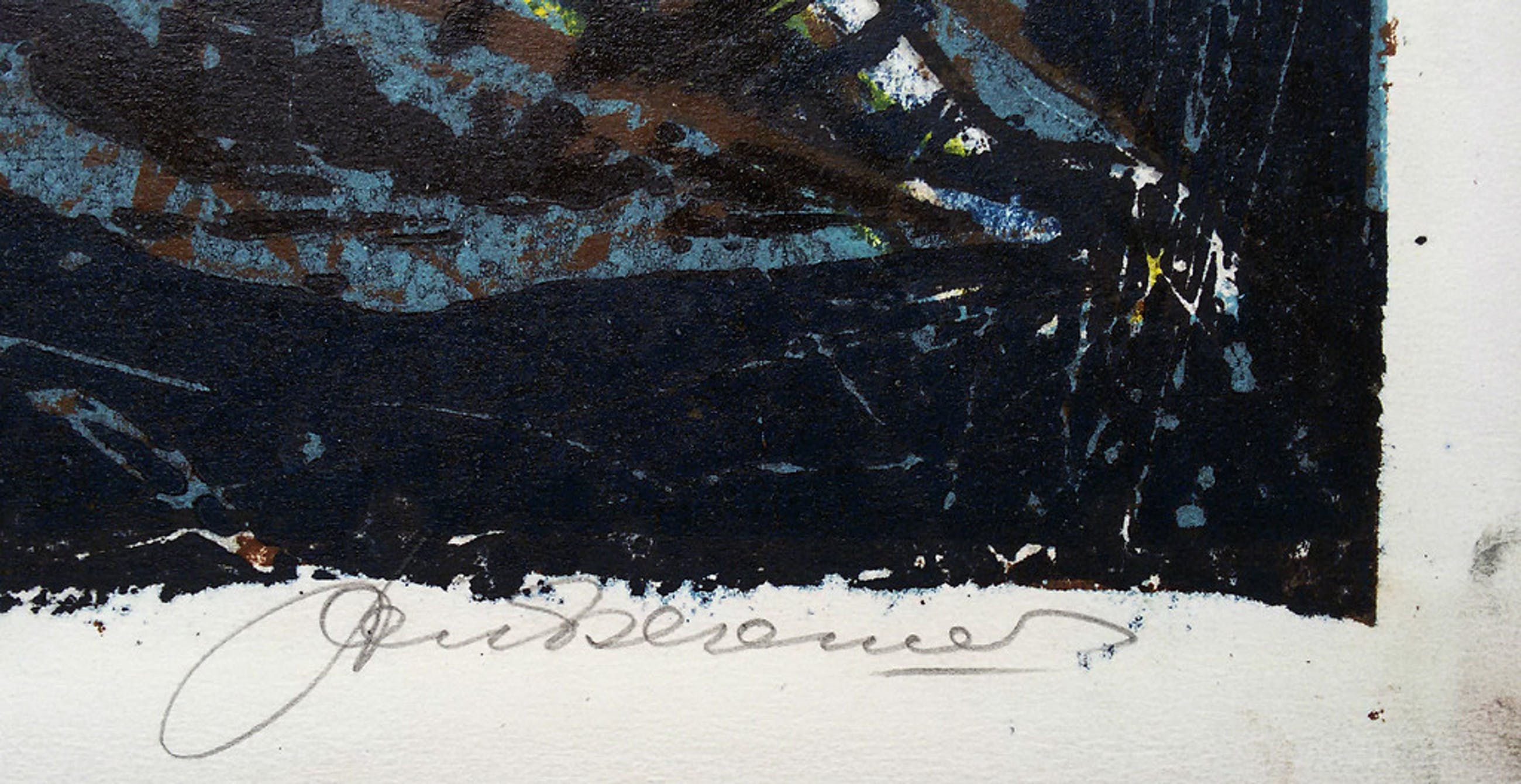 Karakteristiek werk van Jan Bezemer. Litho op dik geschept papier, met potlood gesigneerd en getiteld. Afkomstig uit de kunstcollectie van ABNAMRO, in goede conditie. Werk heeft ingelijst gezeten want er zitten taperesten langs de randen aan de achterkant van het blad en er is een nauwelijks waarneembare verkleuring binnen een voormalig passe-partout. Ingelijst met nieuw passe-partout is het werk uitstekend.