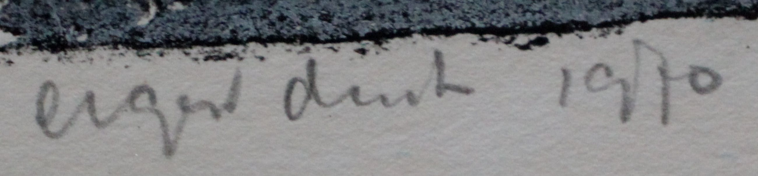 Passe-partout/lijsten: Beschadigingen aan lijsten worden niet beschreven. Indien een werk achter glas is ingelijst en het glas kapot is, zal dit wel vermeld worden. Bij foto's van ingelijste werken kan spiegeling zichtbaar zijn.