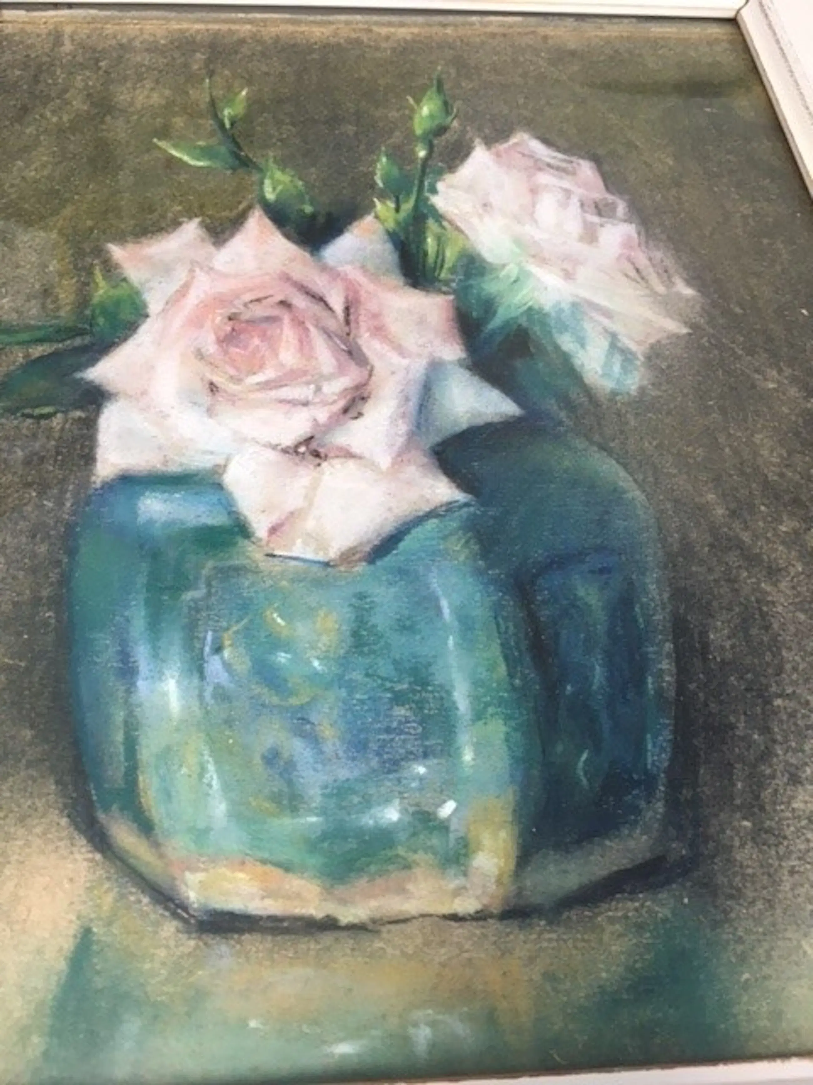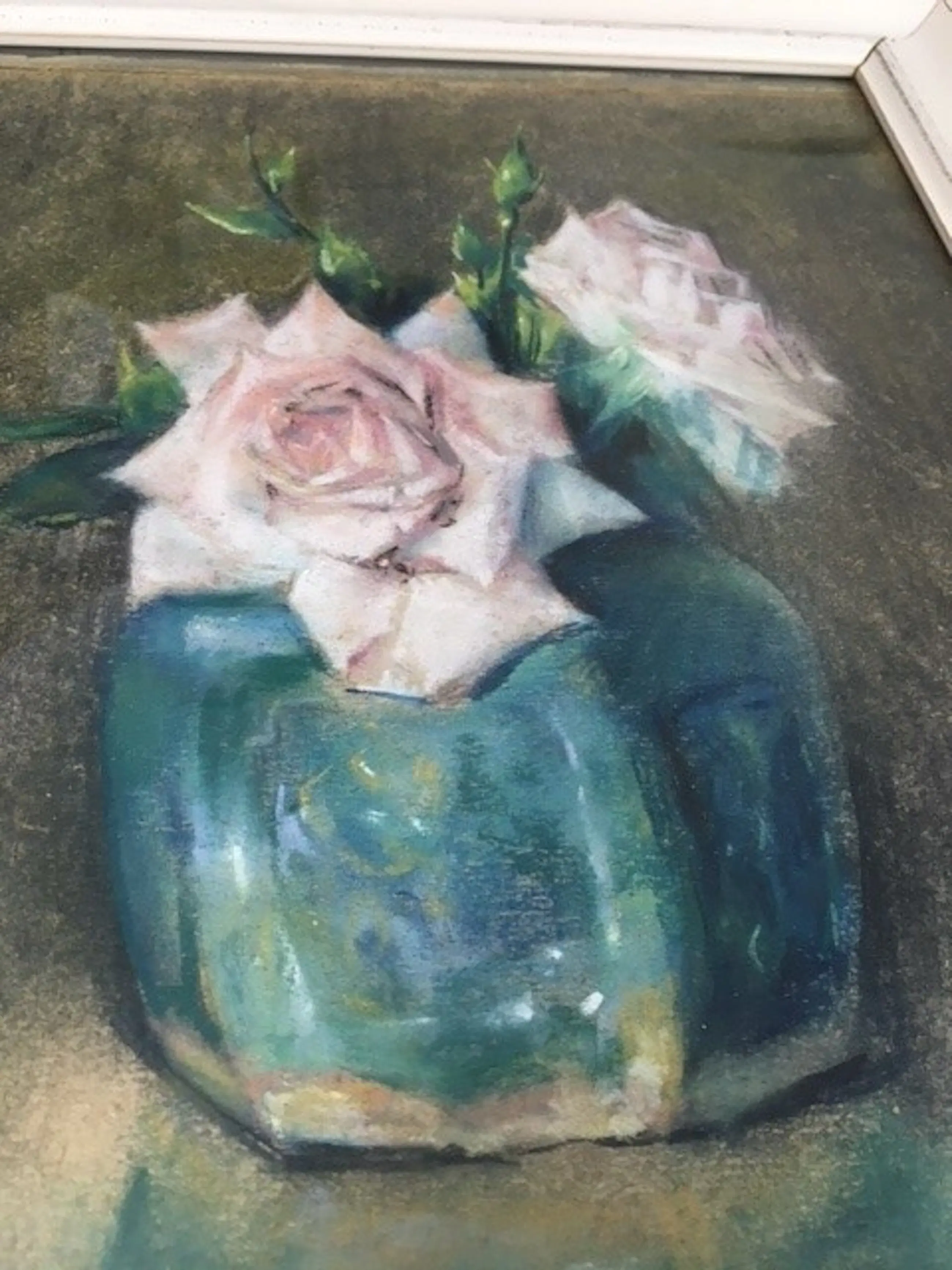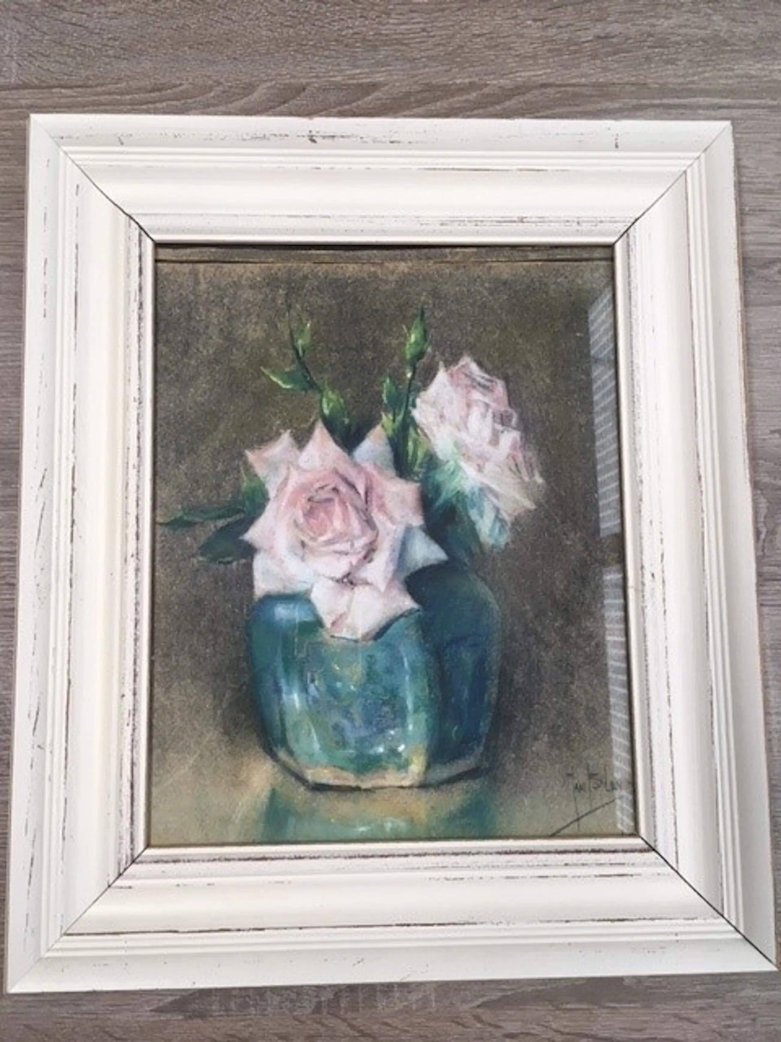 Stilleven rozen in Chinese gemberpot. Getekend links onder Beschadiging aan bovenkant (zie foto's) Originele lijst achter glas Werk heeft wat liefde en zorg nodig maar is dat zeker waard.