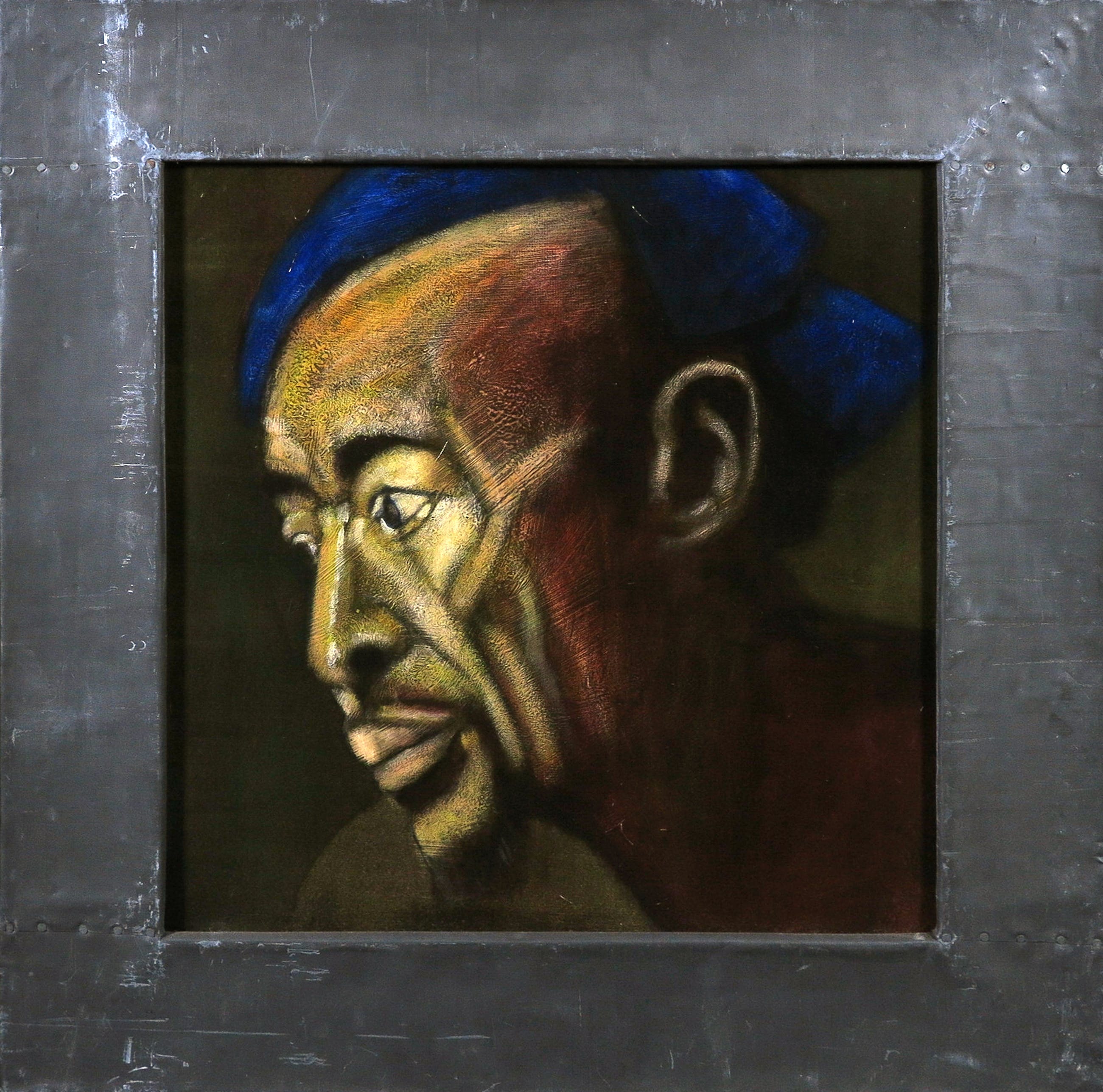 Het werk is ingelijst met lood en bevat geen glasplaat.