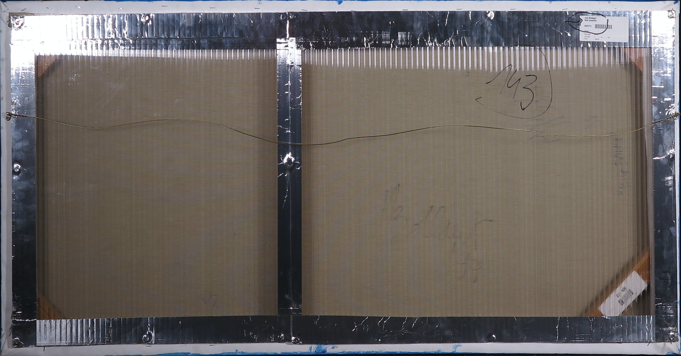 | Het werk is in goede staat, maar heeft hier en daar beschadigingen aan de randen van het doek. | |